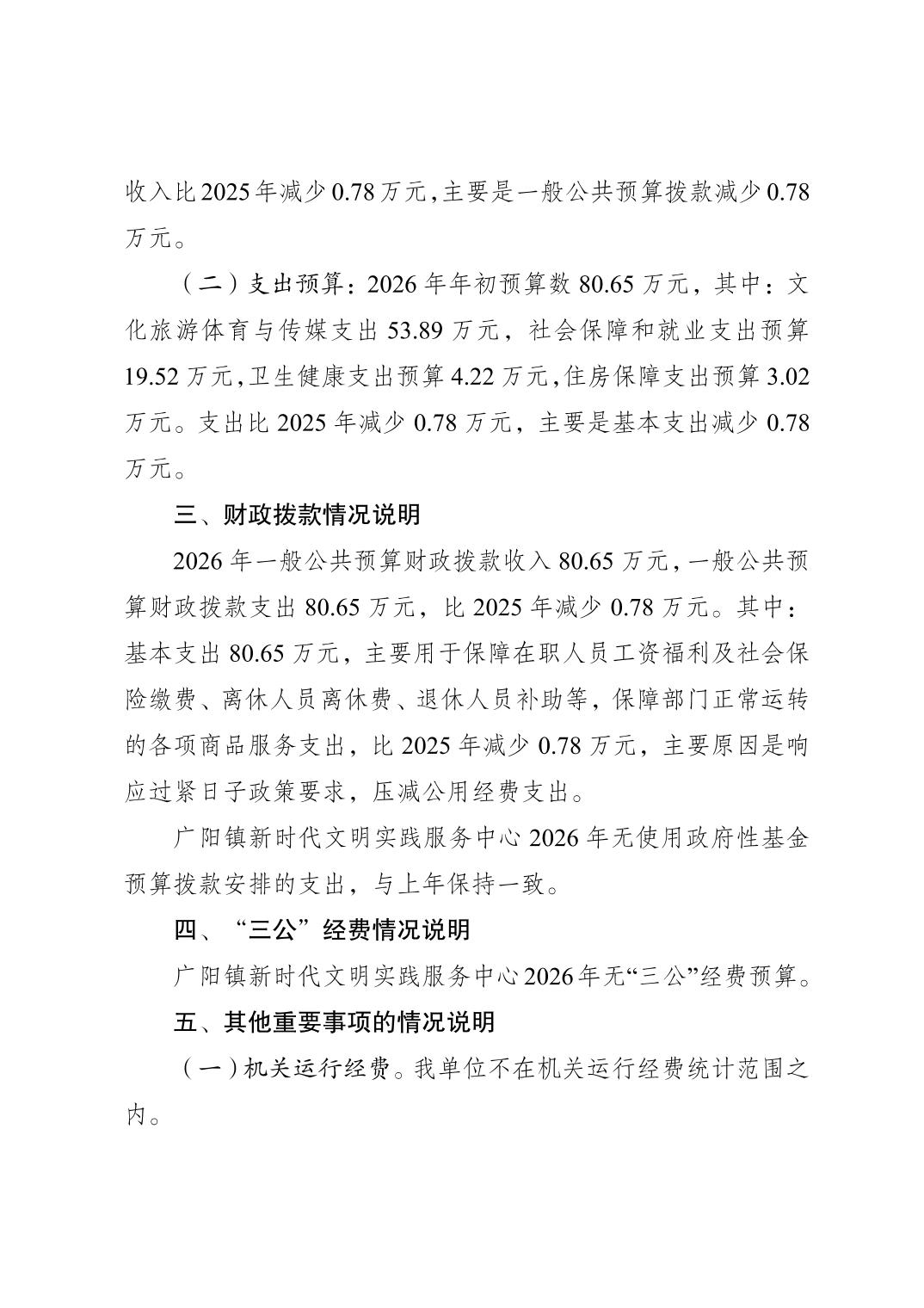 重庆市南岸区广阳镇新时代文明实践服务中心2026年单位预算情况说明