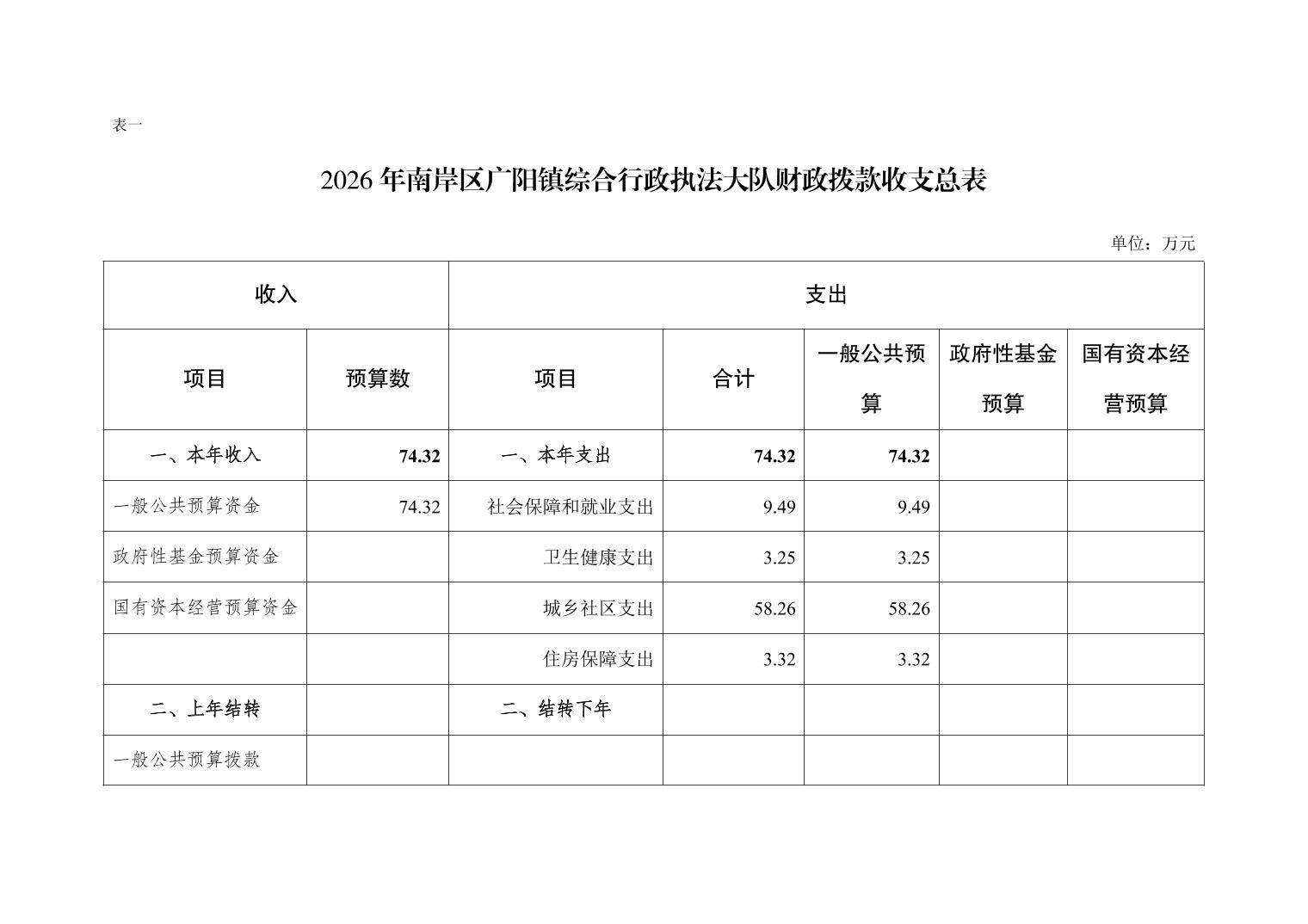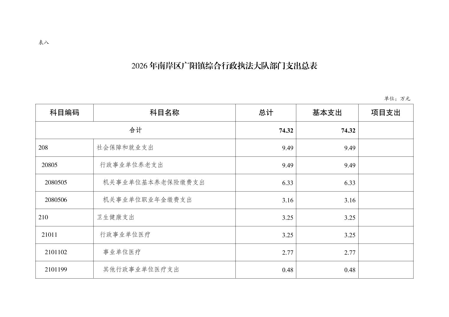 重庆市南岸区广阳镇综合行政执法大队2026年单位预算情况说明
