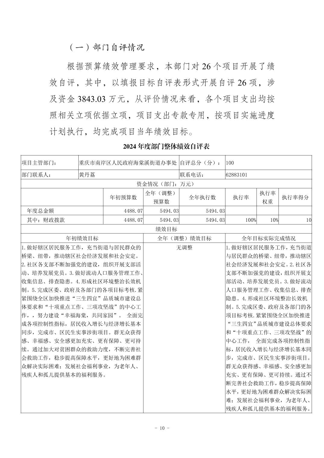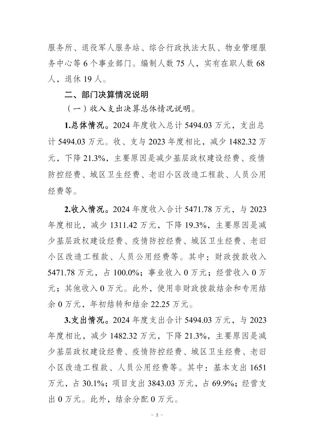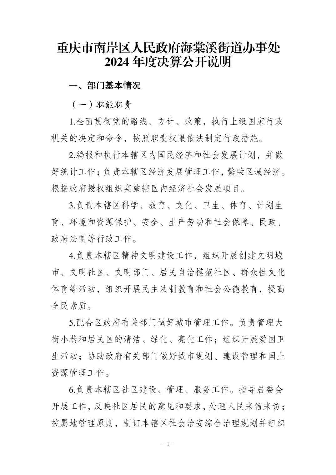 重庆市南岸区人民政府海棠溪街道办事处 2024 年度决算公开说明