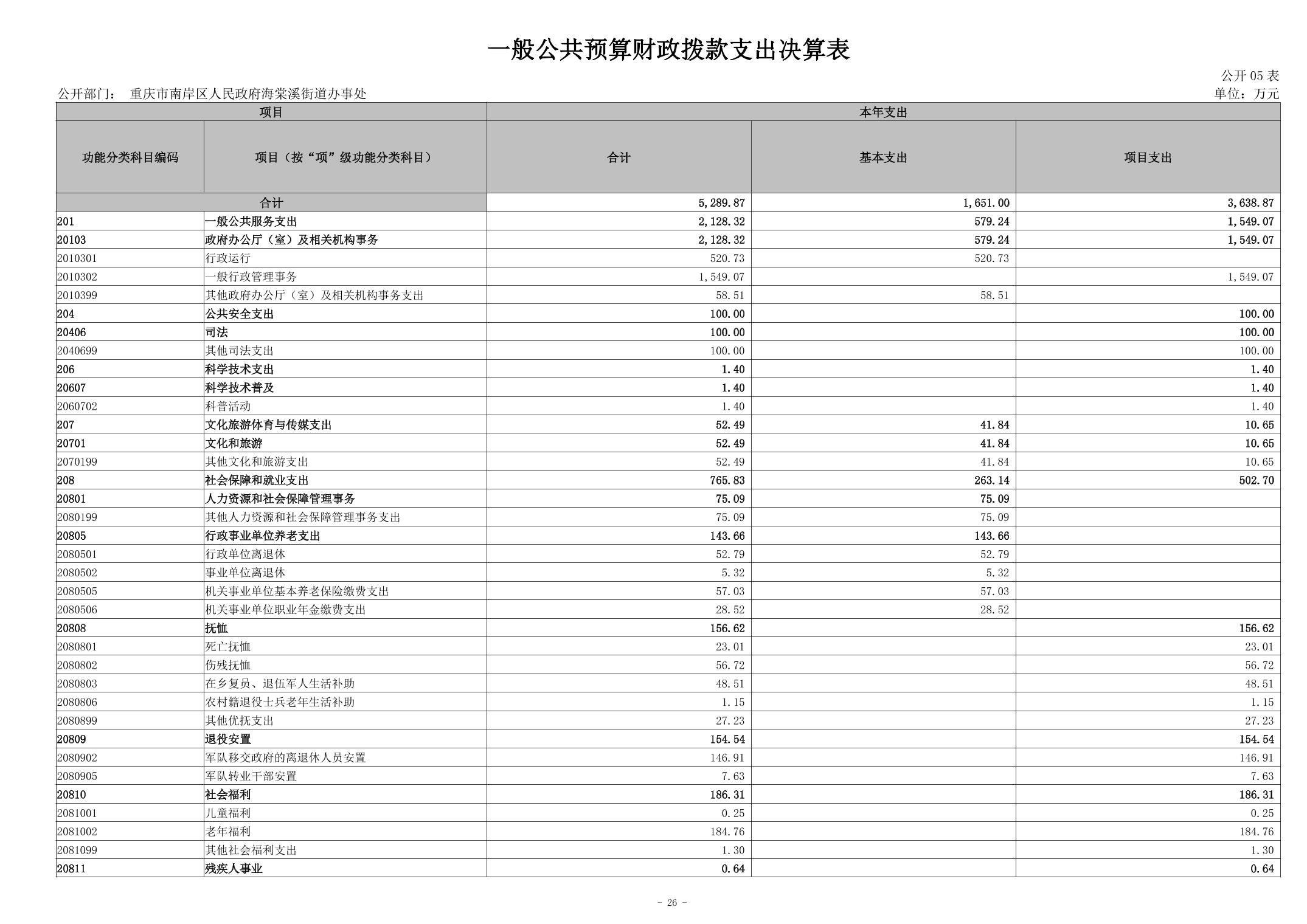 海棠溪街道>政务公开>法定主动公开内容>预算/决算>财政决算