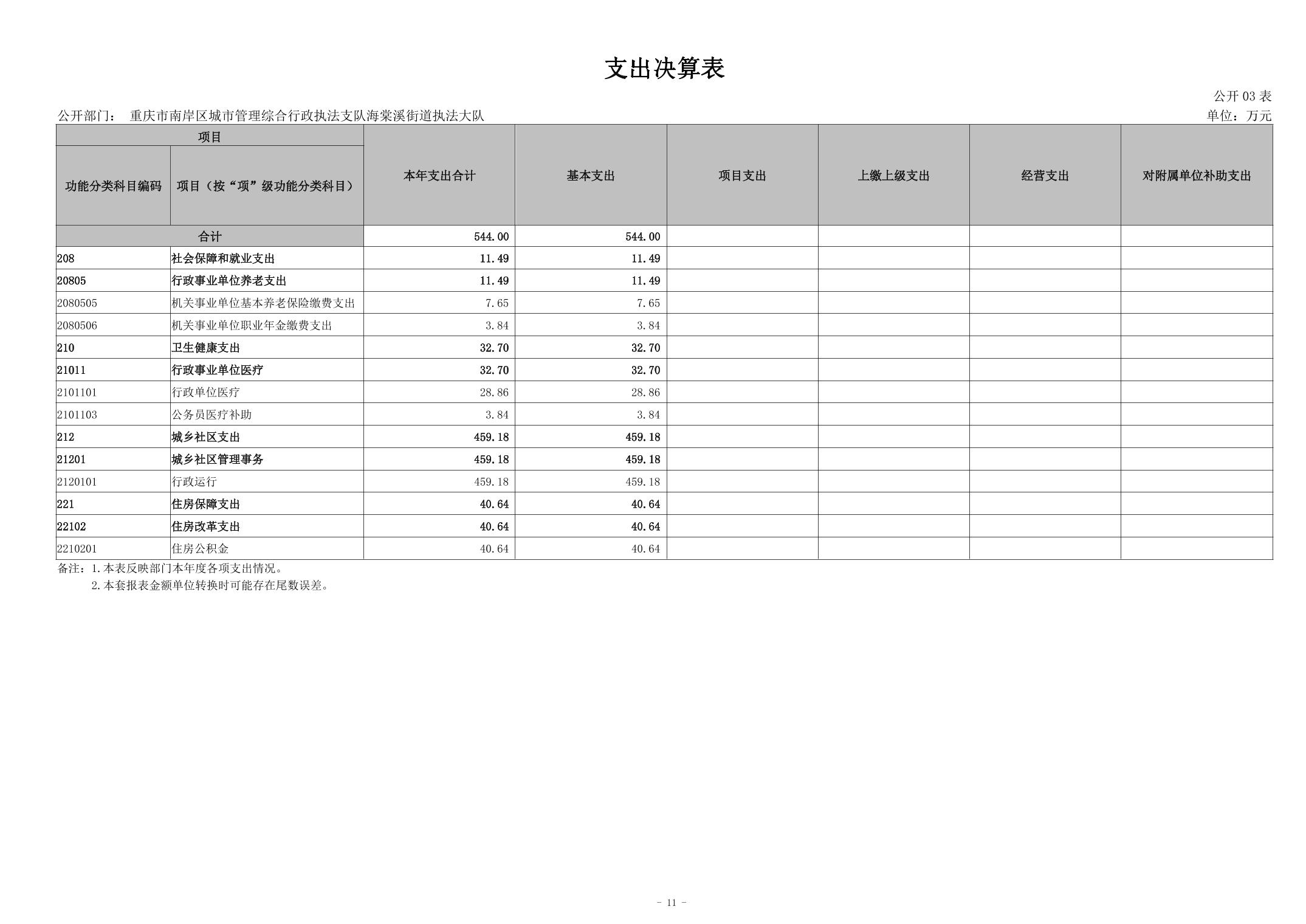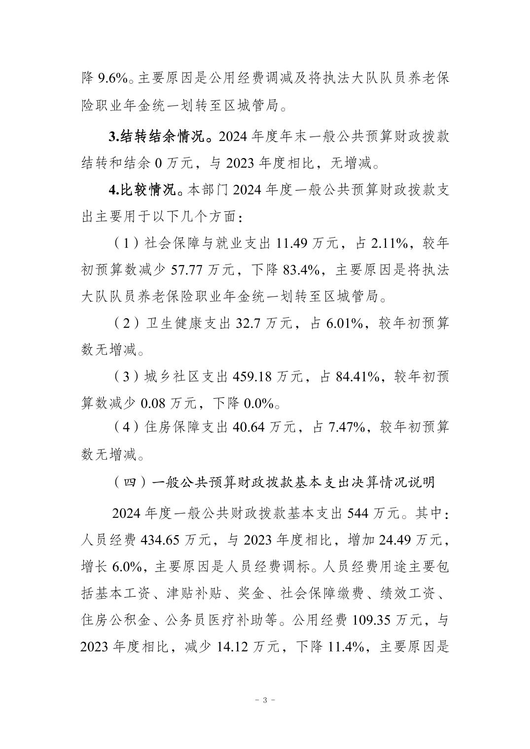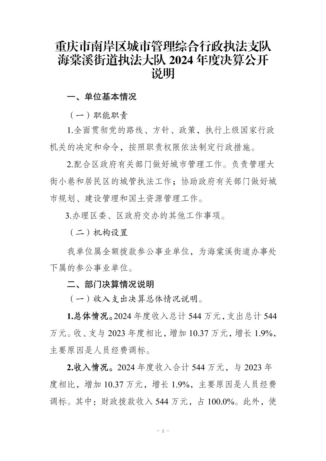 重庆市南岸区城市管理综合行政执法支队海棠溪街道执法大队 2024 年度决算公开说明