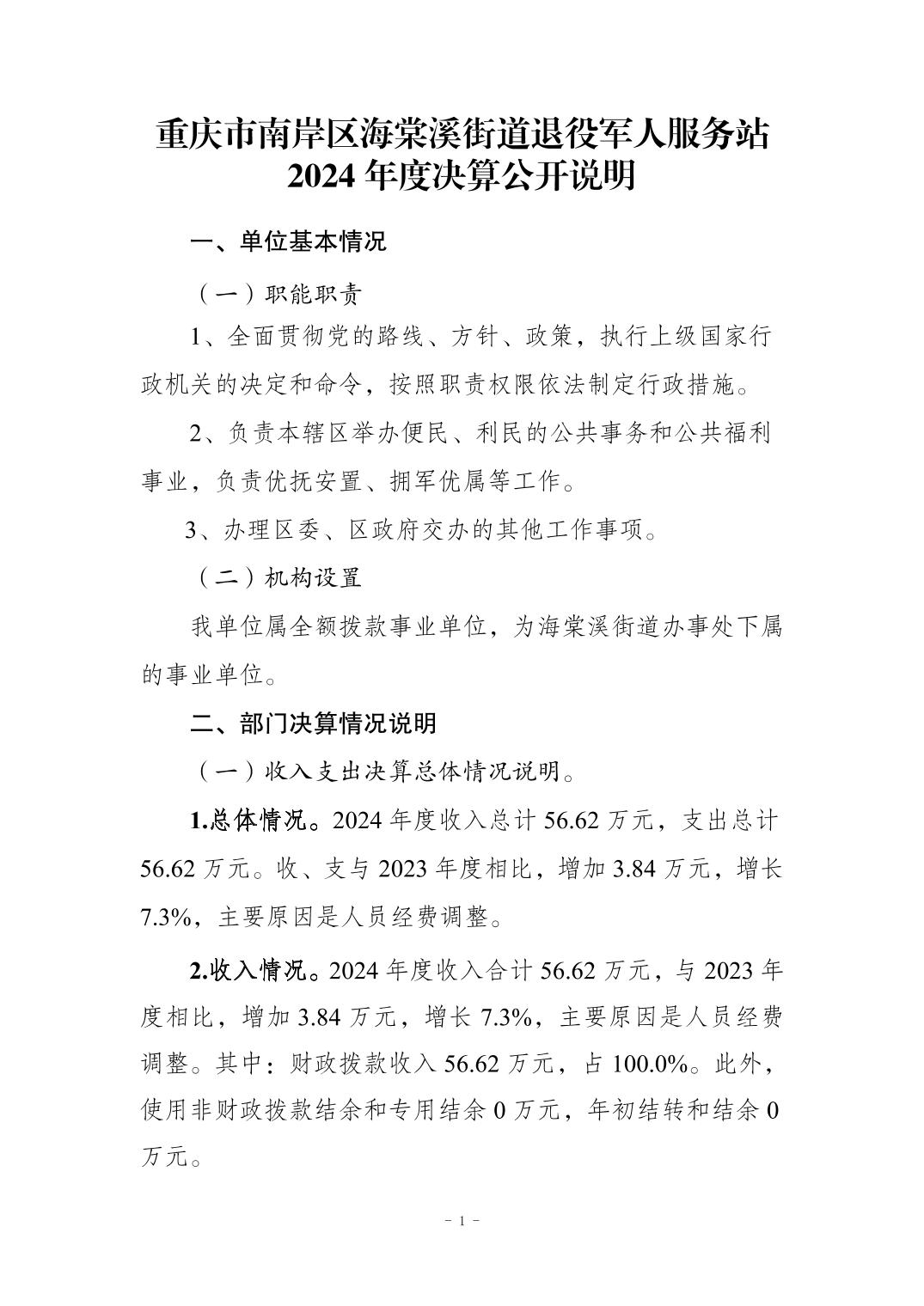 重庆市南岸区海棠溪街道退役军人服务站 2024 年度决算公开说明