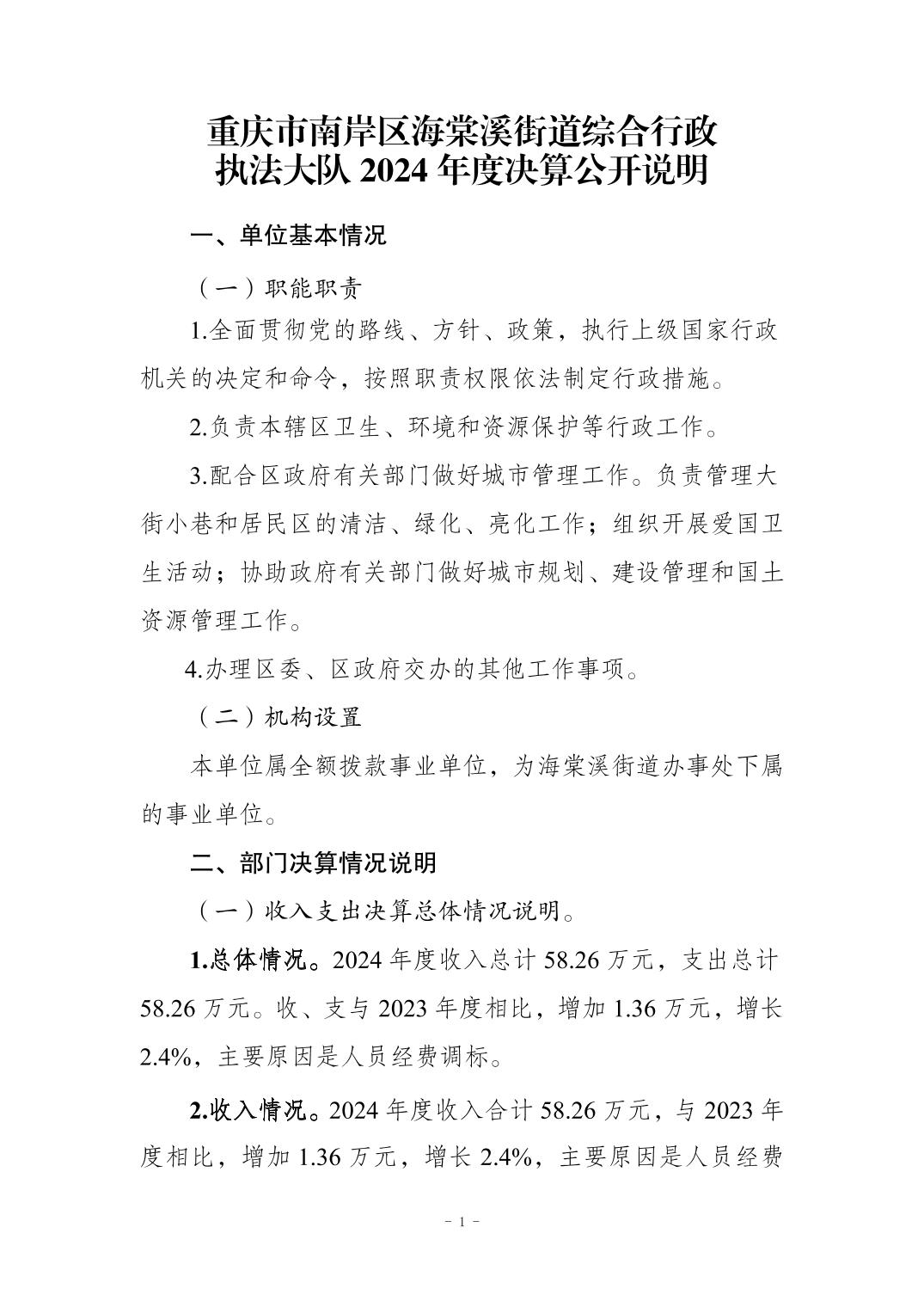 重庆市南岸区海棠溪街道综合行政执法大队 2024 年度决算公开说明