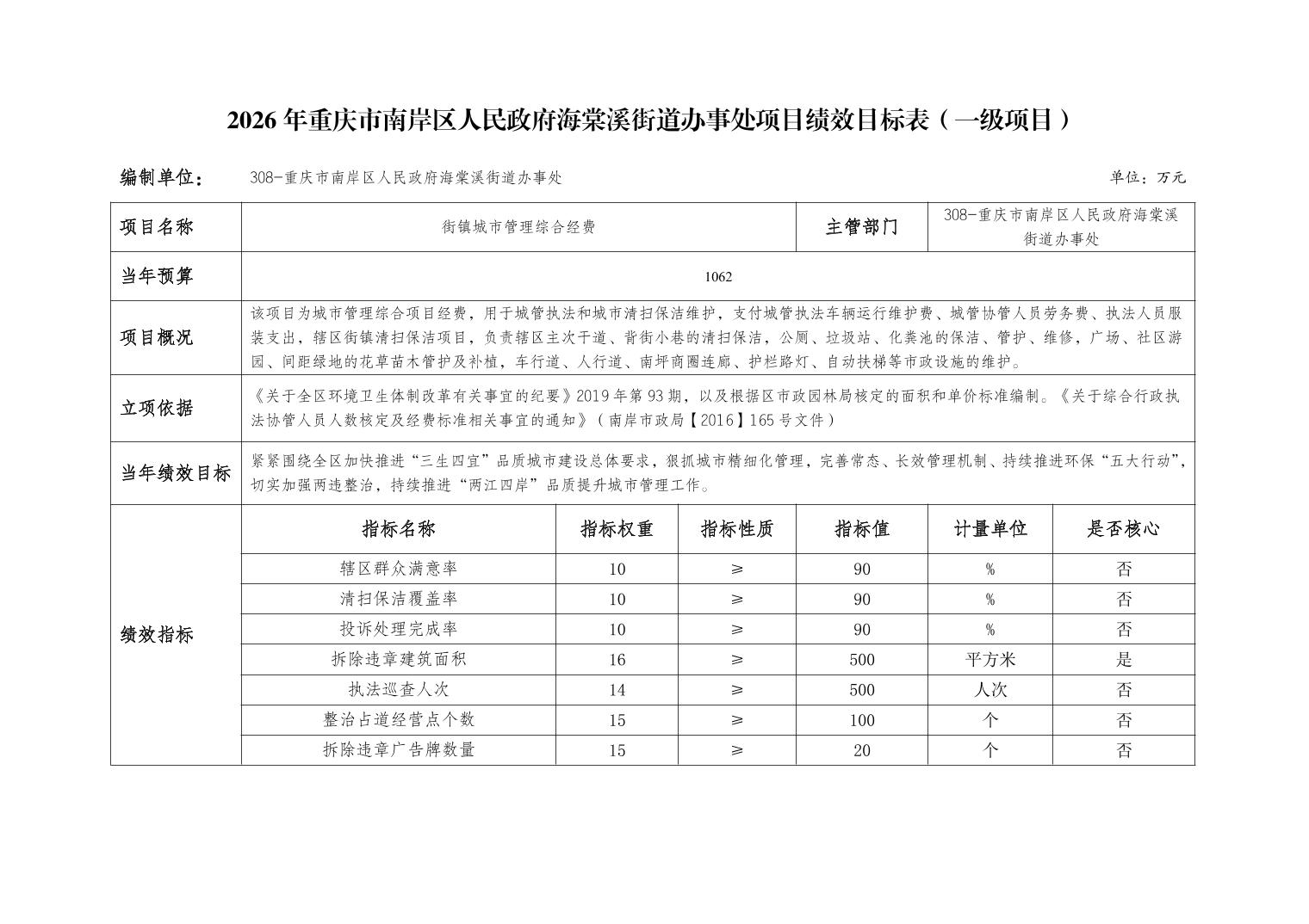 重庆市南岸区人民政府海棠溪街道办事处2026年部门预算情况说明