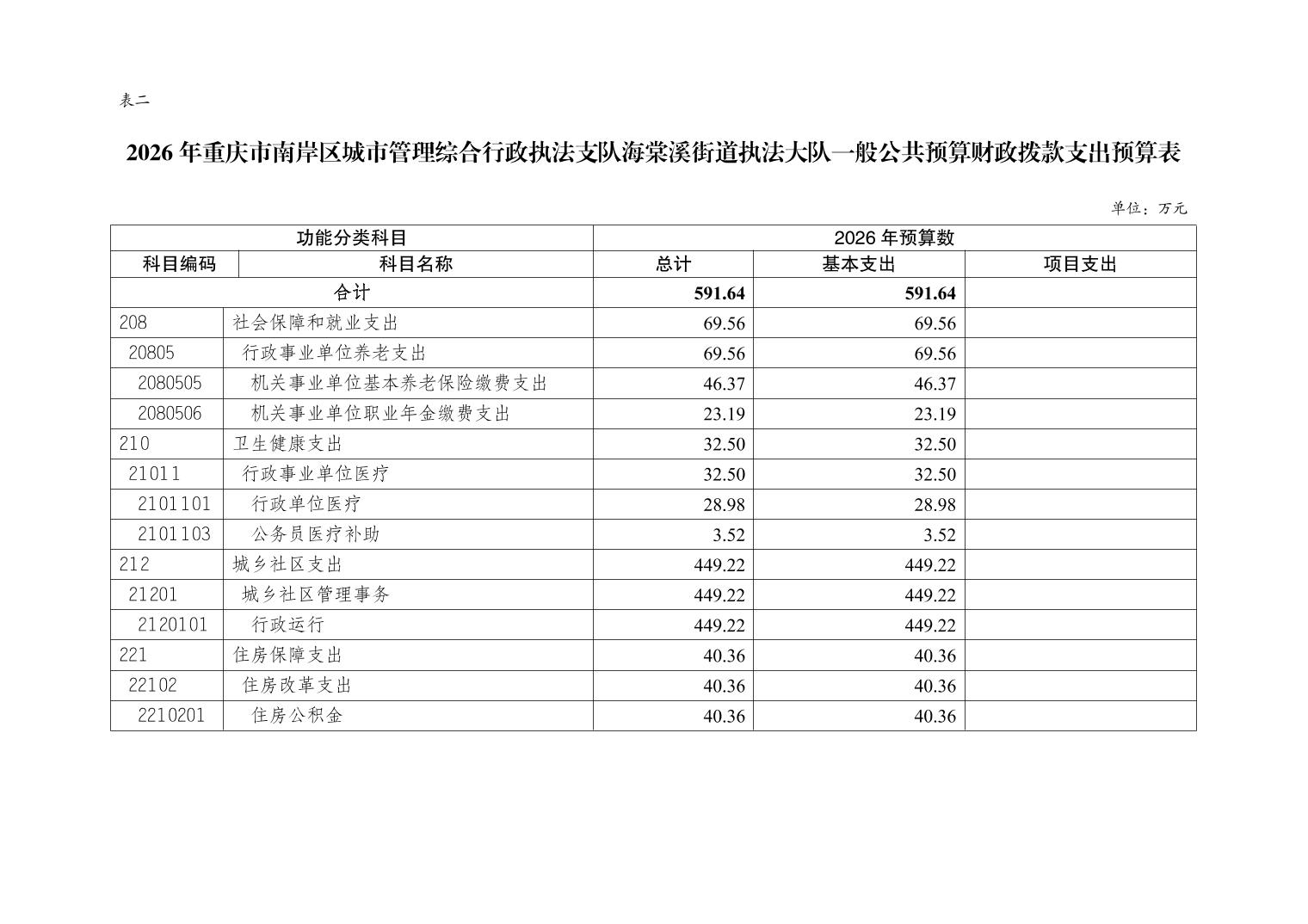 重庆市南岸区城市管理综合行政执法支队海棠溪街道执法大队2026年部门预算情况说明