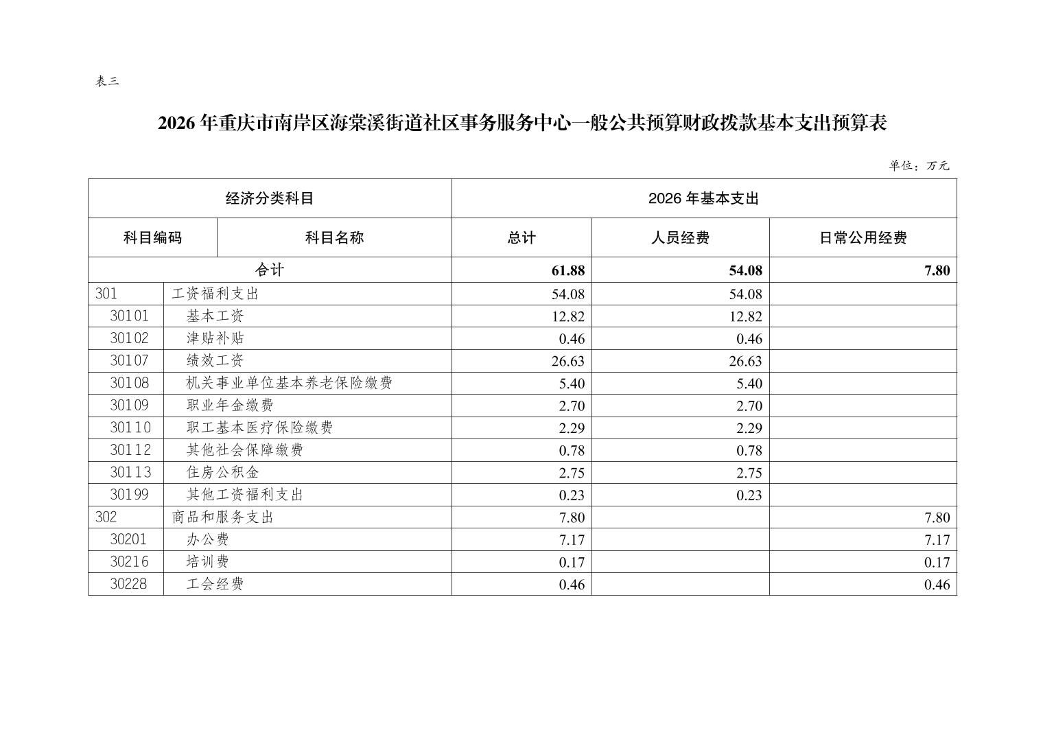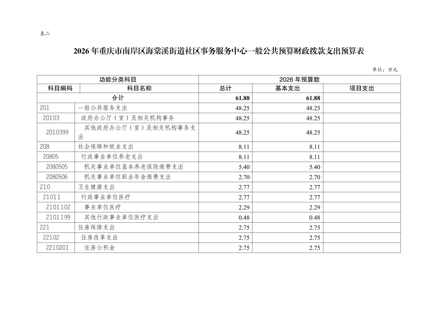 重庆市南岸区海棠溪街道社区事务服务中心2026年部门预算情况说明