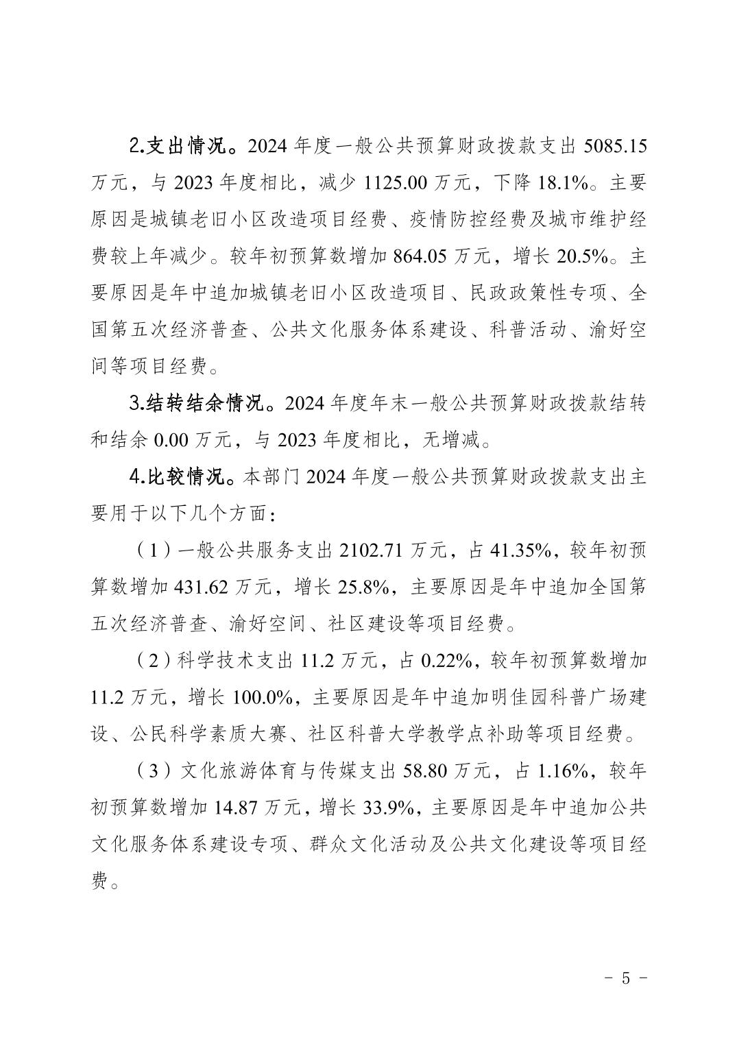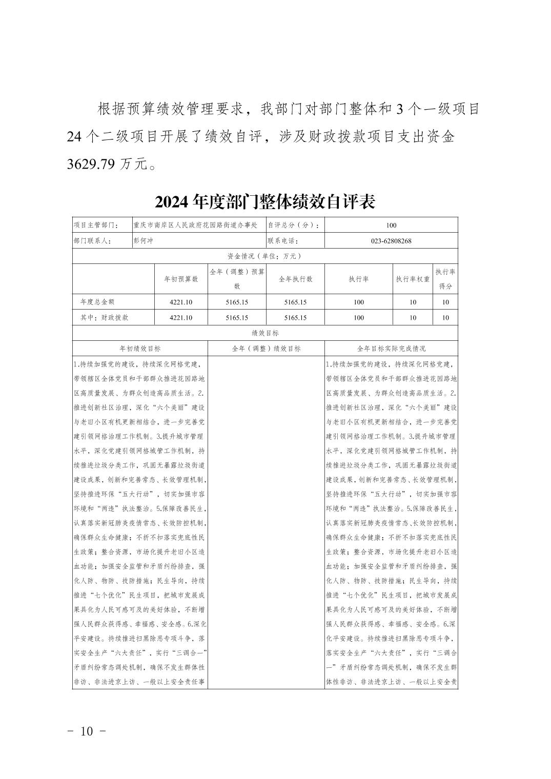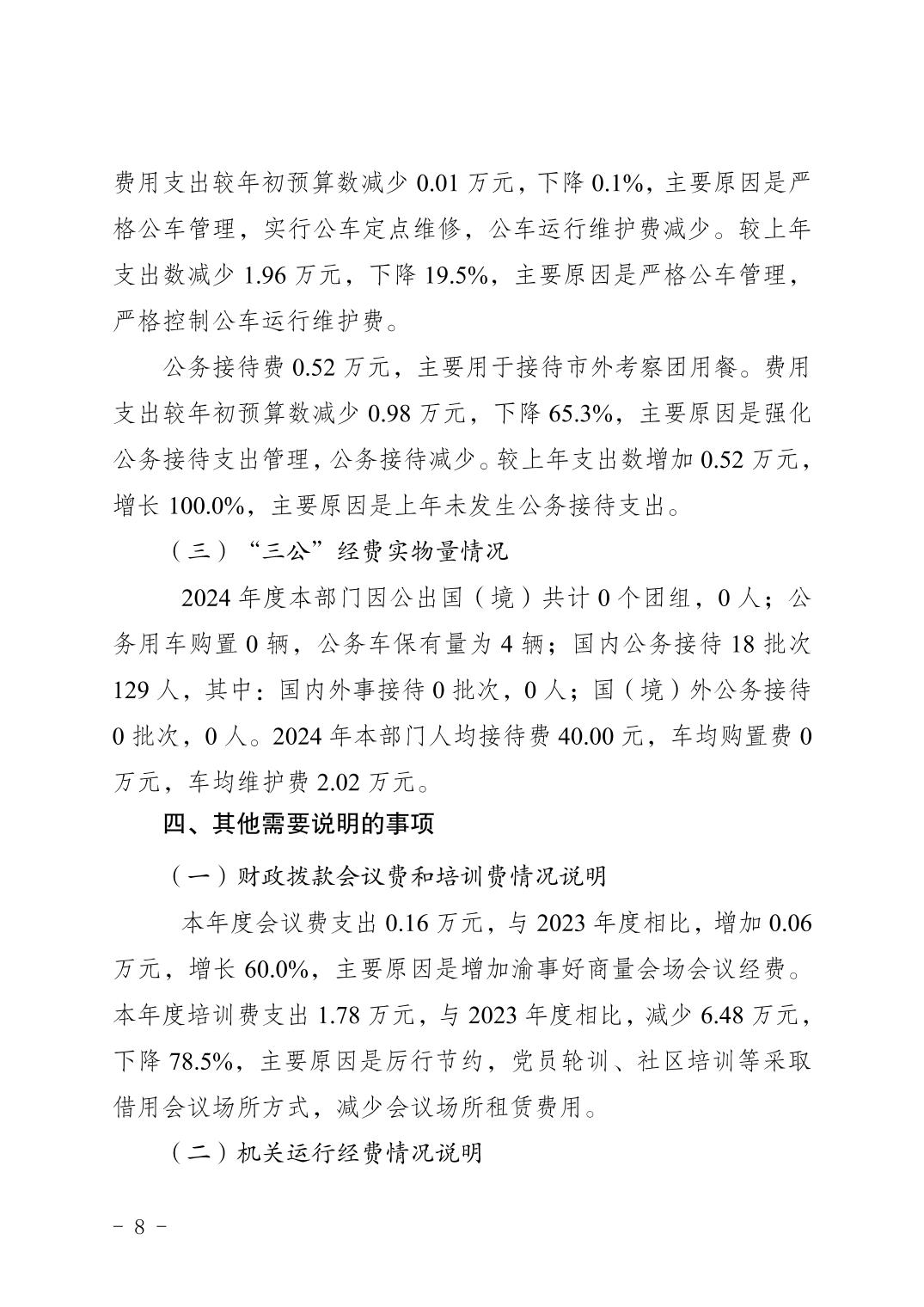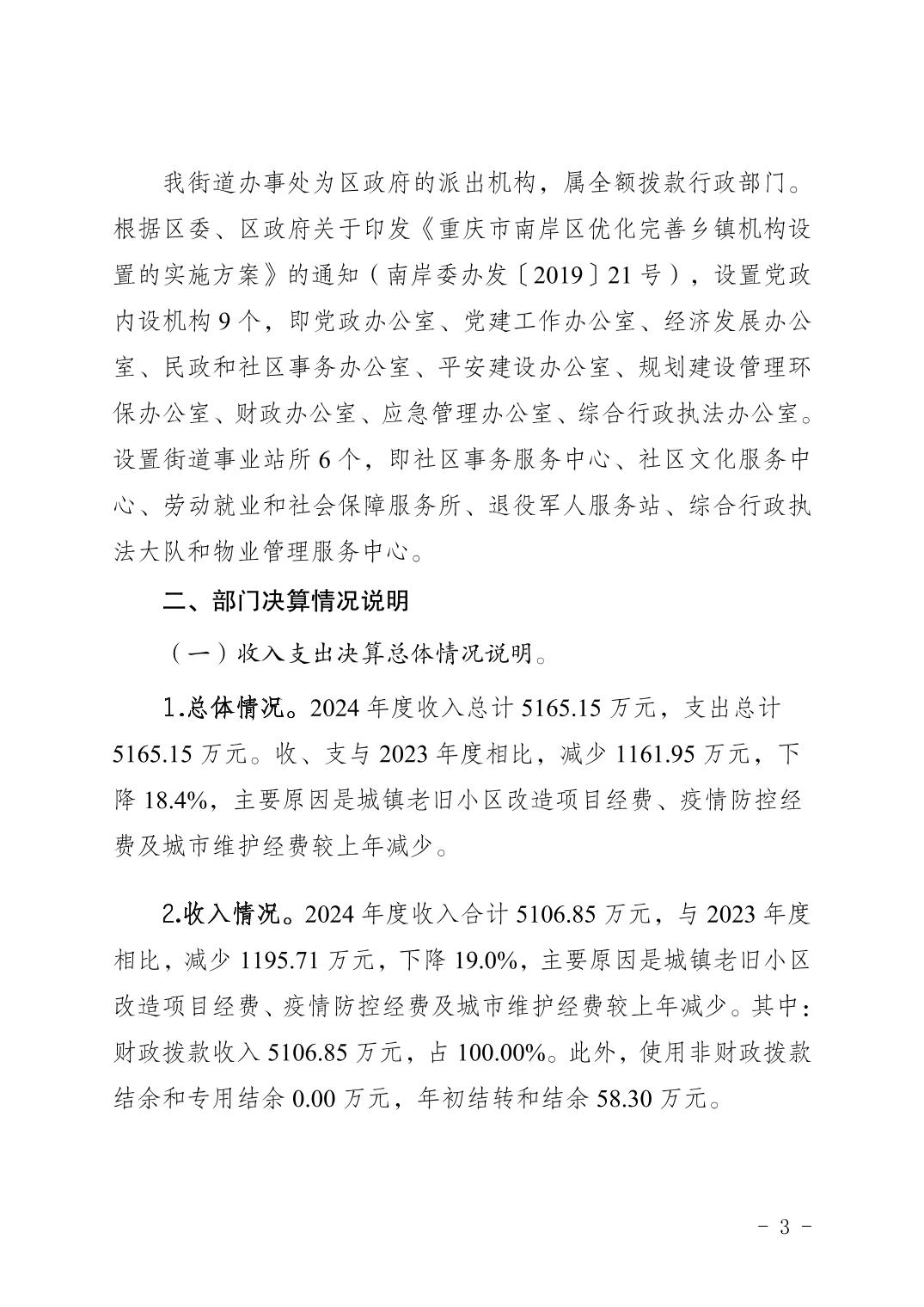 重庆市南岸区人民政府花园路街道办事处2024年度部门决算公开说明