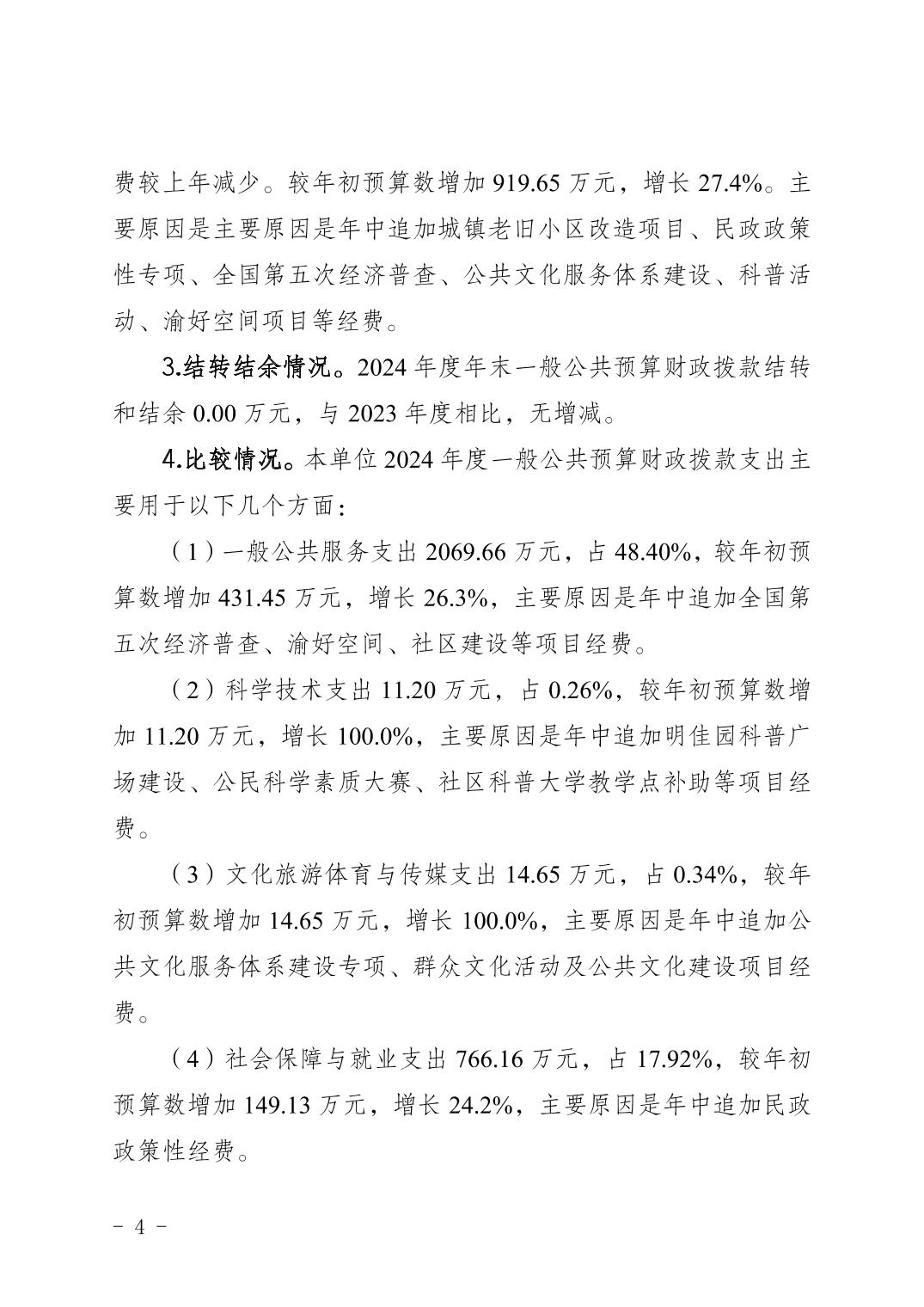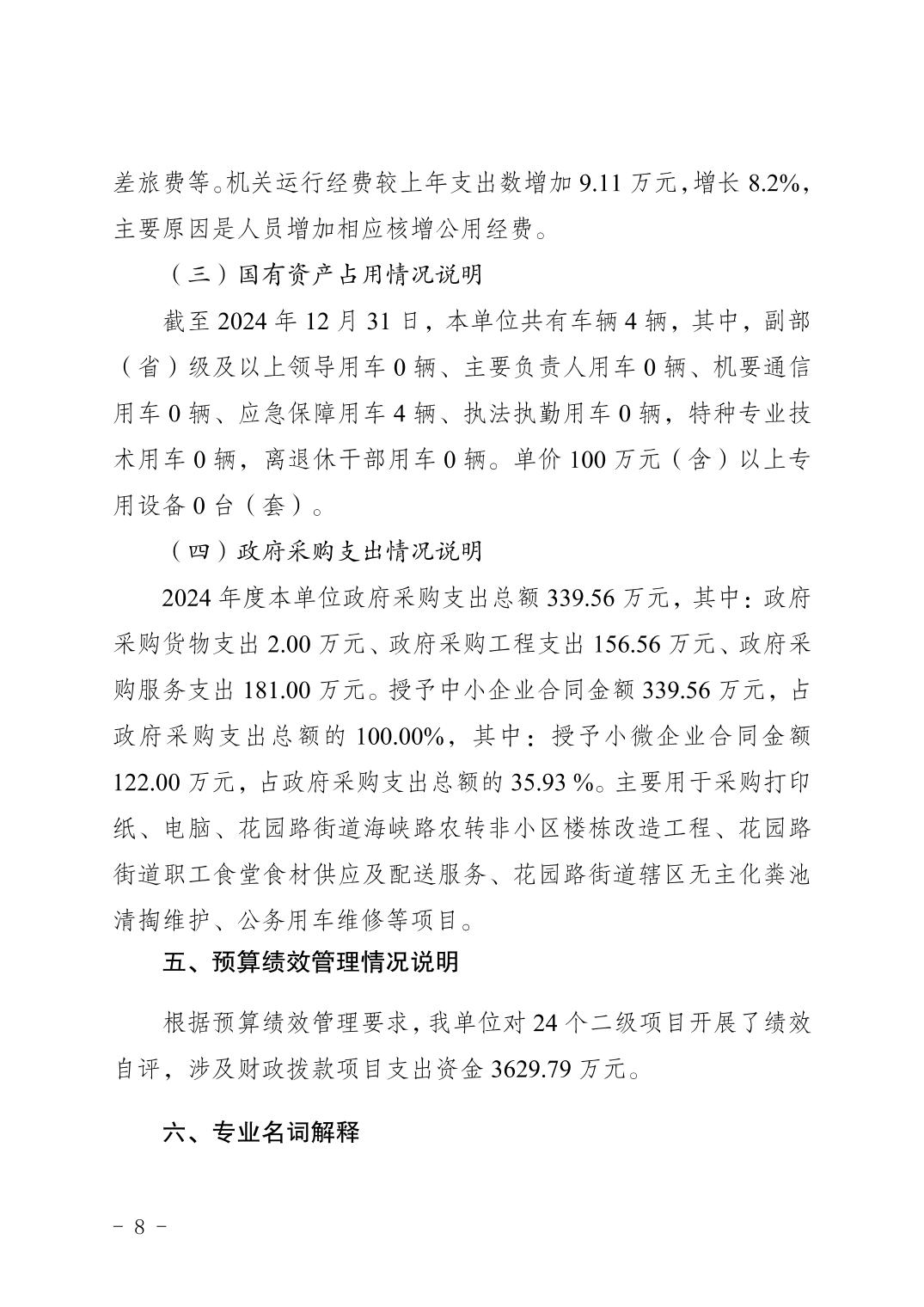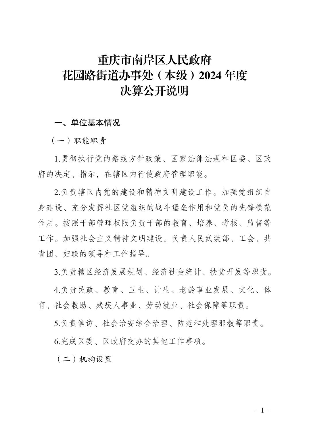 重庆市南岸区人民政府花园路街道办事处(本级)2024年度决算公开说明