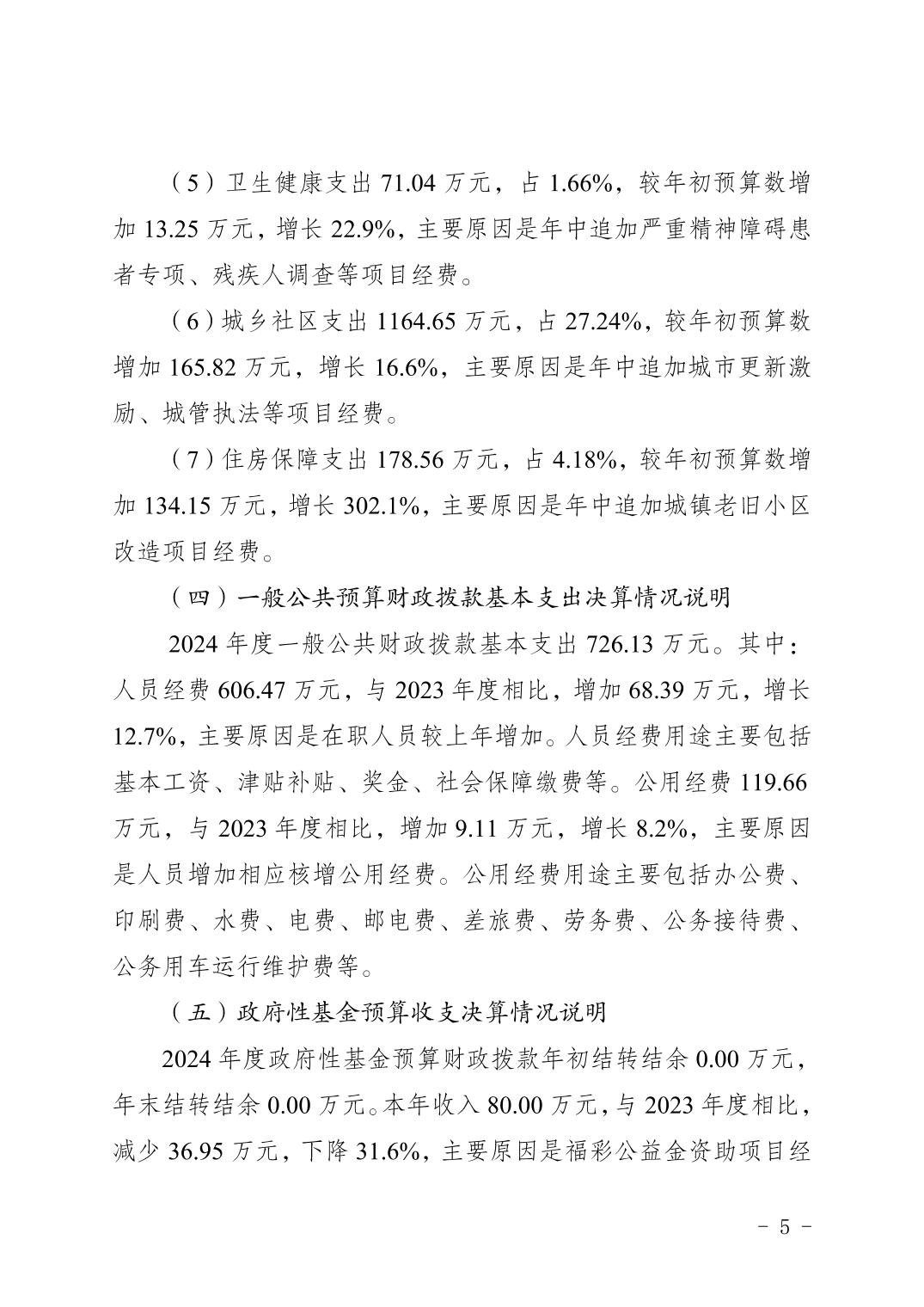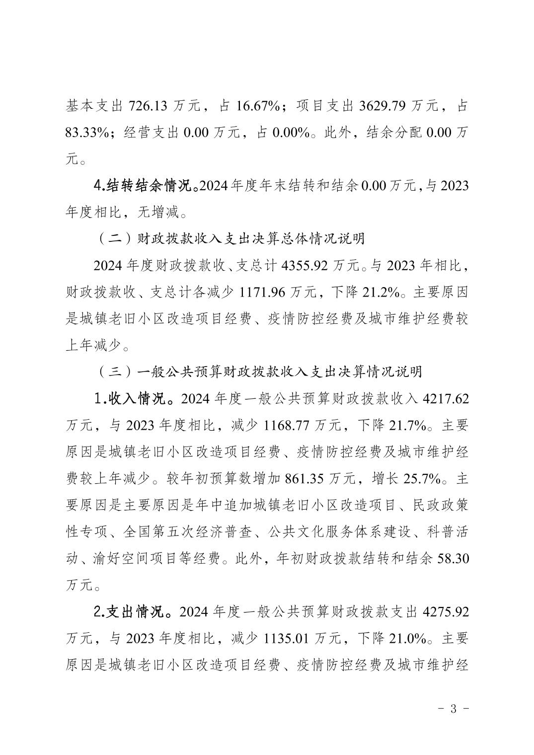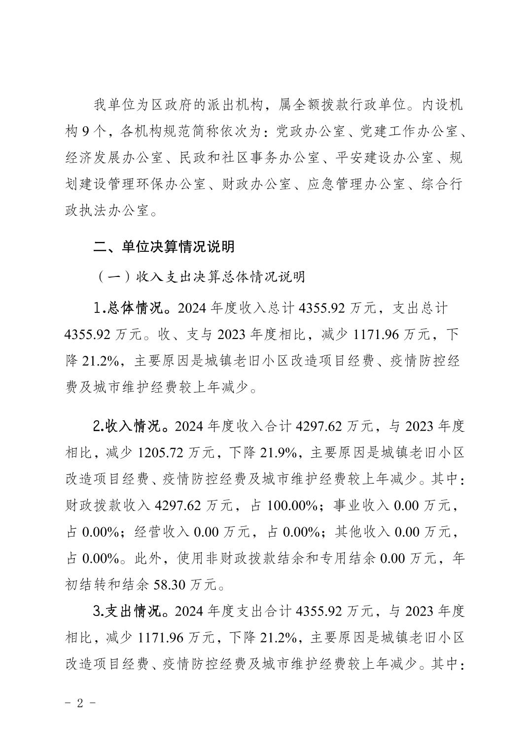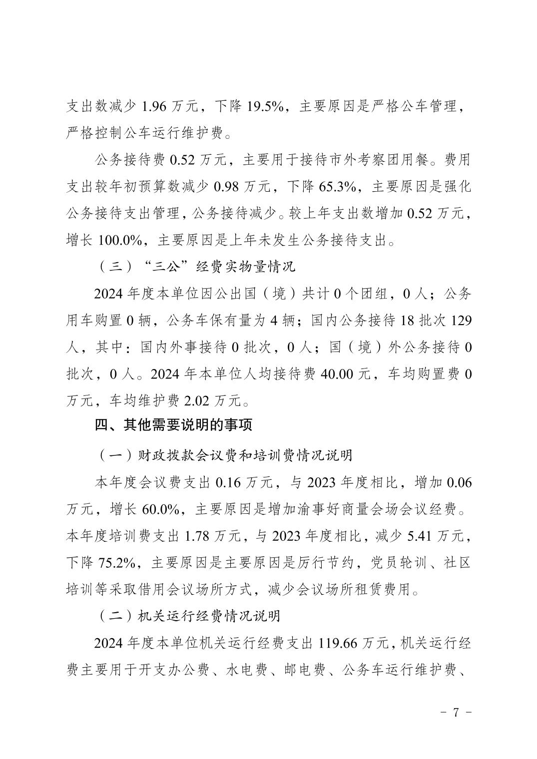 重庆市南岸区人民政府花园路街道办事处(本级)2024年度决算公开说明