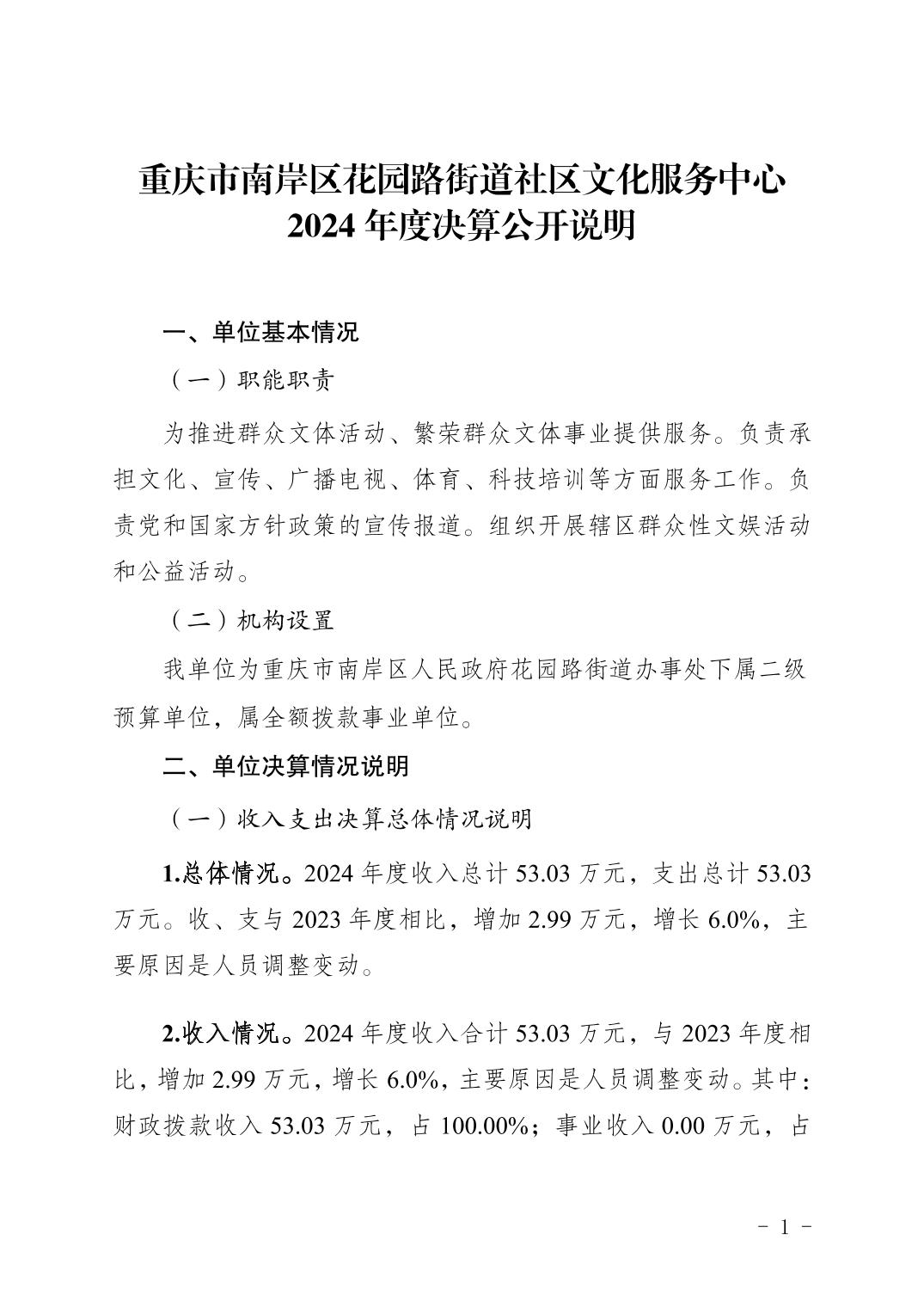 重庆市南岸区花园路街道社区文化服务中心2024年度决算公开说明