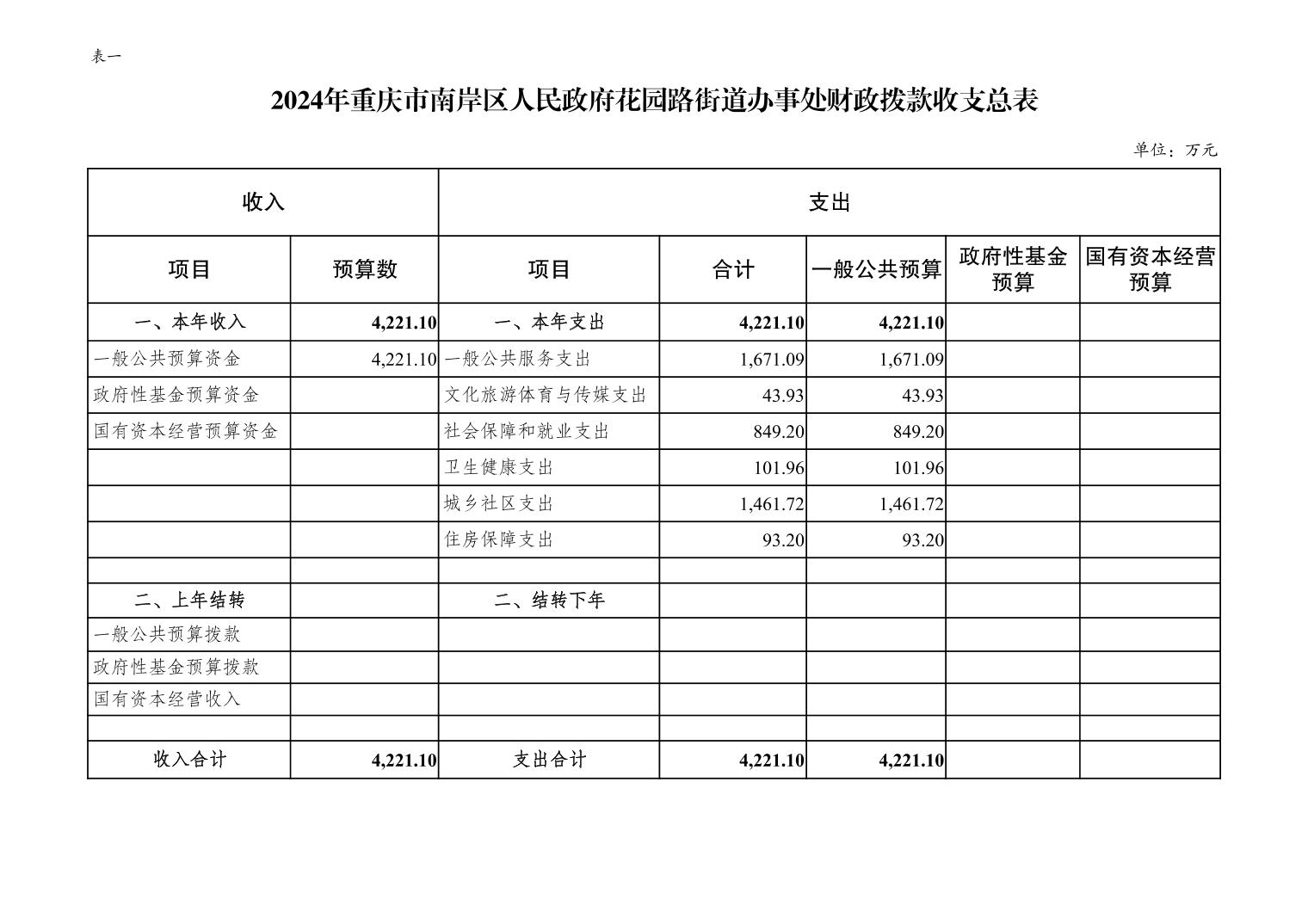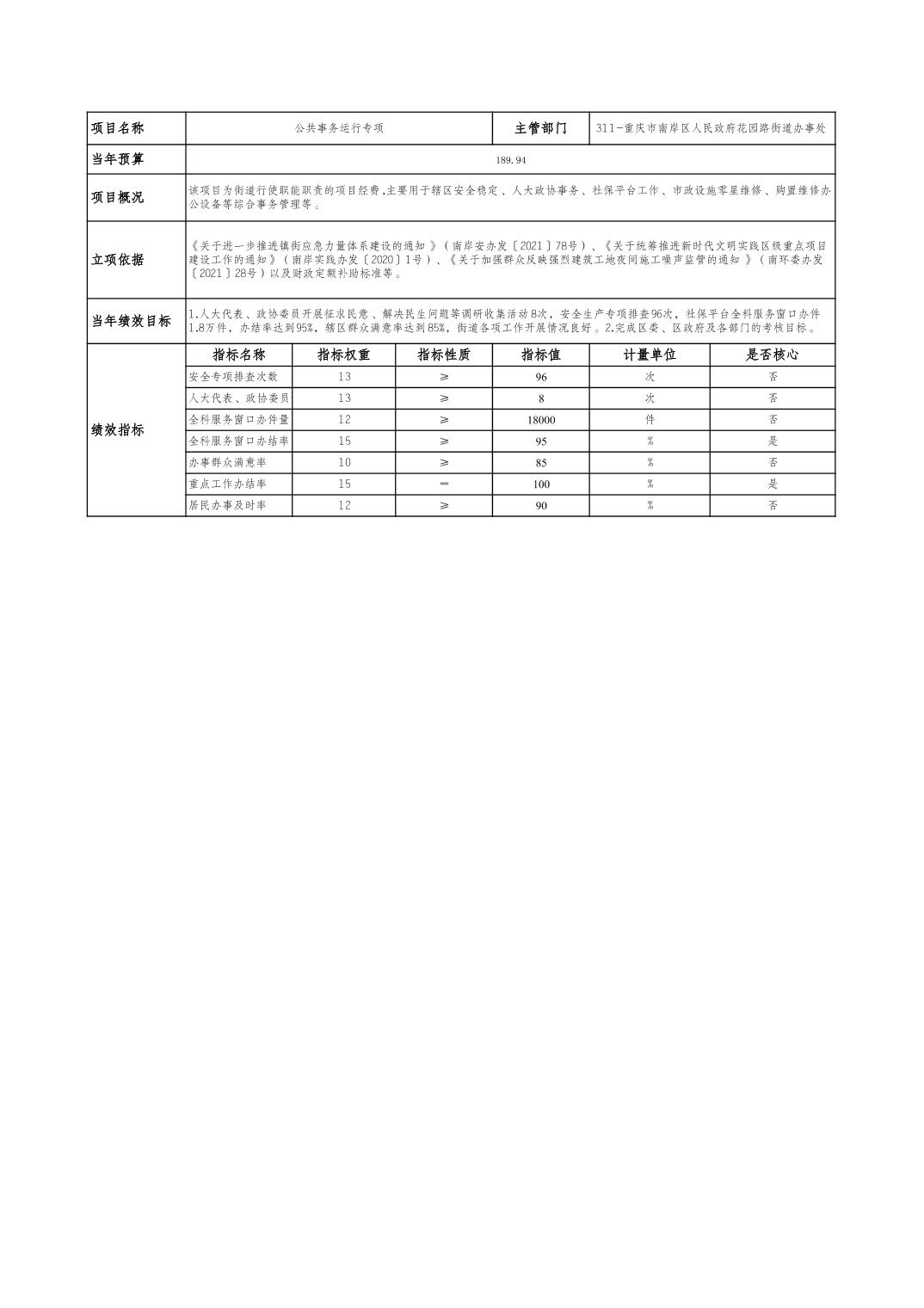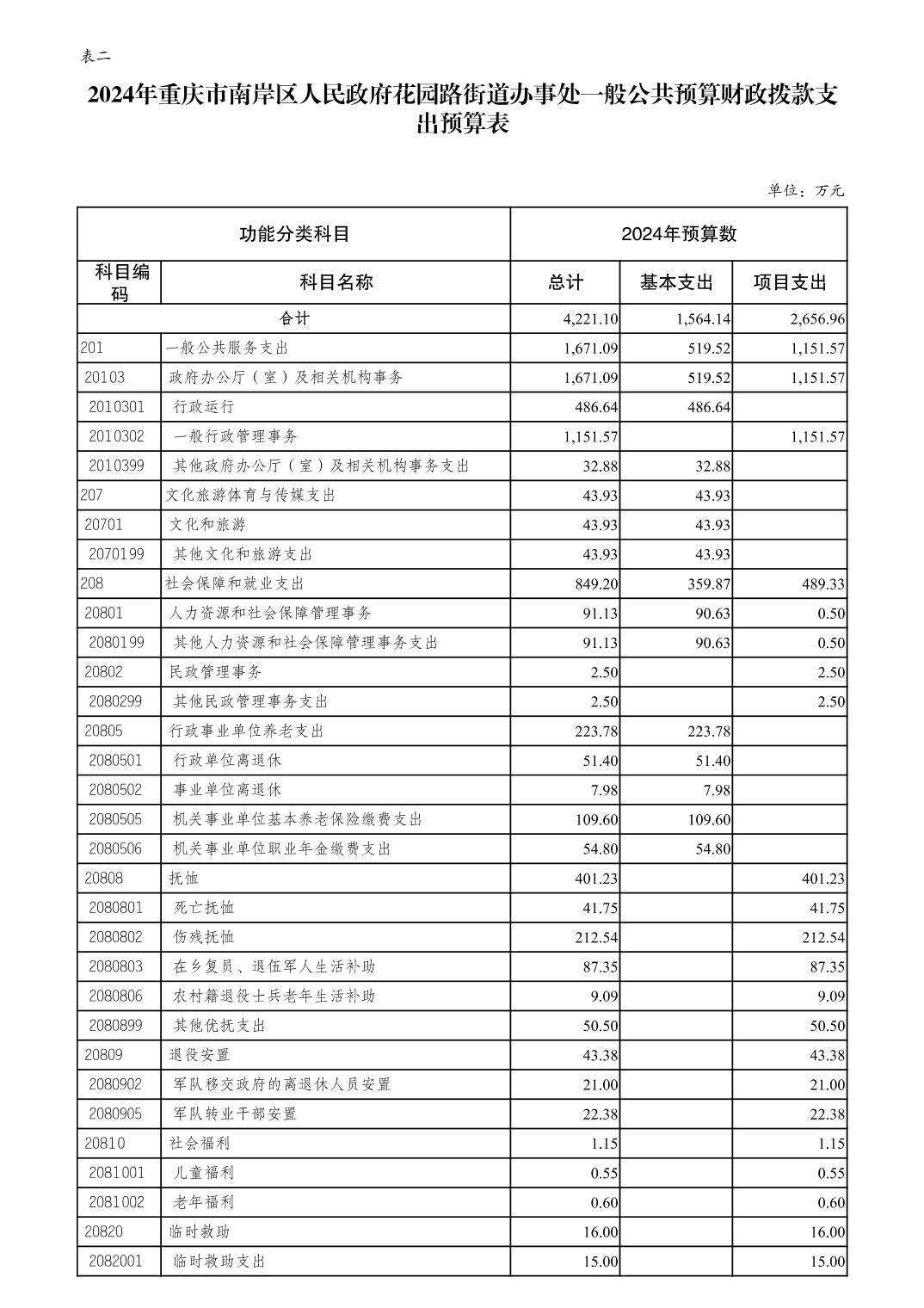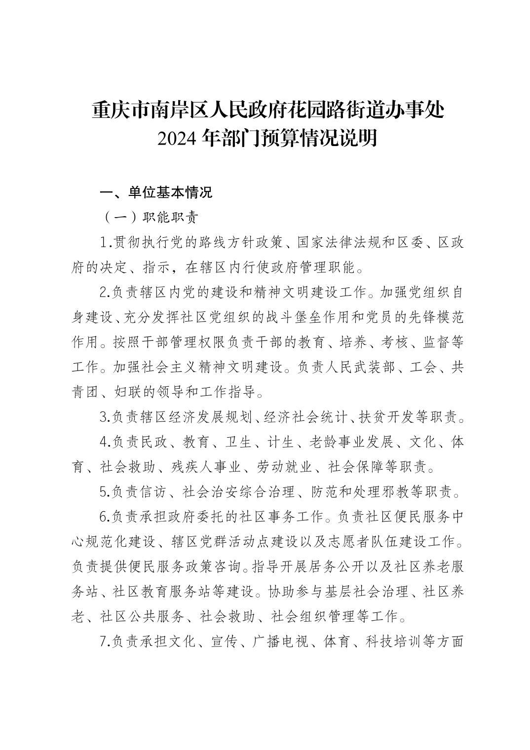 重庆市南岸区人民政府花园路街道办事处2024年部门预算情况说明