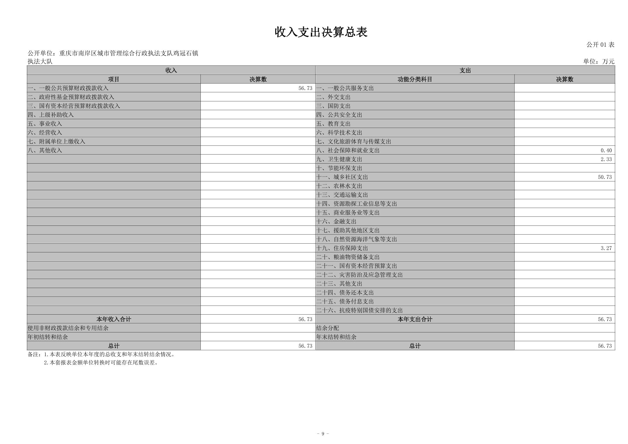 重庆市南岸区城市管理综合行政执法支队鸡冠石镇执法大队2024年度决算公开说明