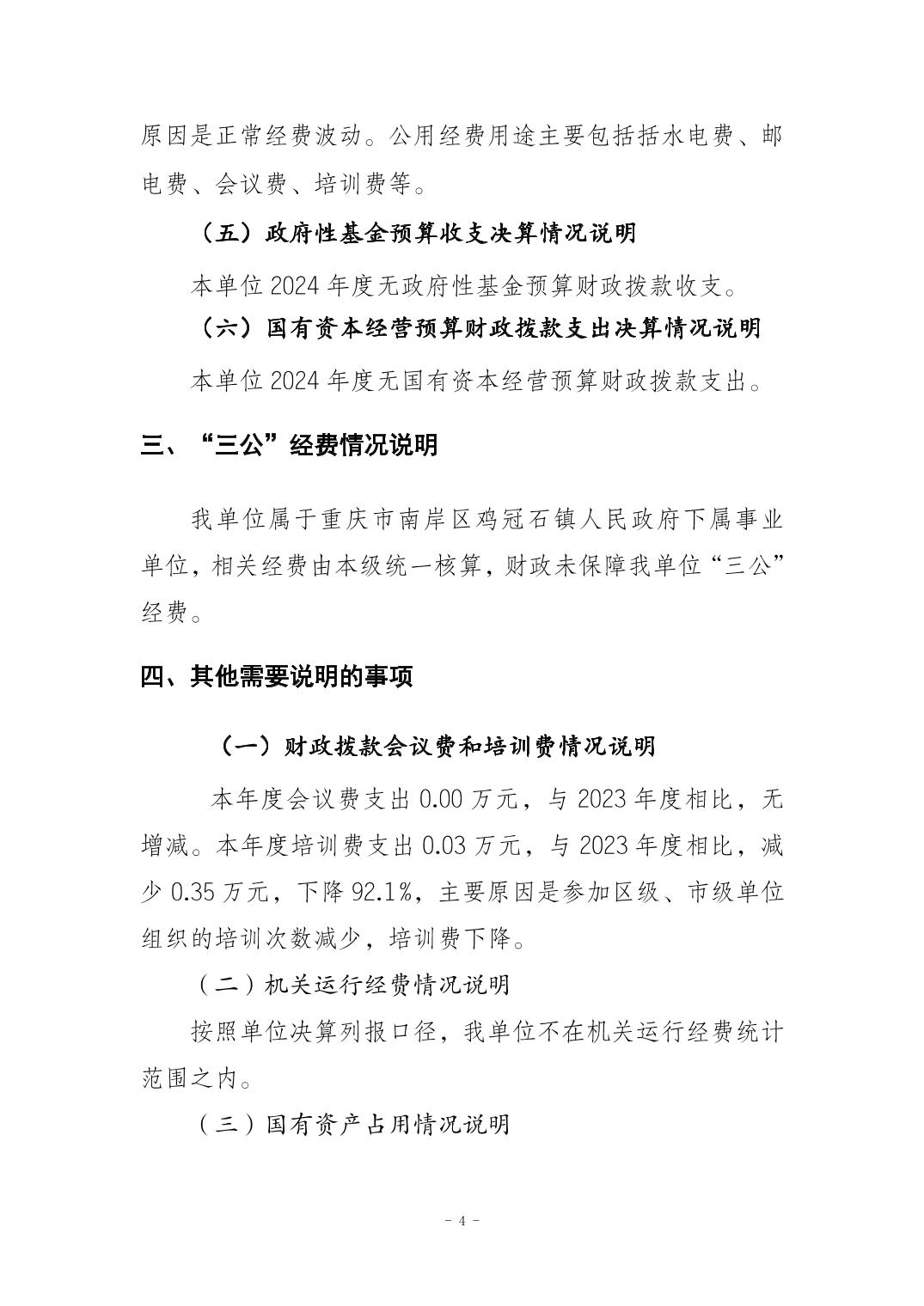 重庆市南岸区鸡冠石镇劳动就业和社会保障服务所2024年度决算公开说明