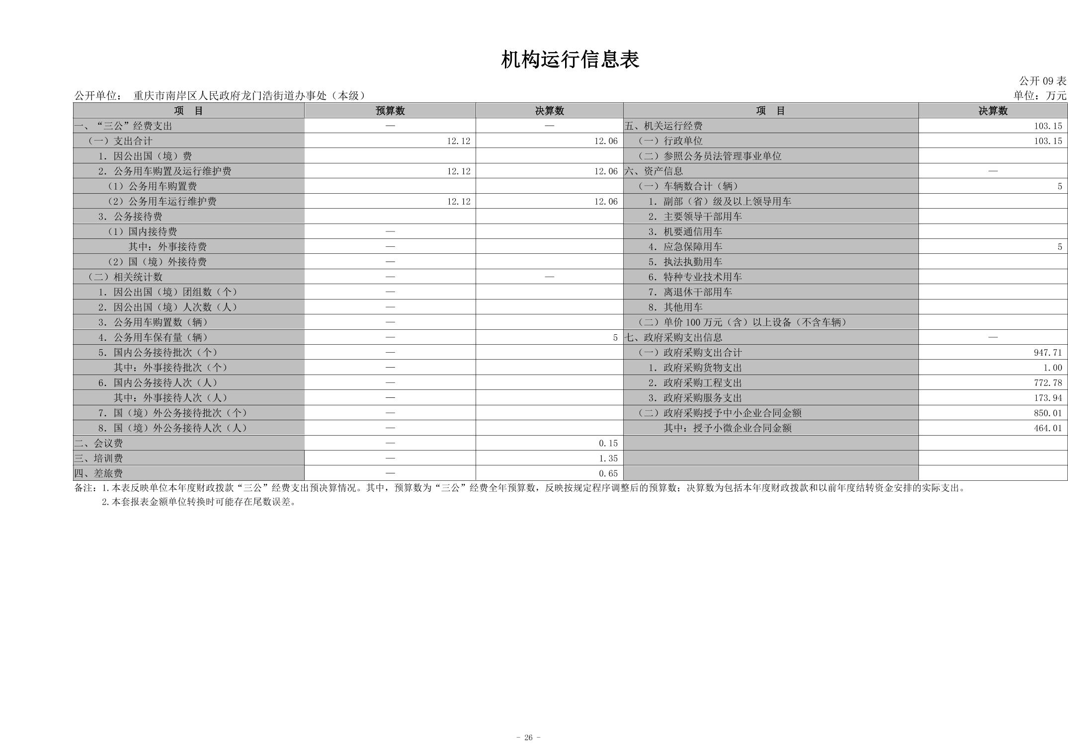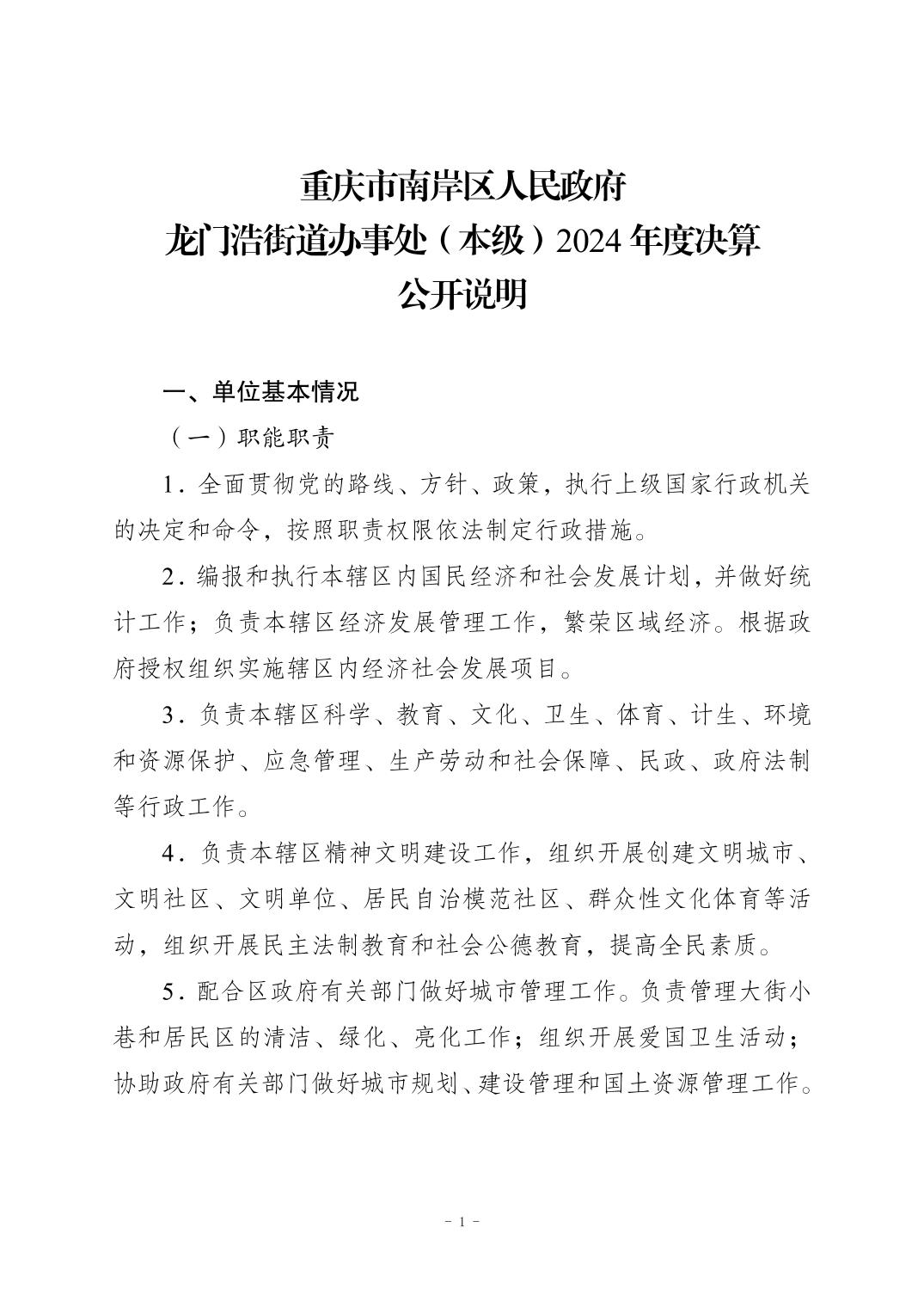 重庆市南岸区人民政府龙门浩街道办事处(本级)2024年度部门决算公开说明