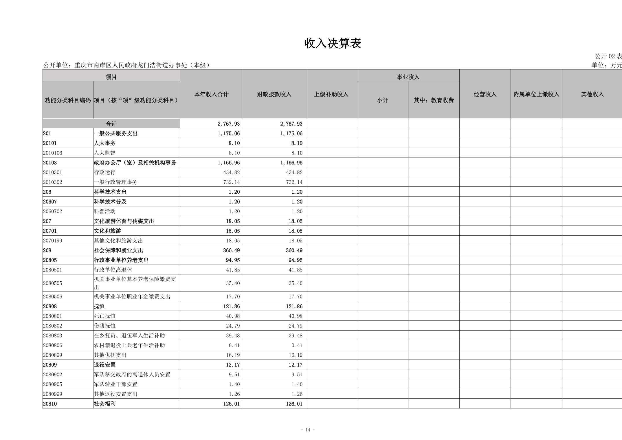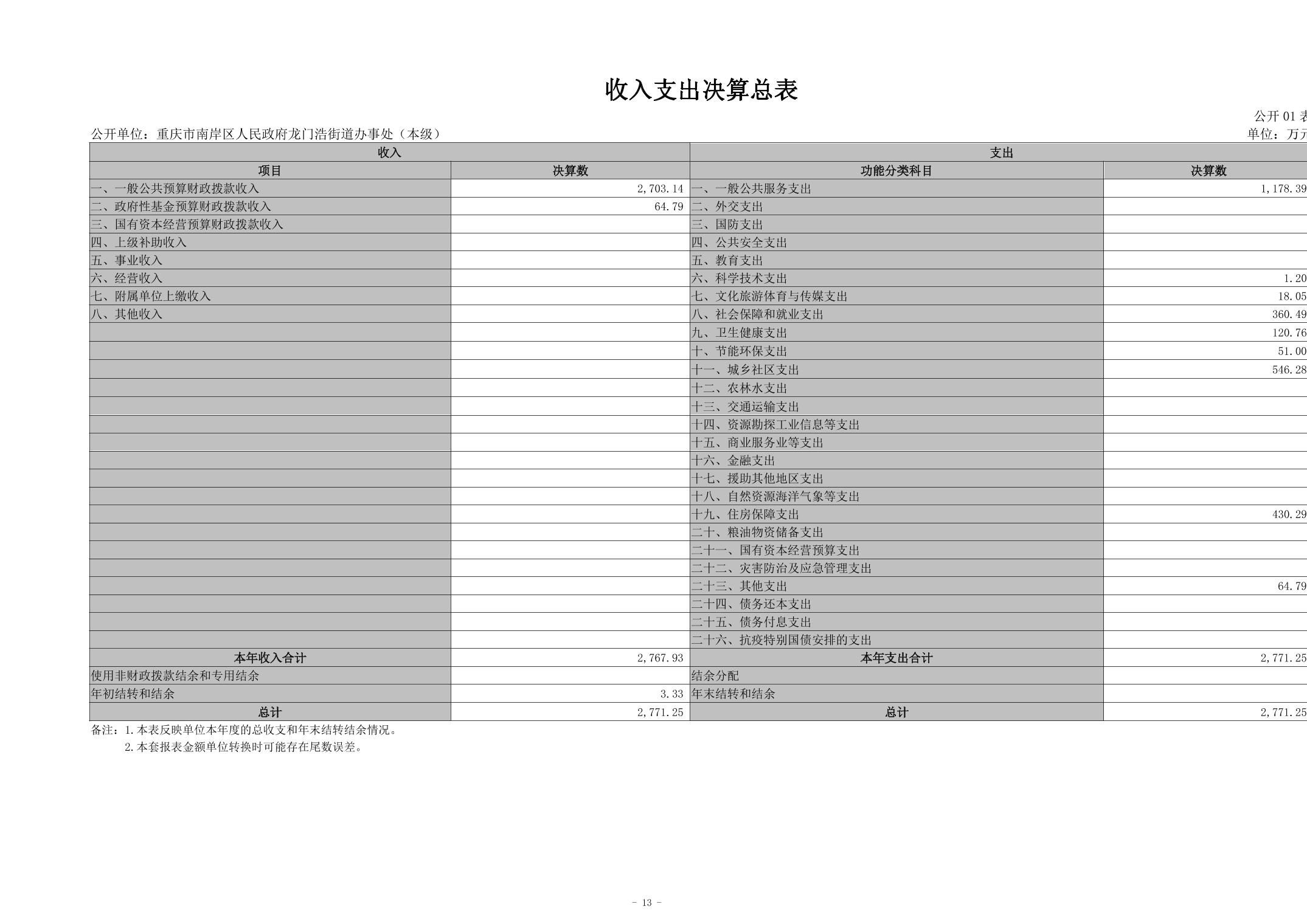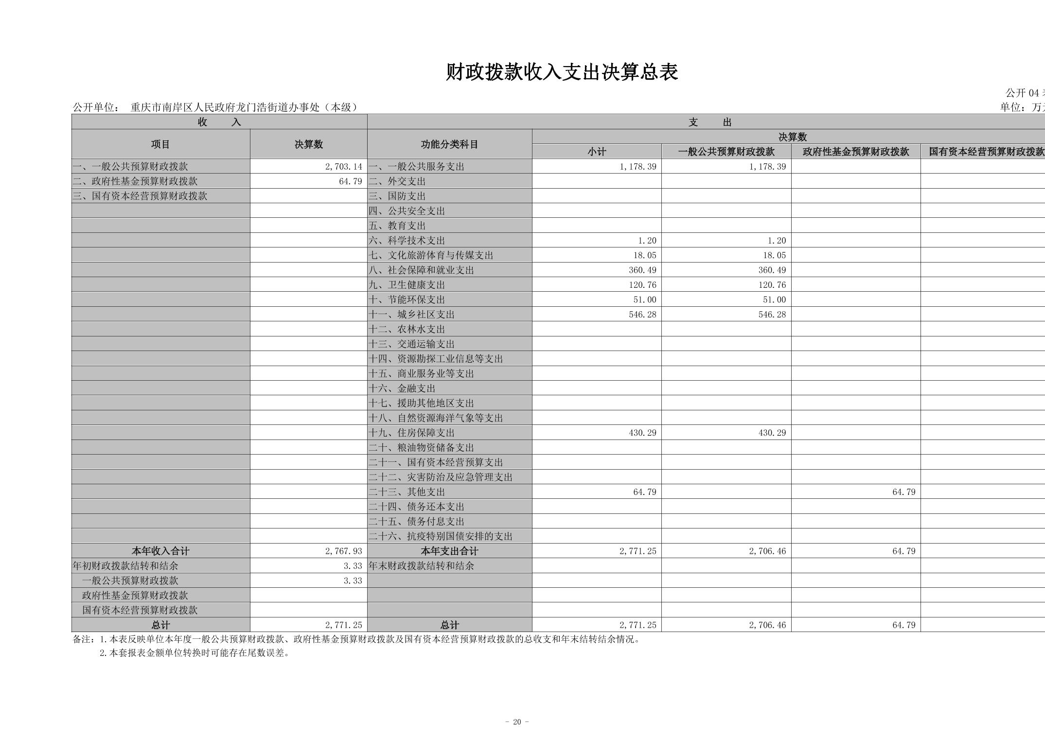 龙门浩街道>政务公开>法定主动公开内容>预算/决算>财政决算