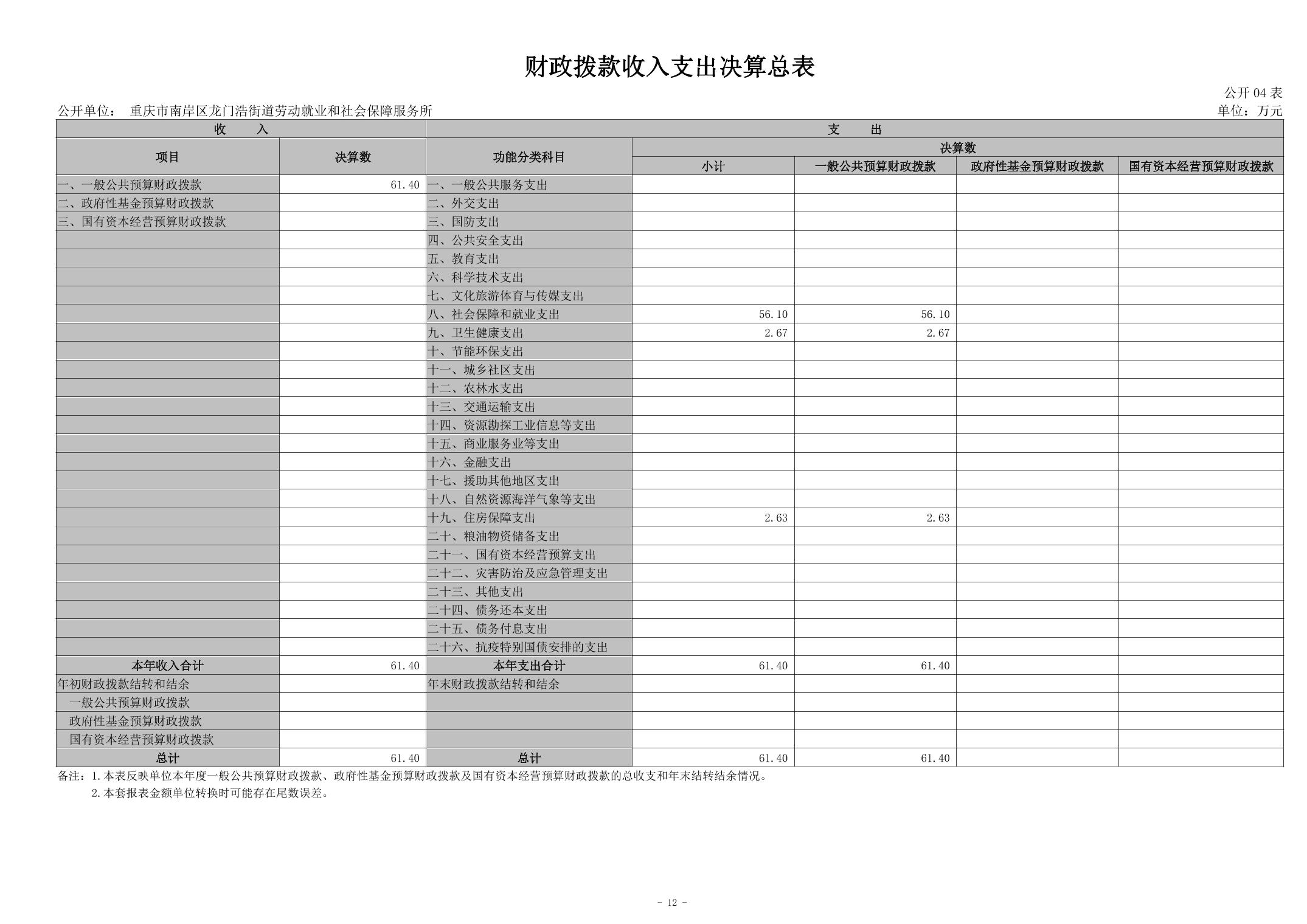 龙门浩街道>政务公开>法定主动公开内容>预算/决算>财政决算