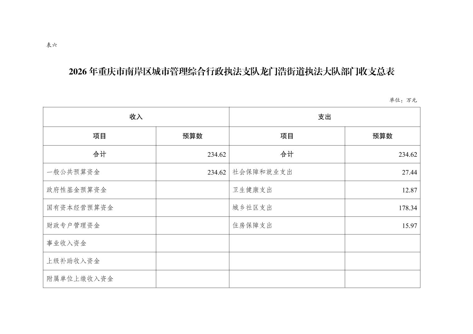 重庆市南岸区城市管理综合行政执法支队龙门浩街道执法大队2026年单位预算情况说明