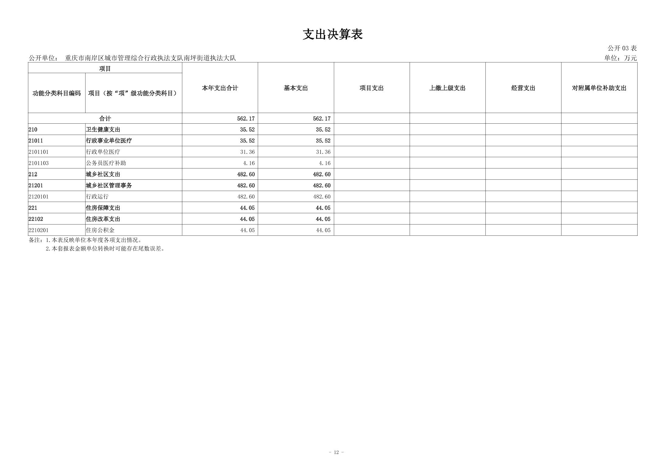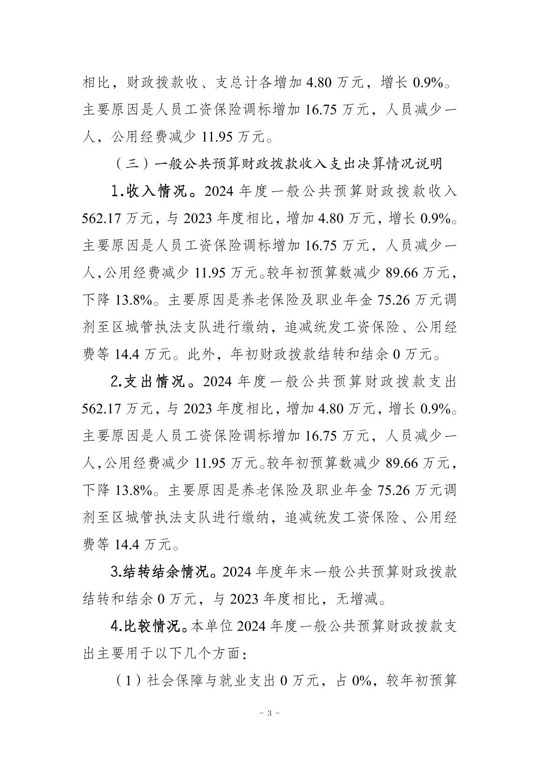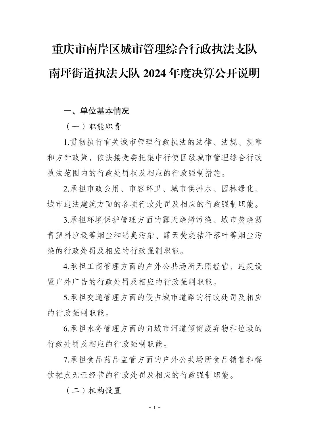重庆市南岸区城市管理综合行政执法支队南坪街道执法大队2024年度决算公开说明