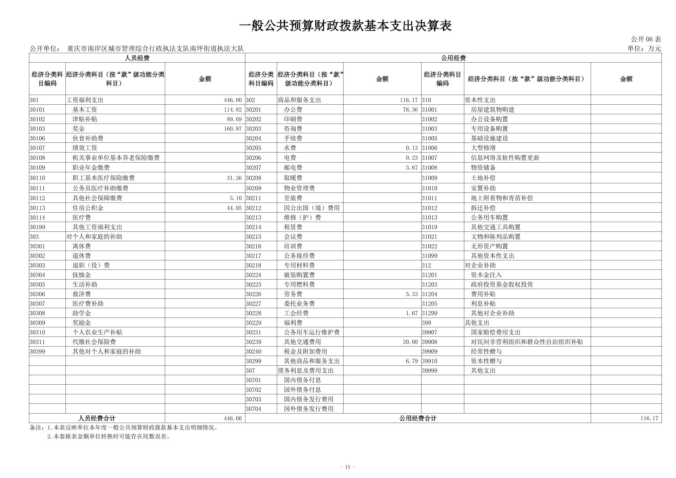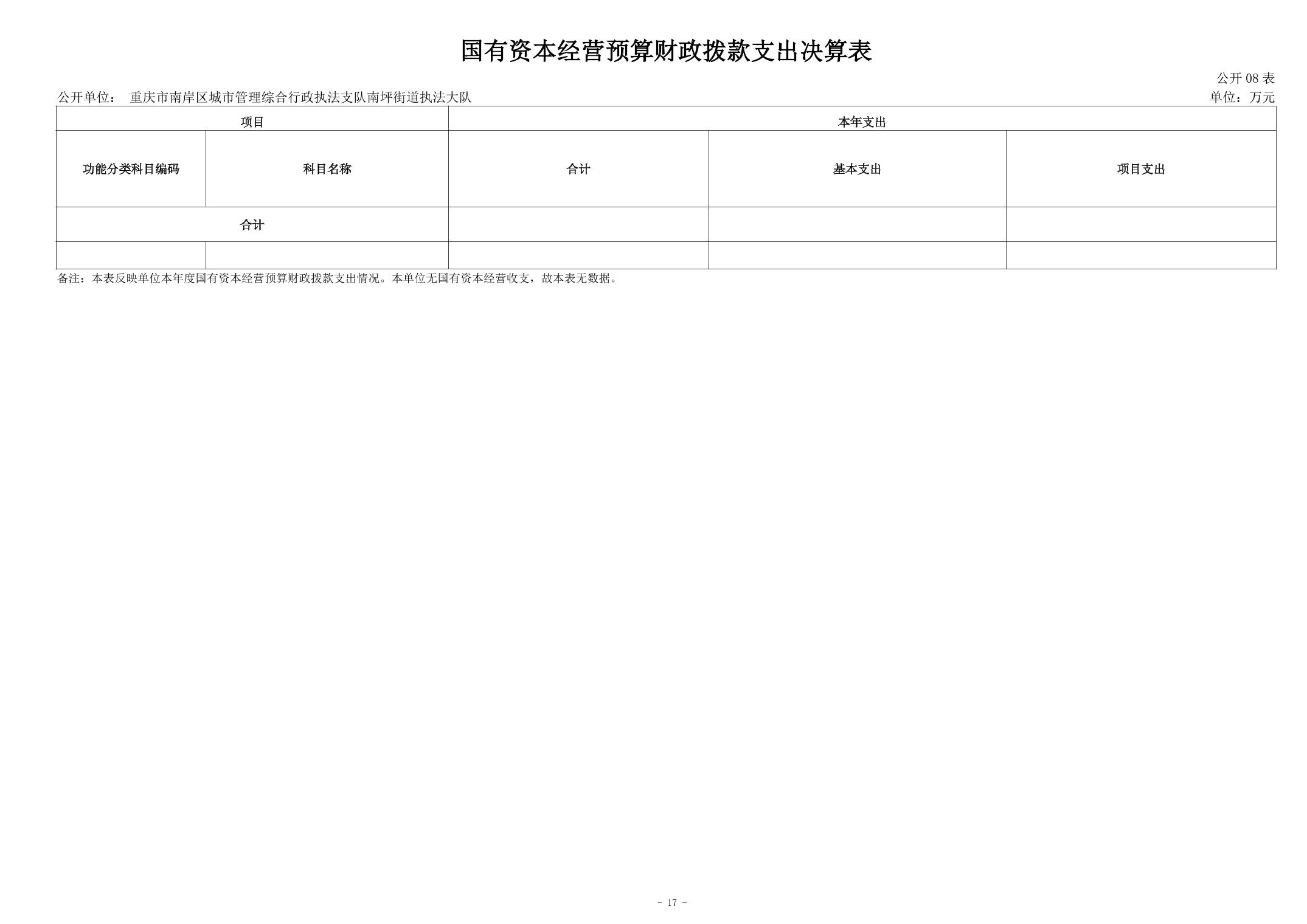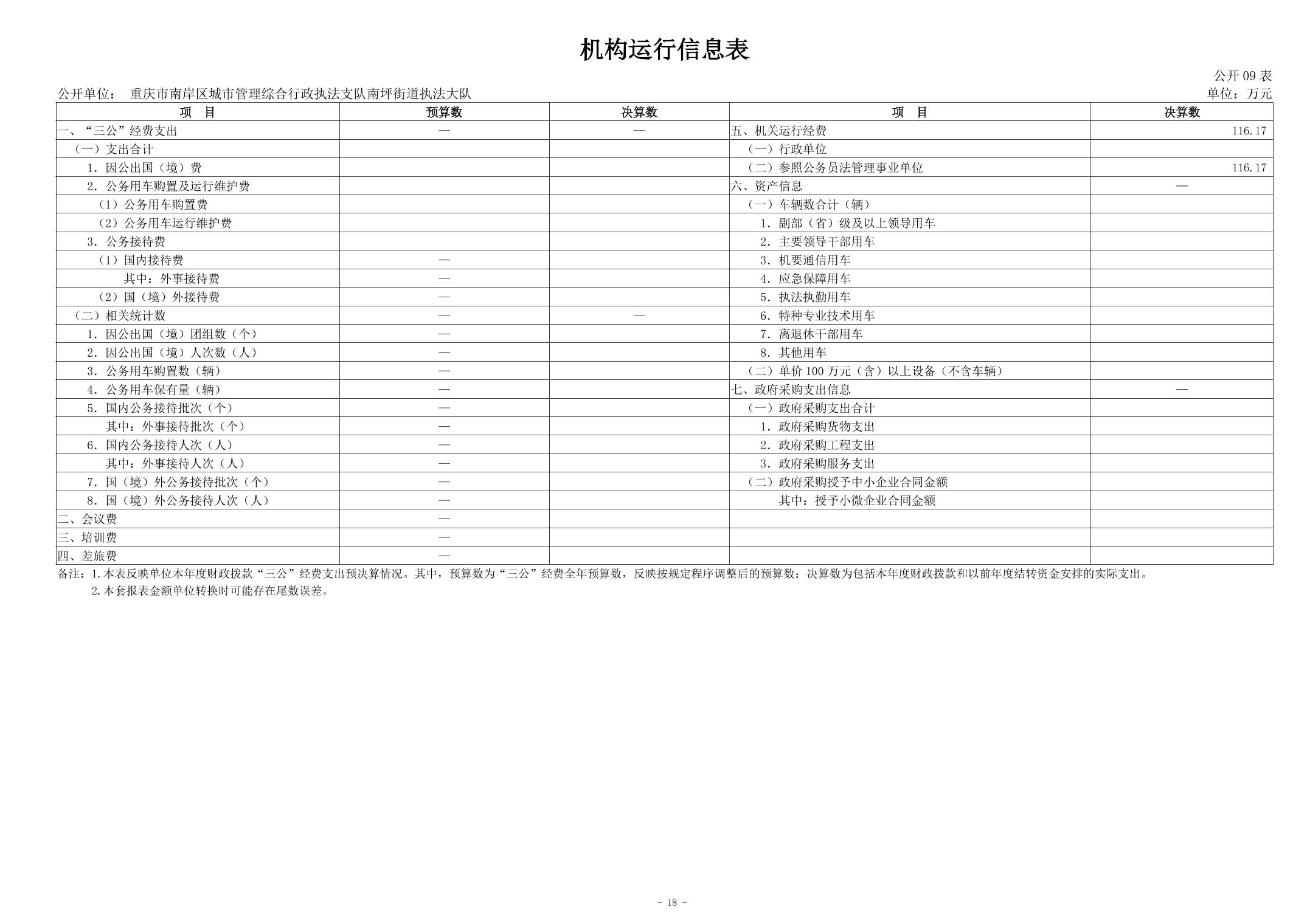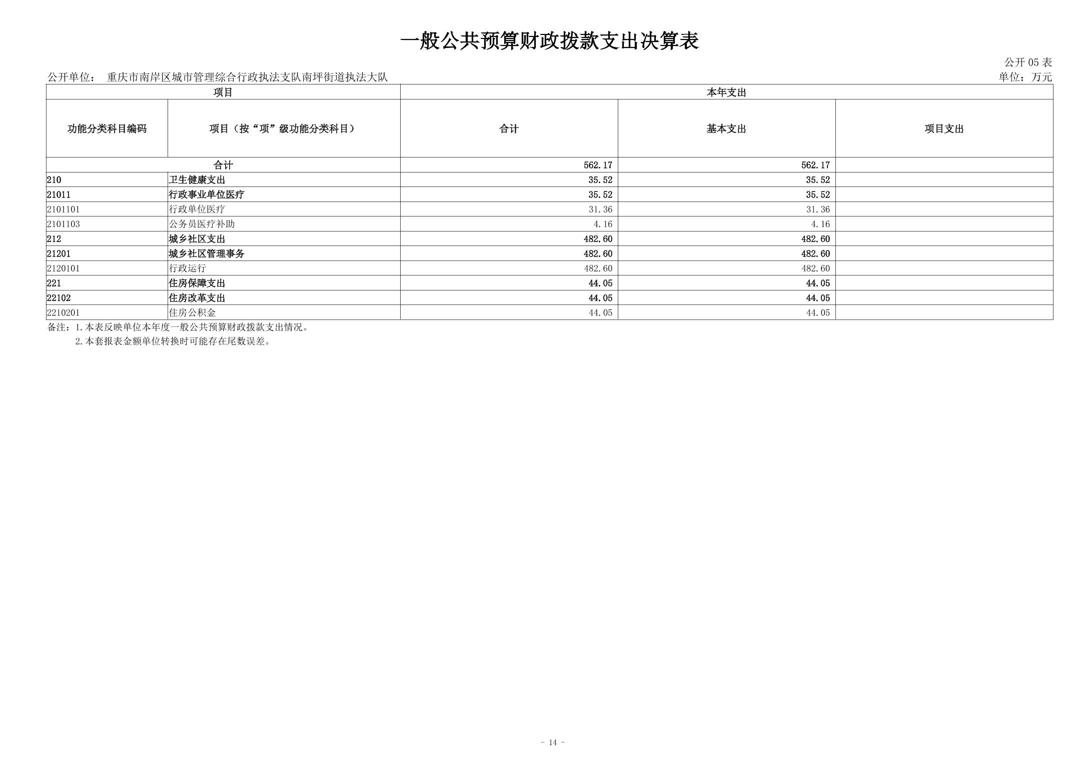 重庆市南岸区城市管理综合行政执法支队南坪街道执法大队2024年度决算公开说明