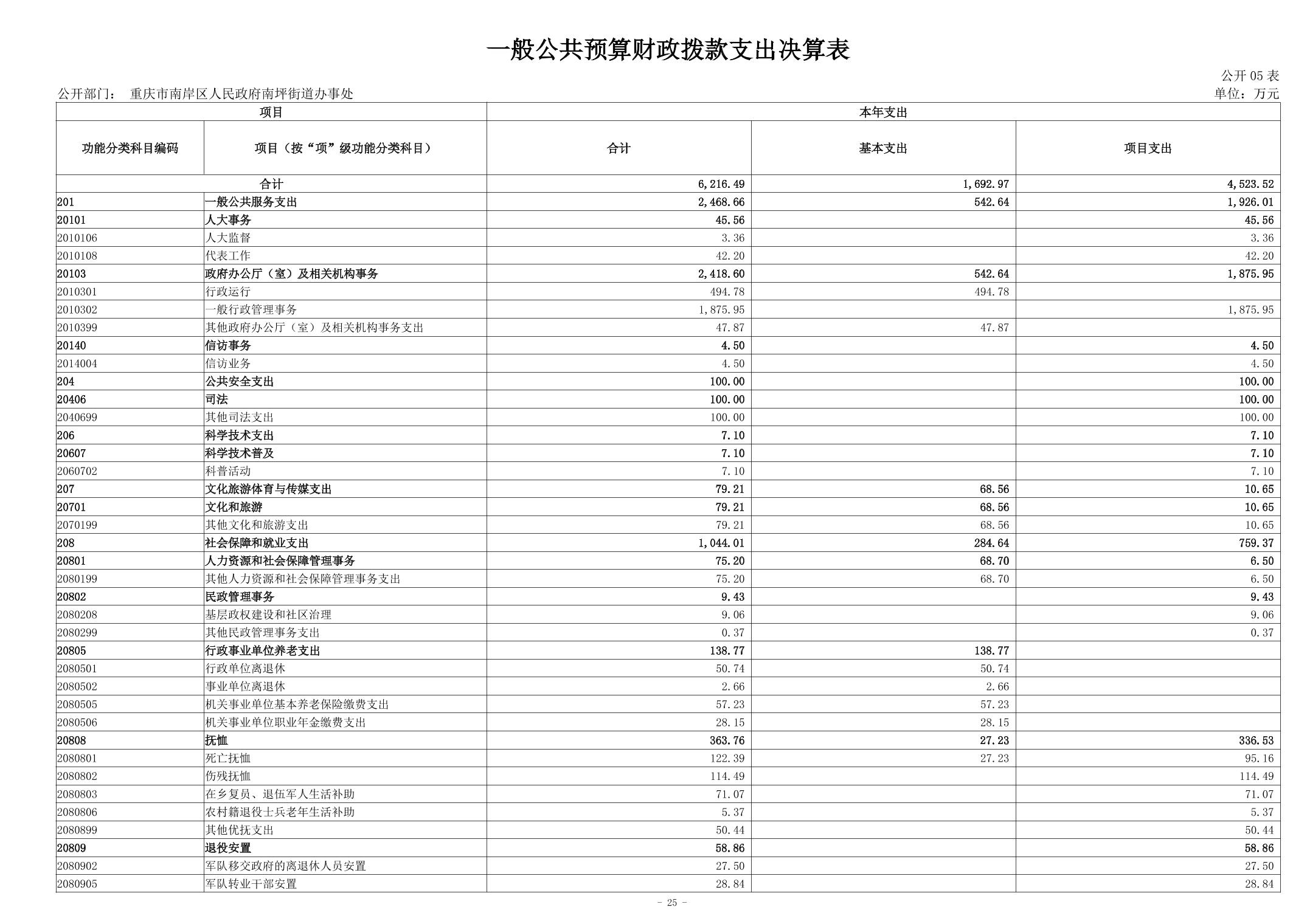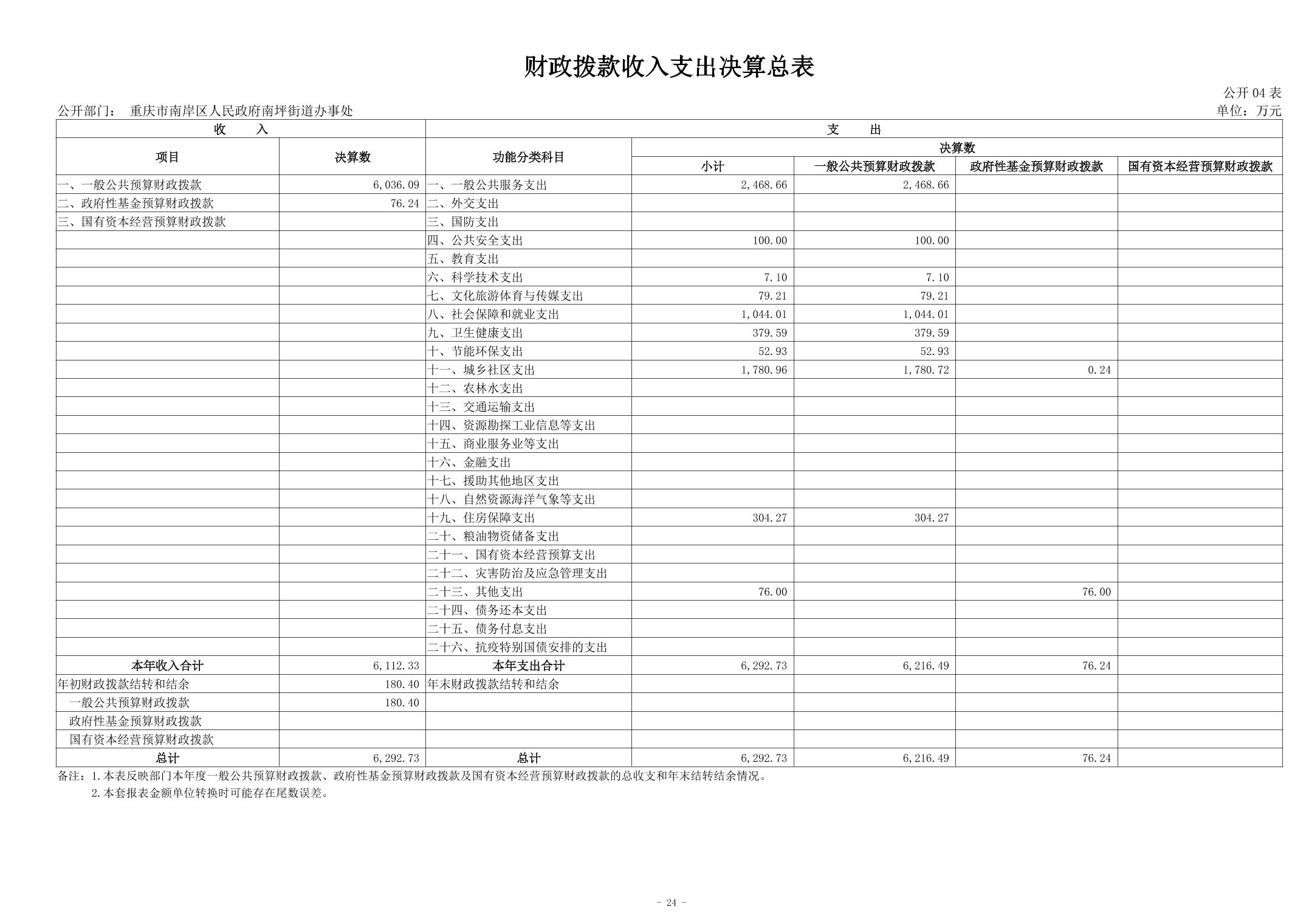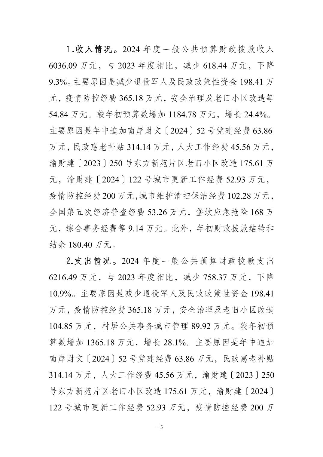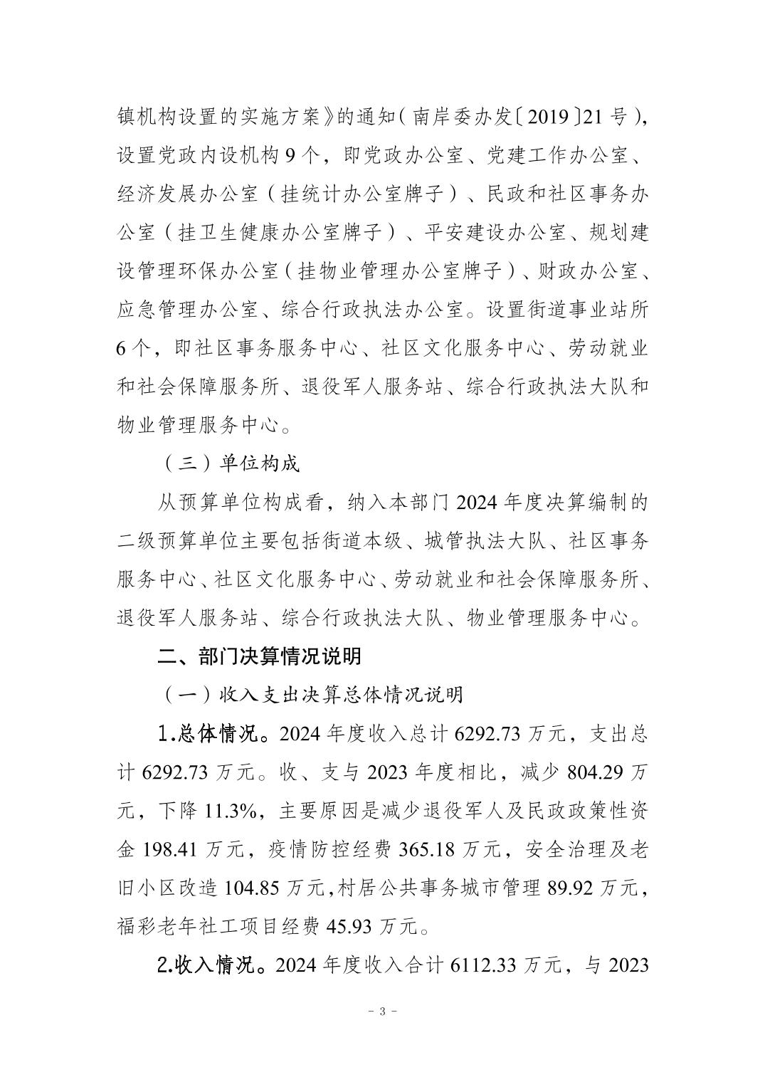 重庆市南岸区人民政府南坪街道办事处2024年度决算公开说明
