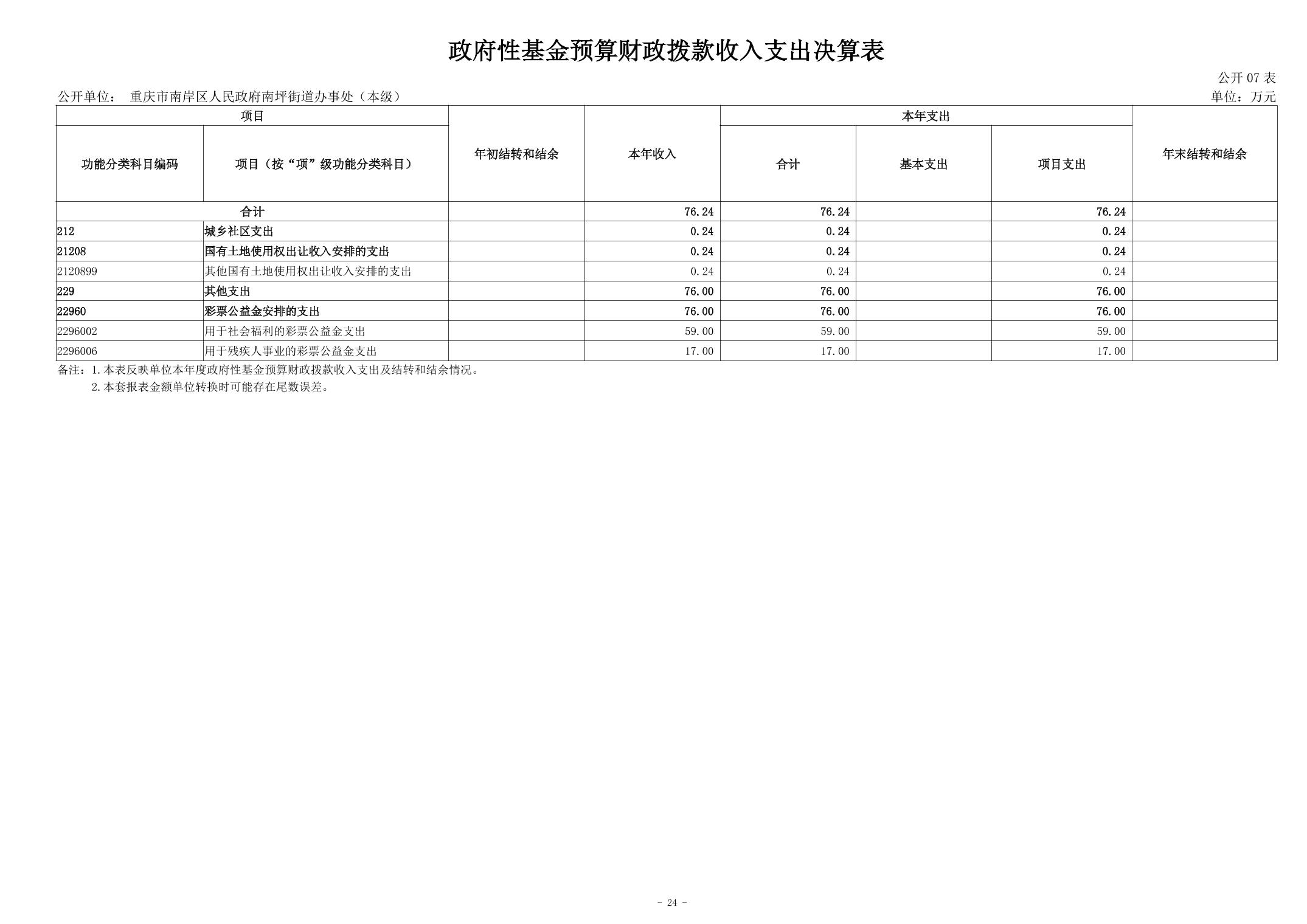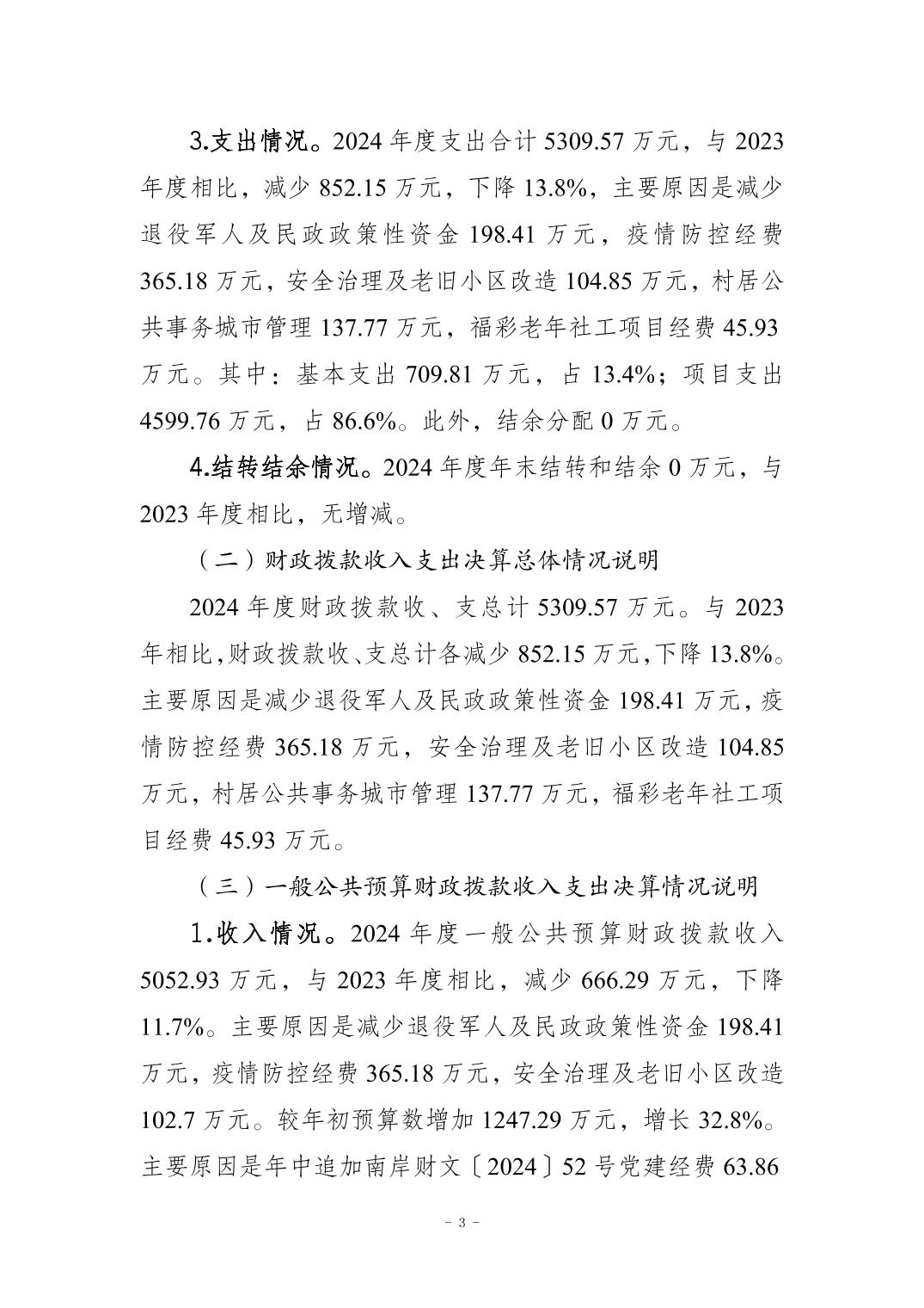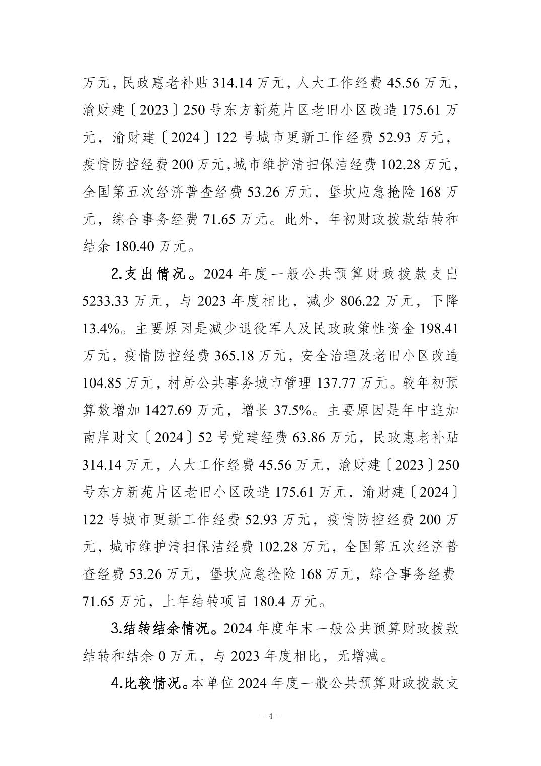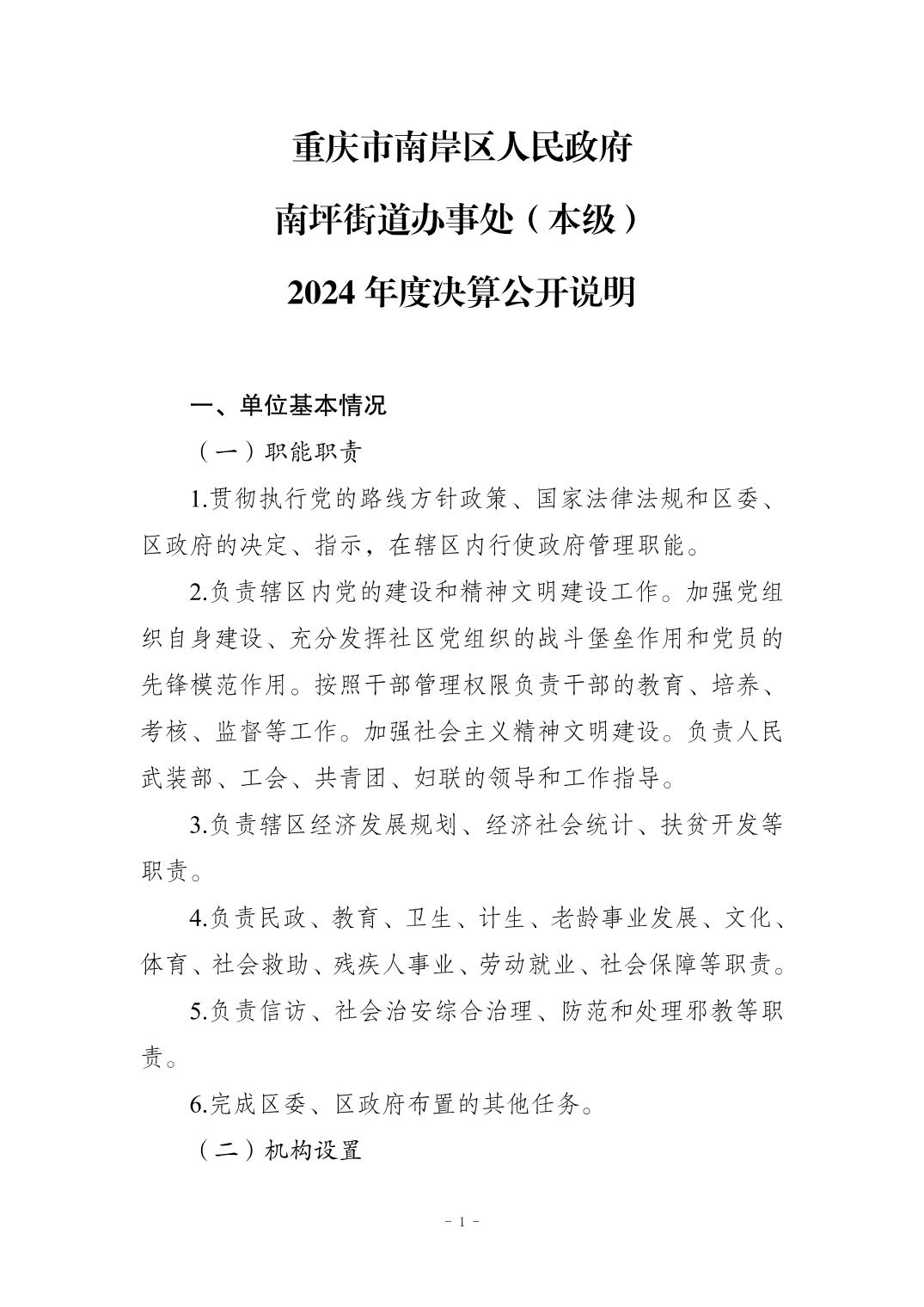 重庆市南岸区人民政府南坪街道办事处(本级)2024年度决算公开说明