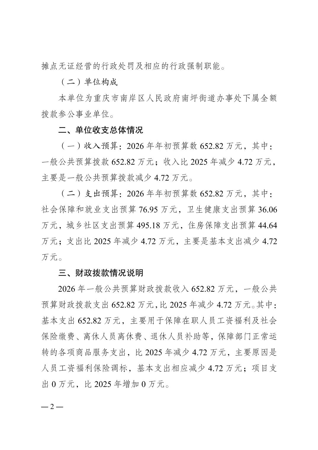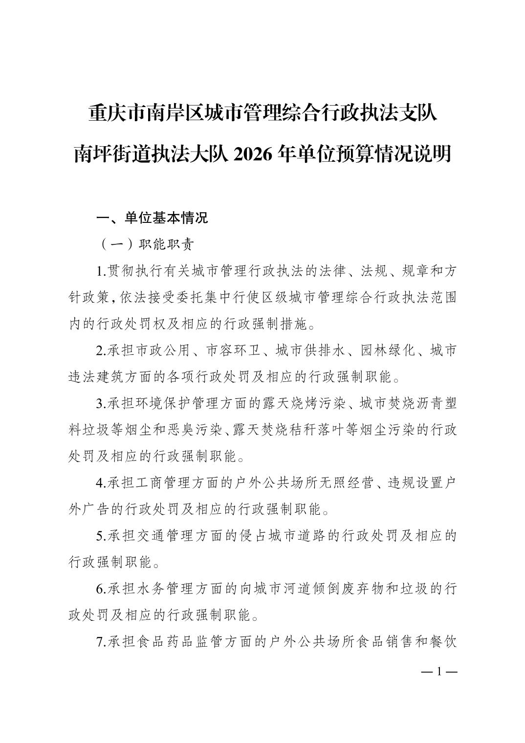 重庆市南岸区城市管理综合行政执法支队南坪街道执法大队2026年单位预算情况说明