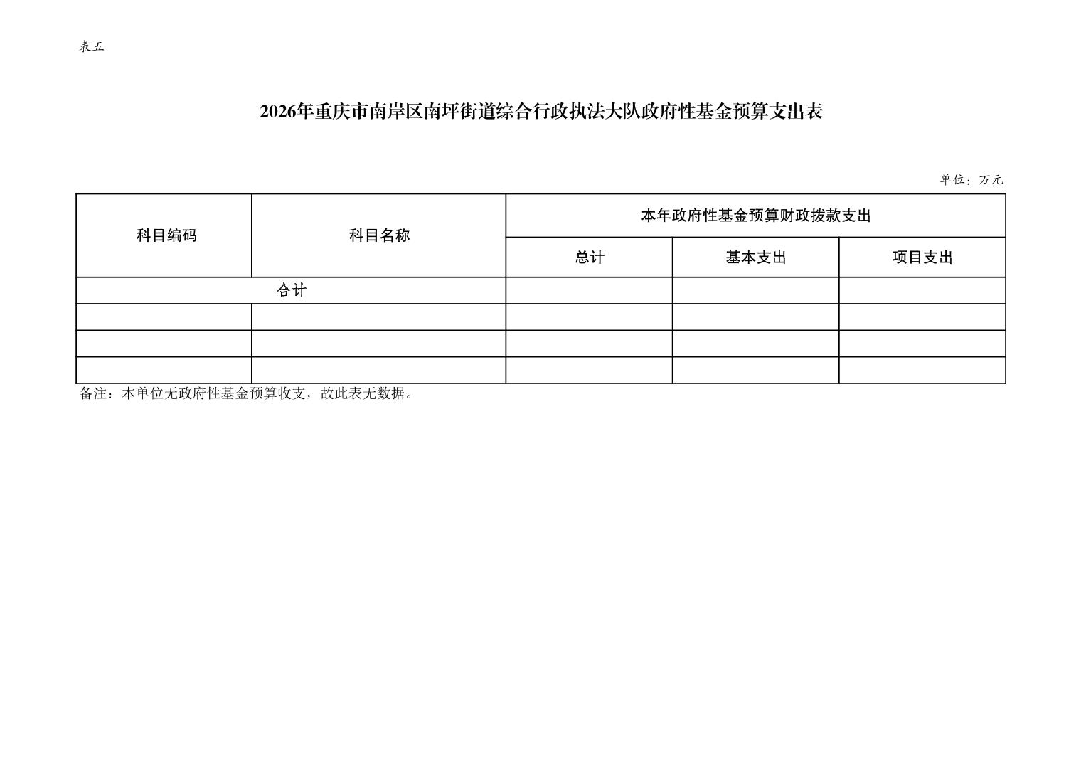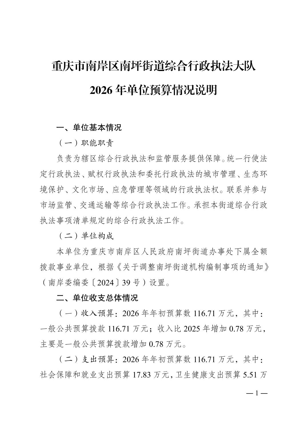 重庆市南岸区南坪街道综合行政执法大队2026年单位预算情况说明
