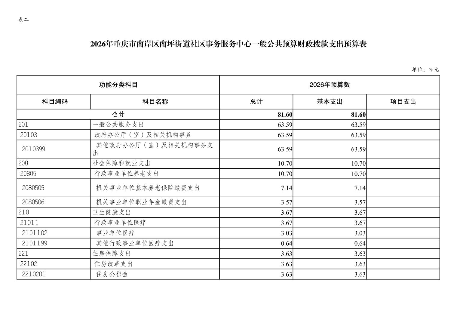 重庆市南岸区南坪街道社区事务服务中心2026年单位预算情况说明