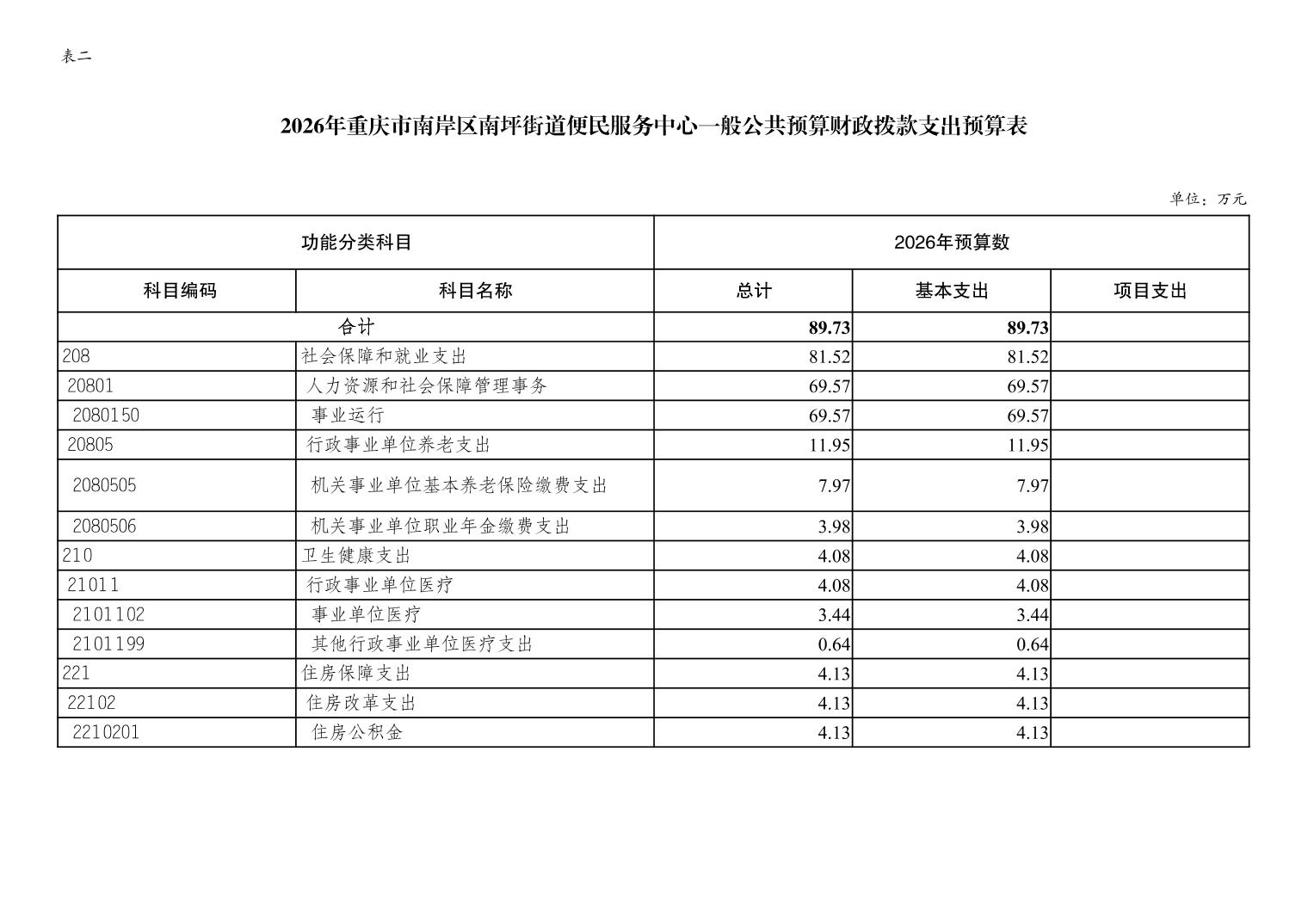 重庆市南岸区南坪街道便民服务中心2026年单位预算情况说明