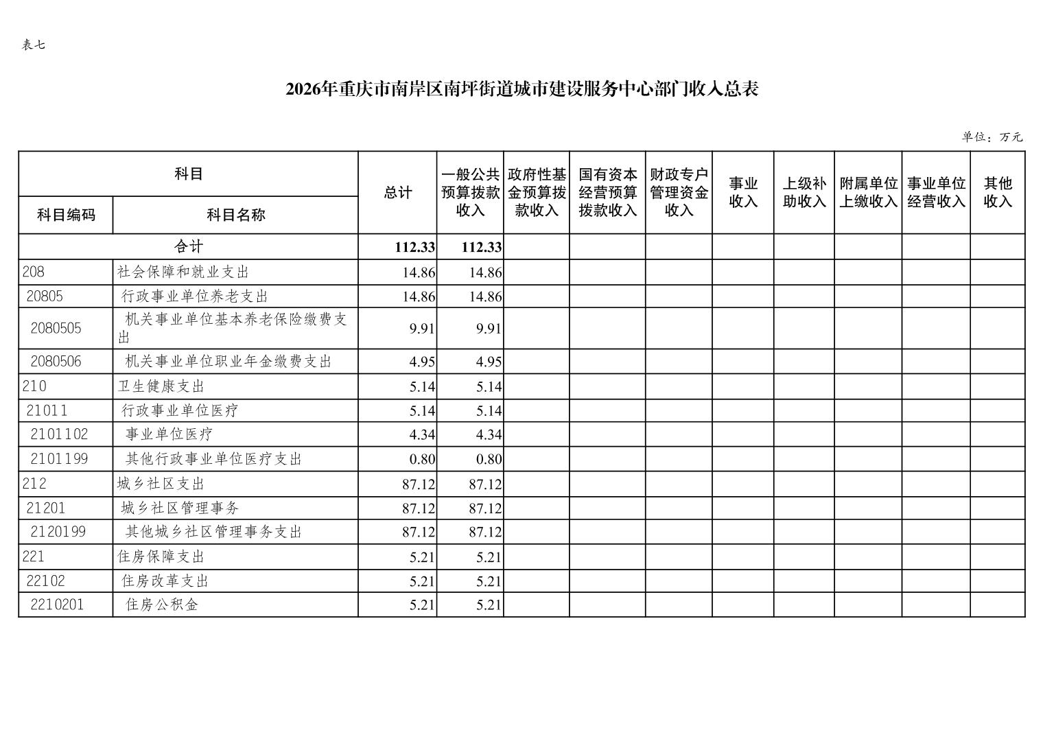 重庆市南岸区南坪街道城市建设服务中心2026年单位预算情况说明
