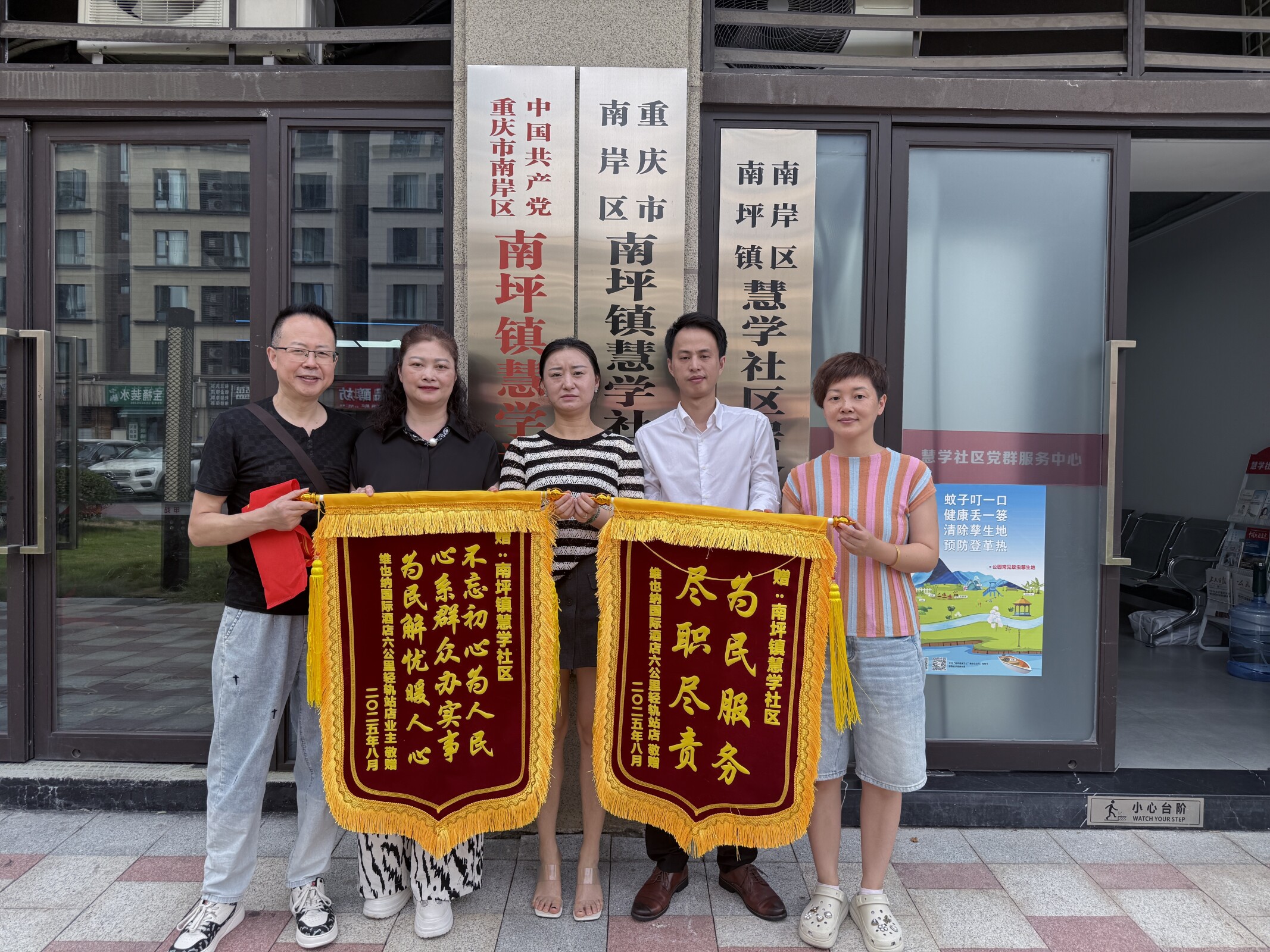 9月1日,维也纳国际酒店六公里轻轨站店与业主代表来到慧学社区,分别向社区送来了锦旗,表达了对慧学社区在协调双方矛盾的工作中所作出的努力和奉献。