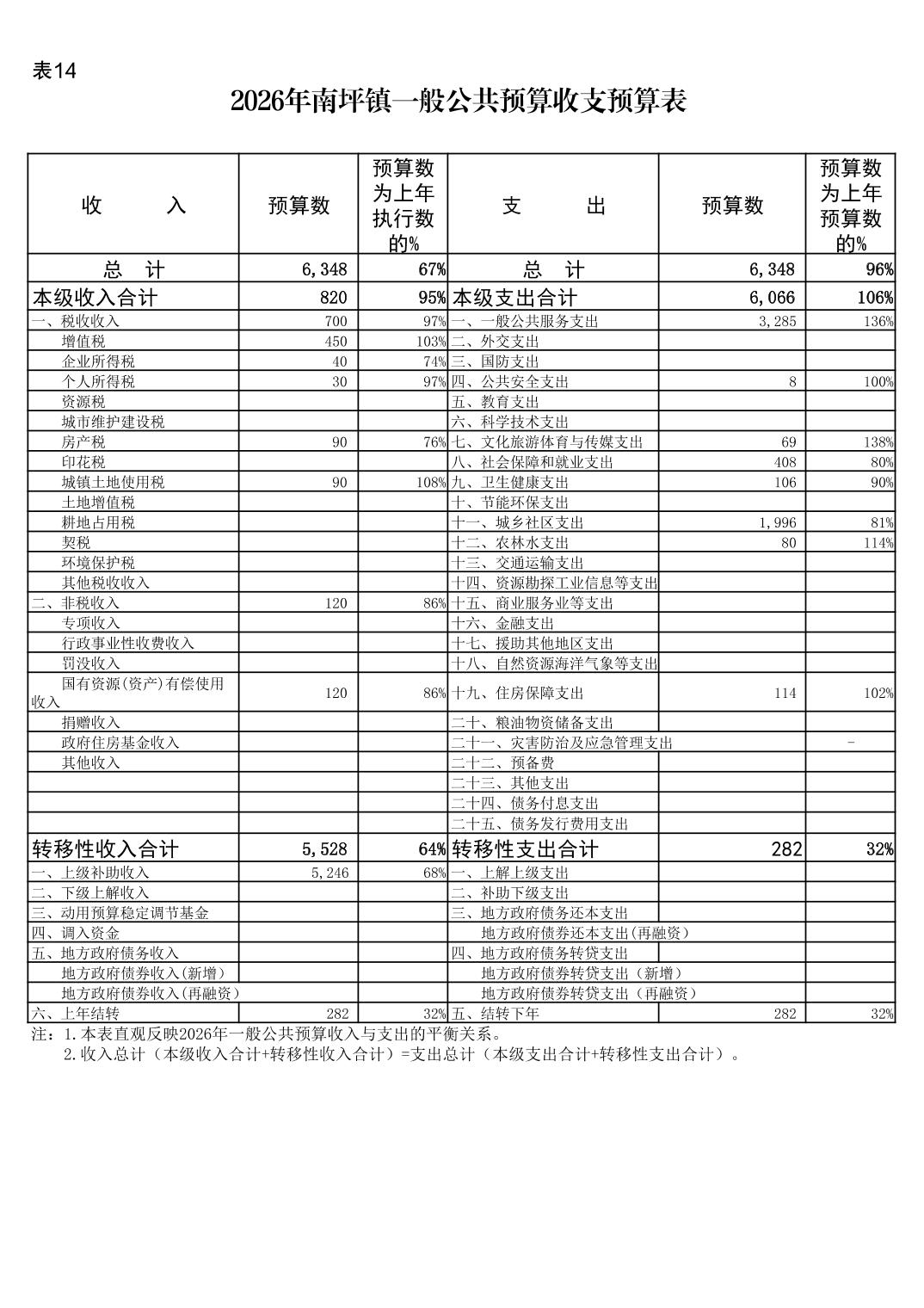 重庆市南岸区南坪镇2025年财政预算执行情况和2026年财政预算(草案)的报告