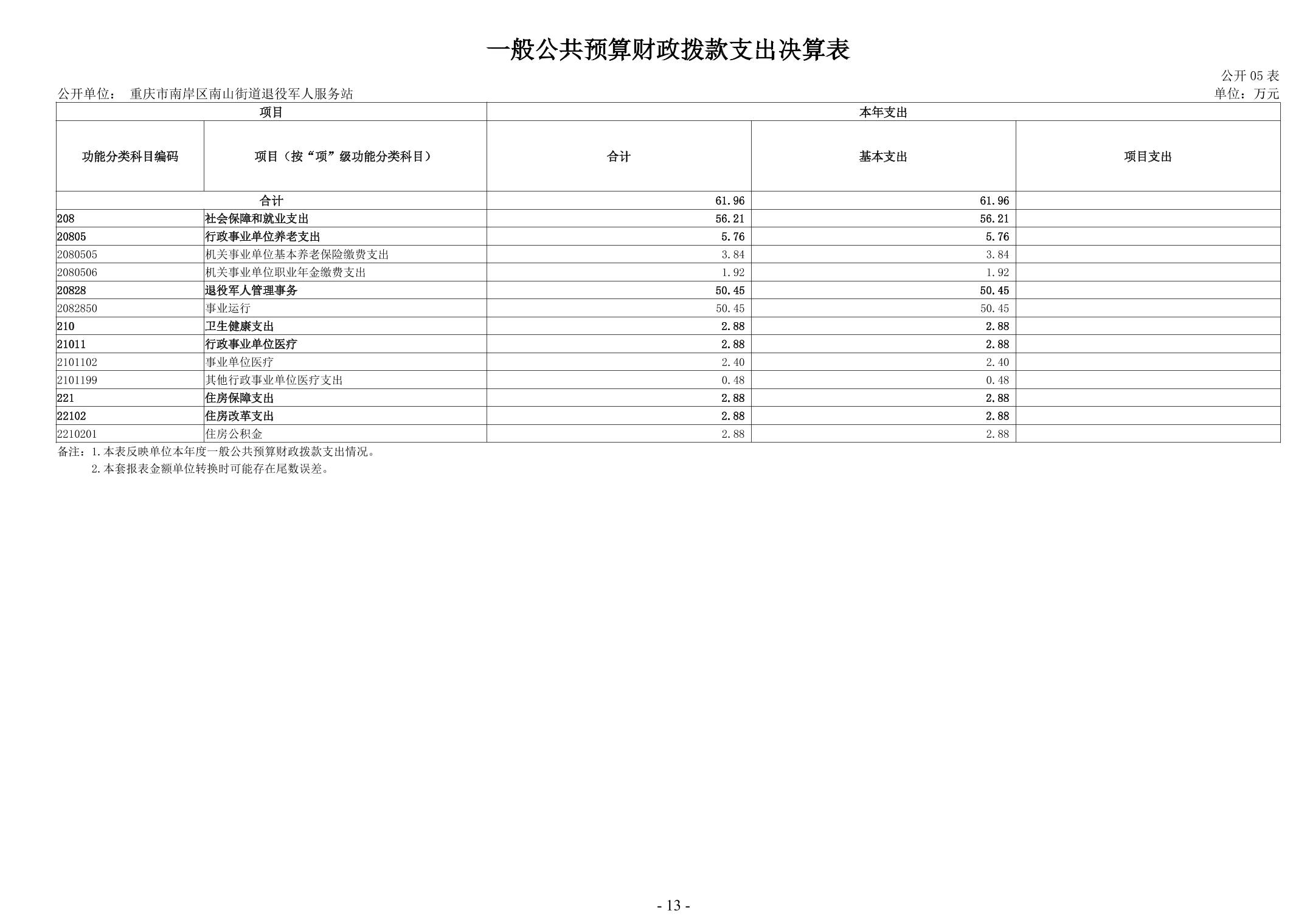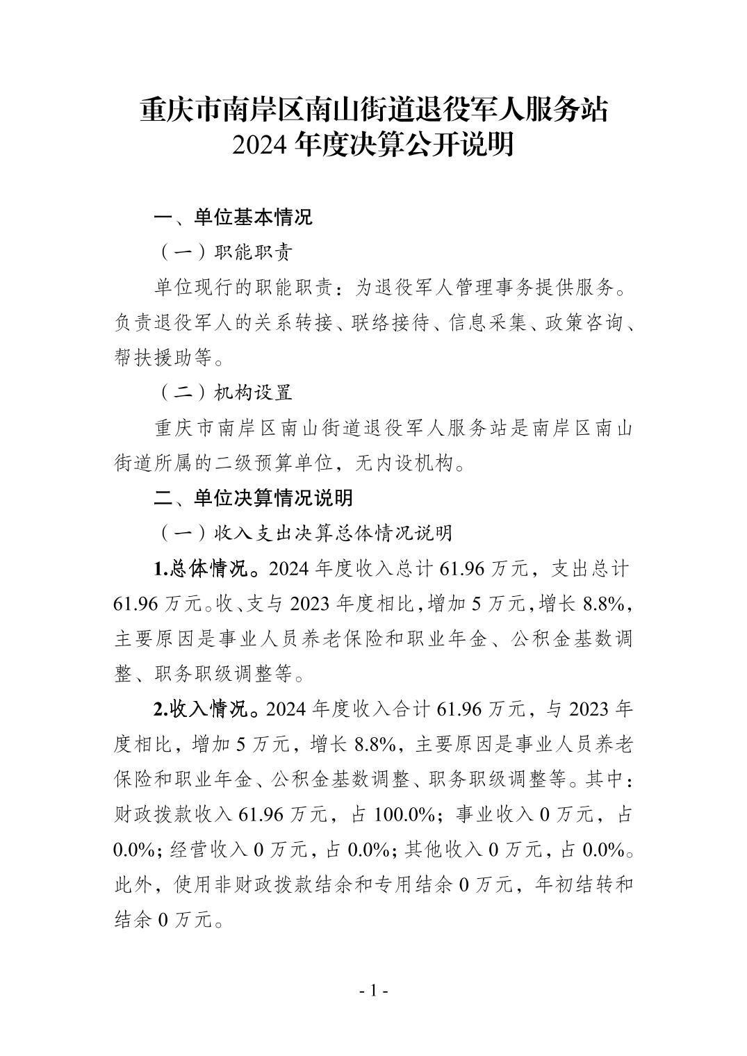 重庆市南岸区南山街道退役军人服务站2024年度决算公开说明