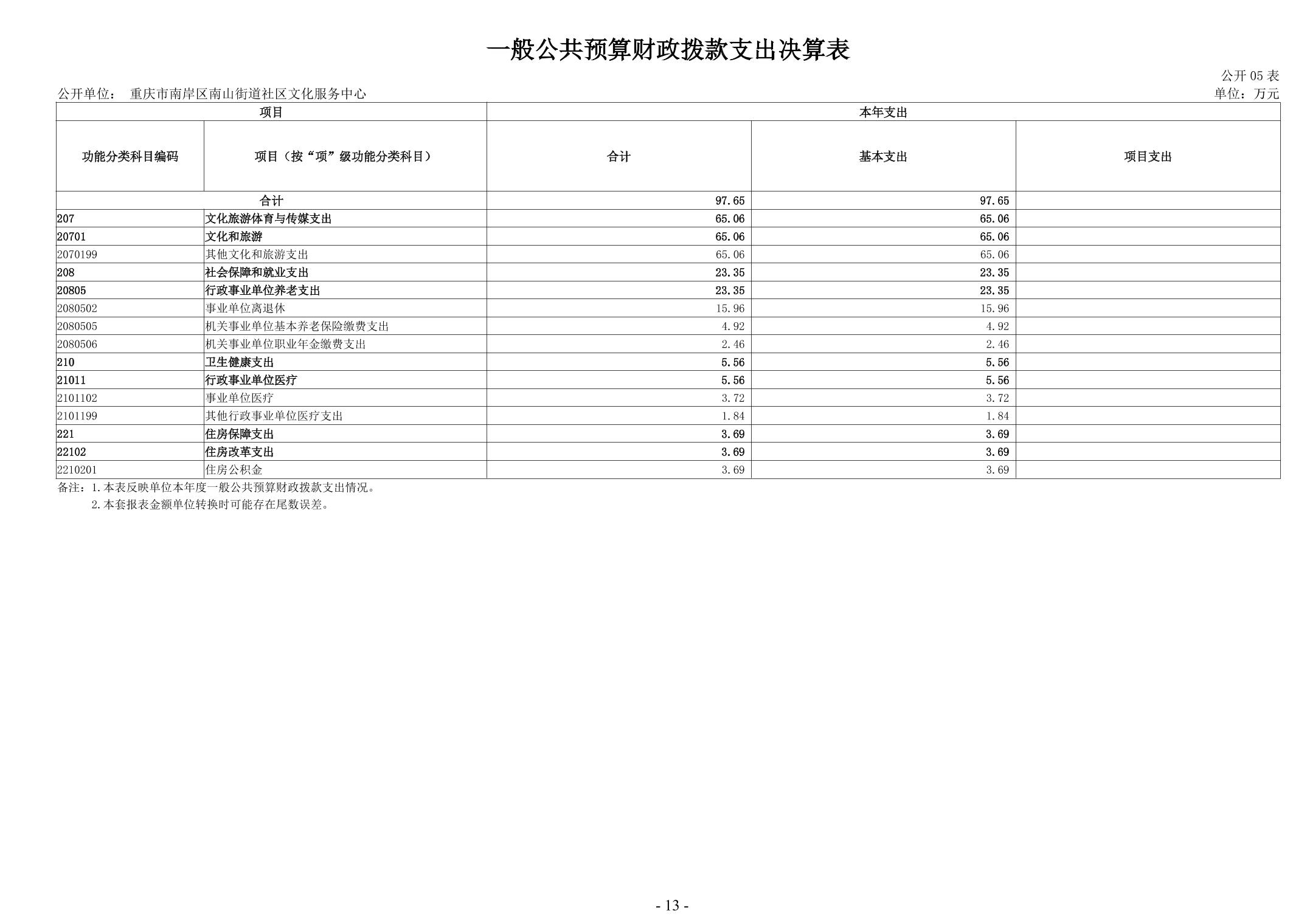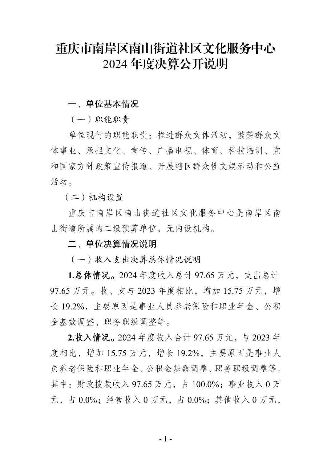 重庆市南岸区南山街道社区文化服务中心2024年度决算公开说明