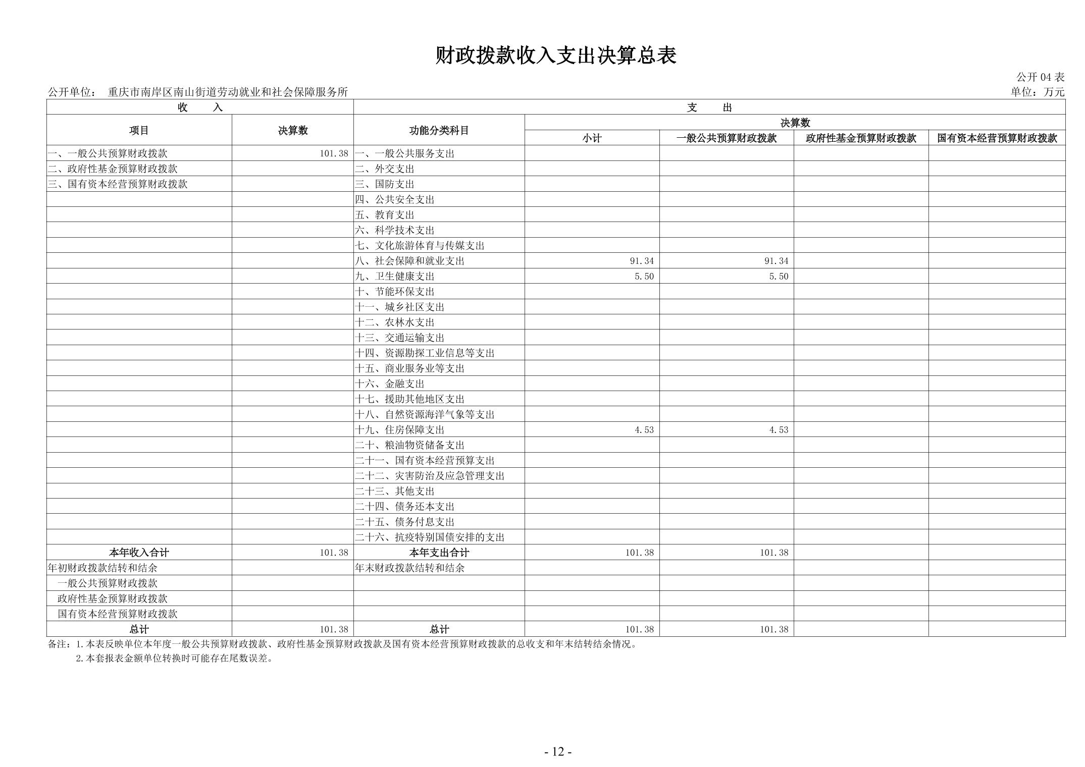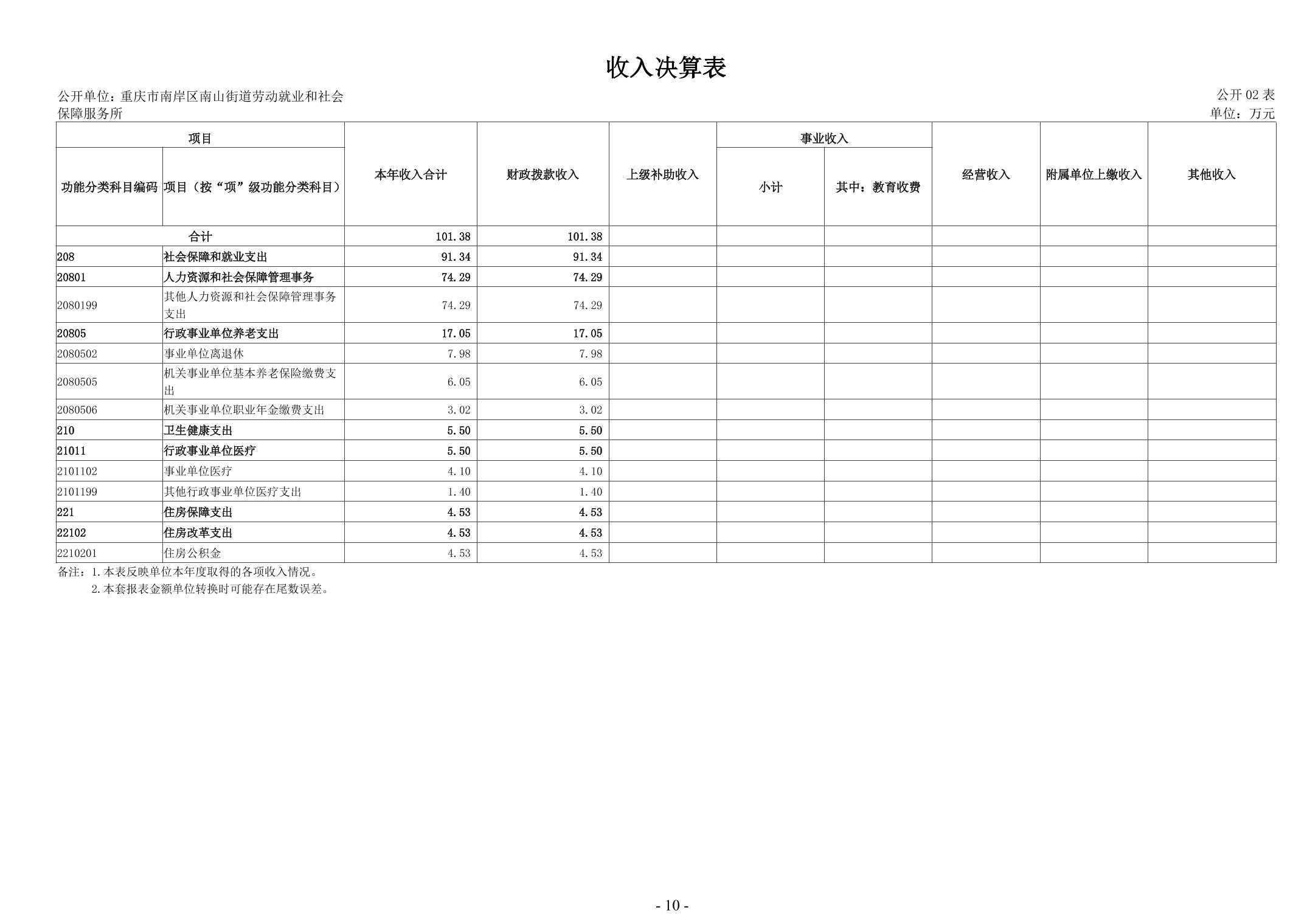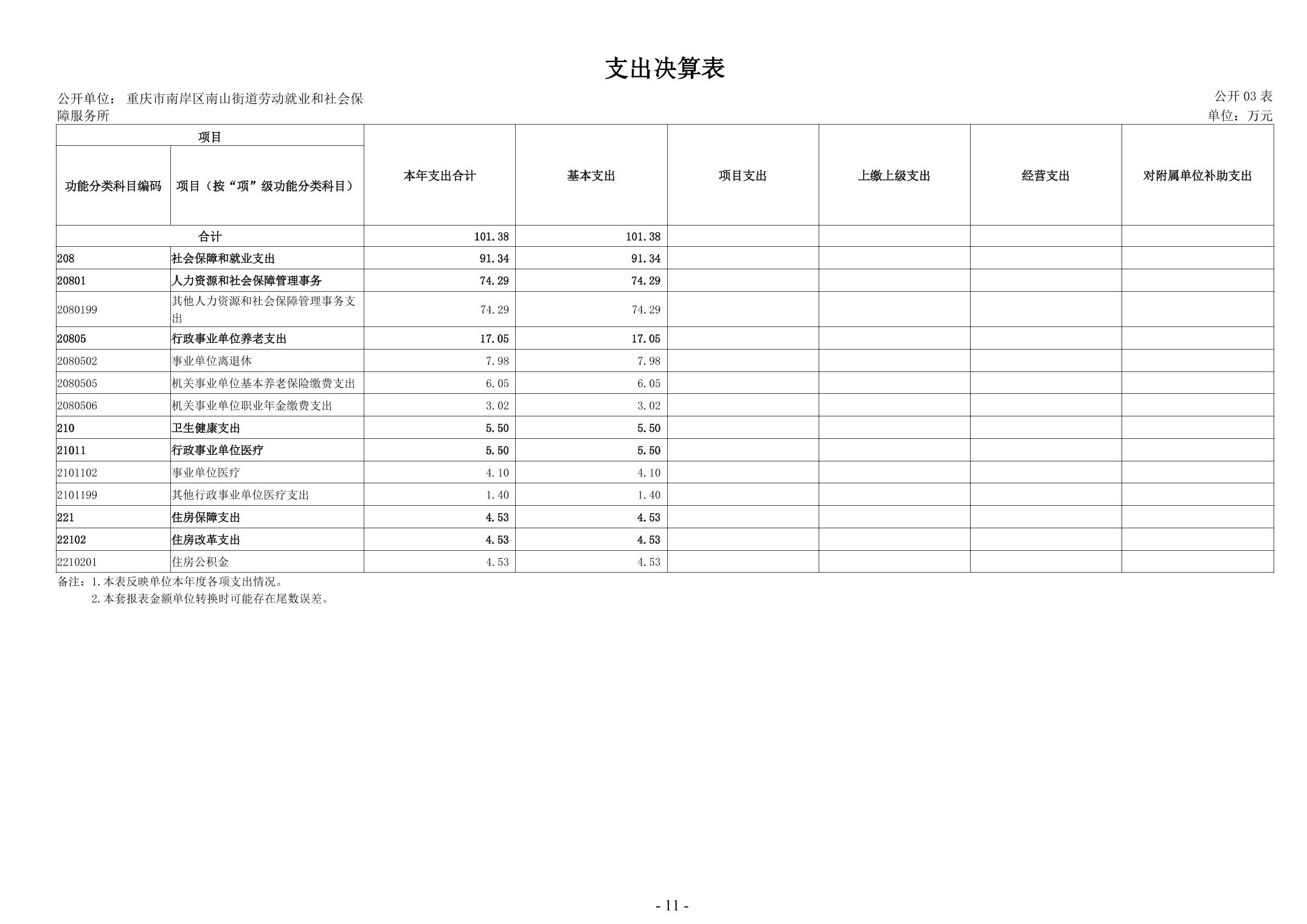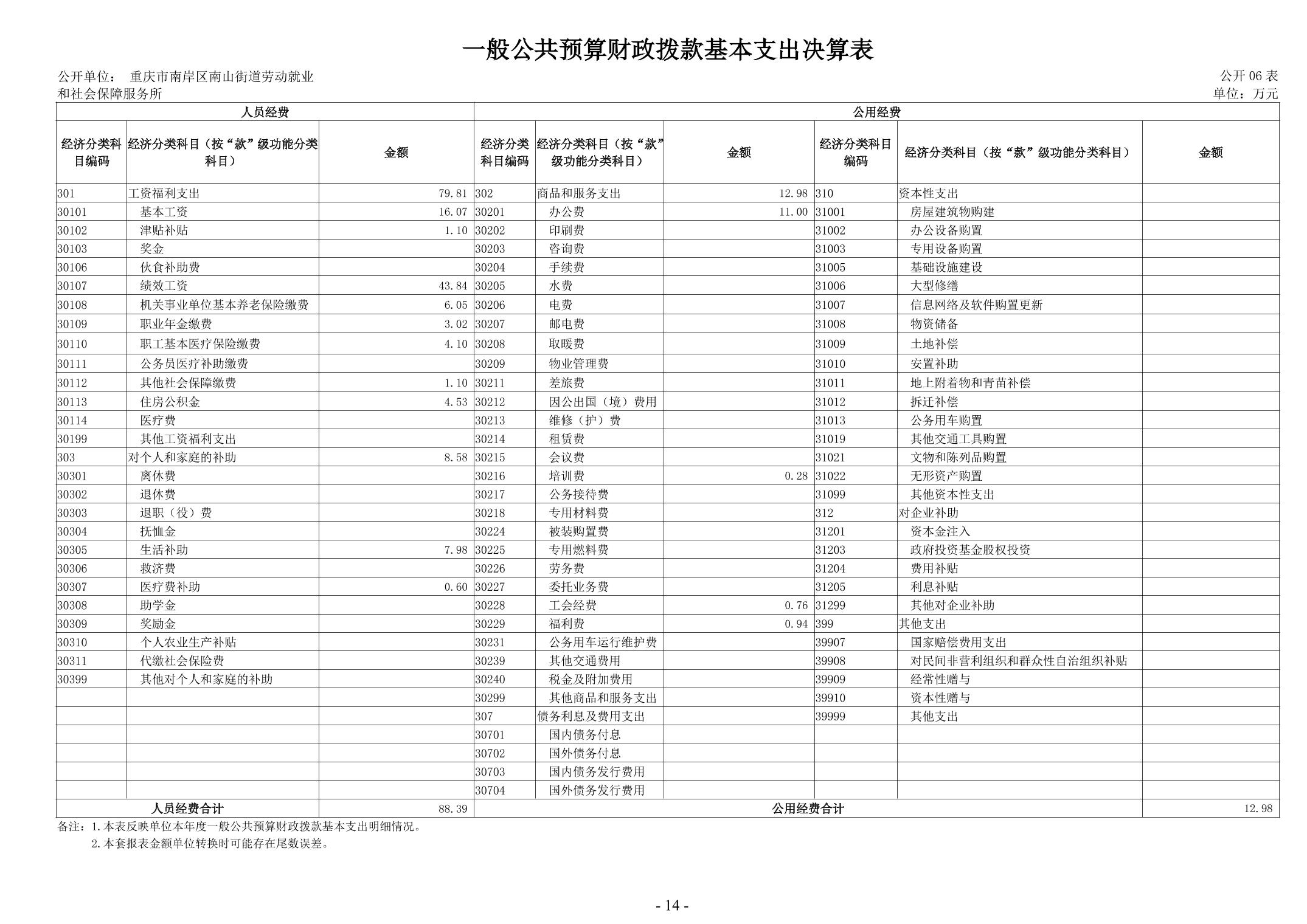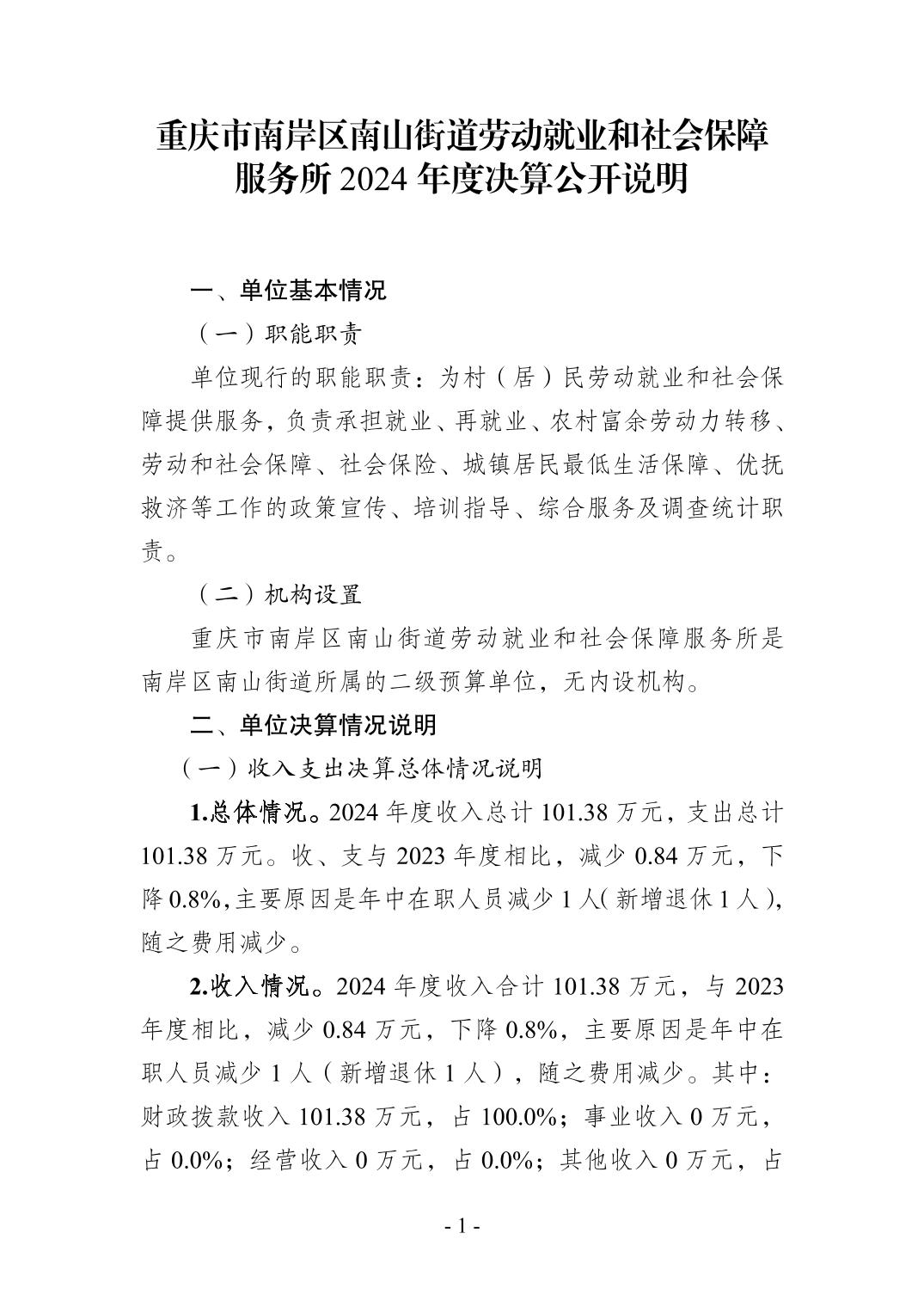 重庆市南岸区南山街道劳动就业和社会保障服务所2024年度决算公开说明