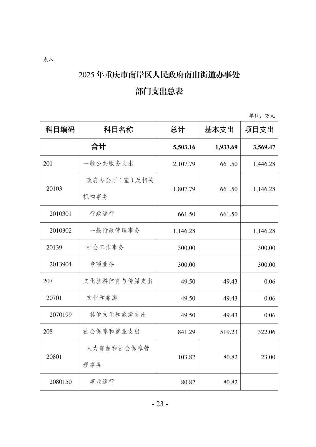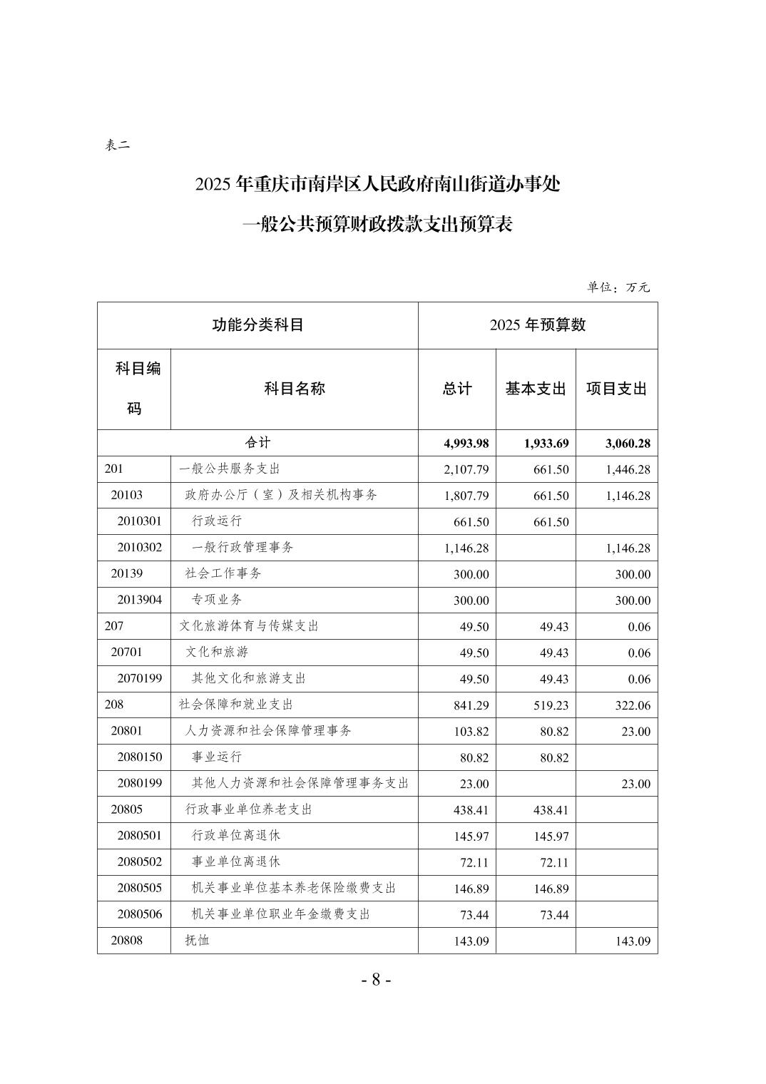 重庆市南岸区人民政府南山街道办事处2025年部门预算情况说明