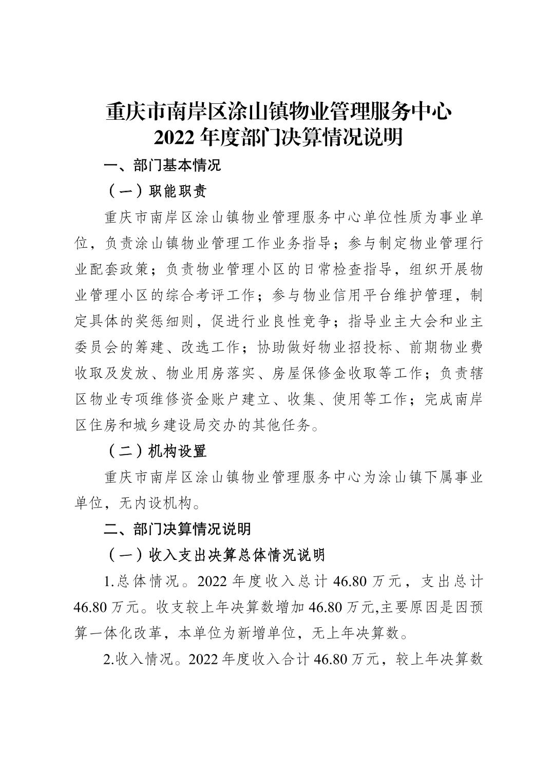 重庆市南岸区涂山镇物业管理服务中心2022年度部门决算情况说明