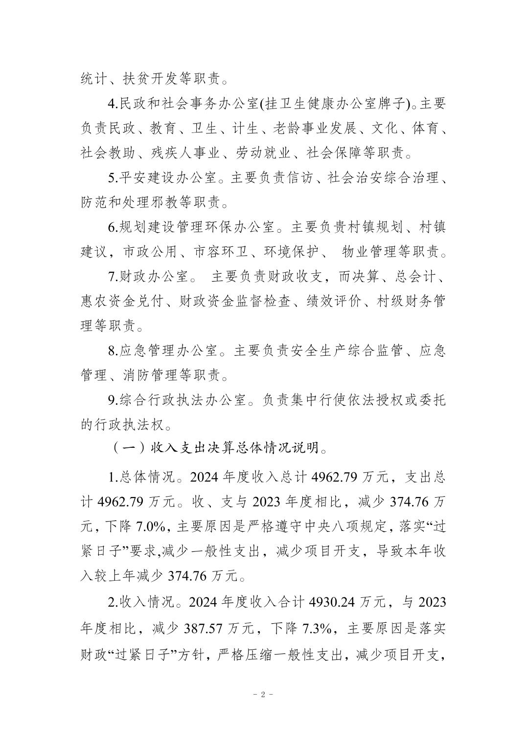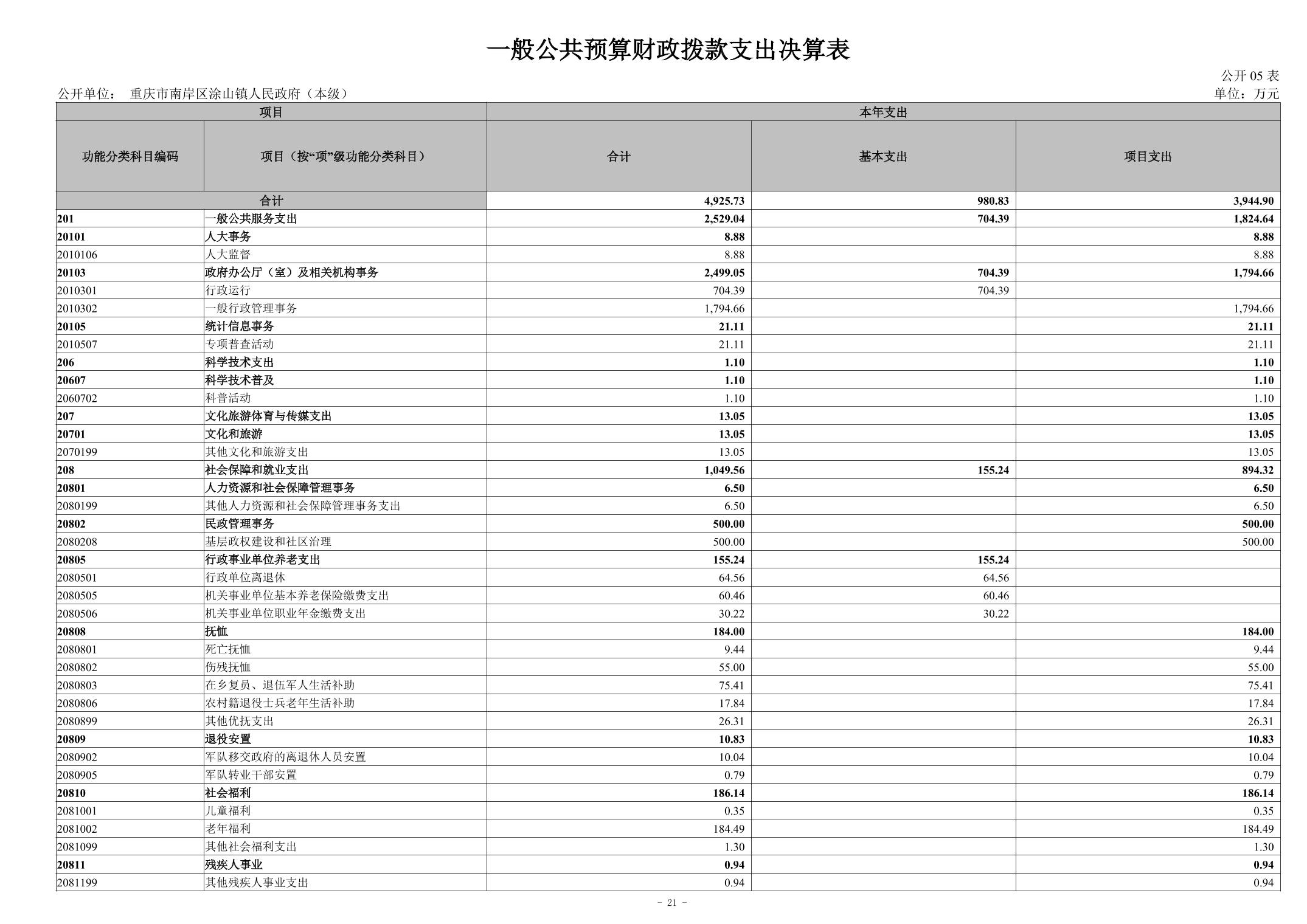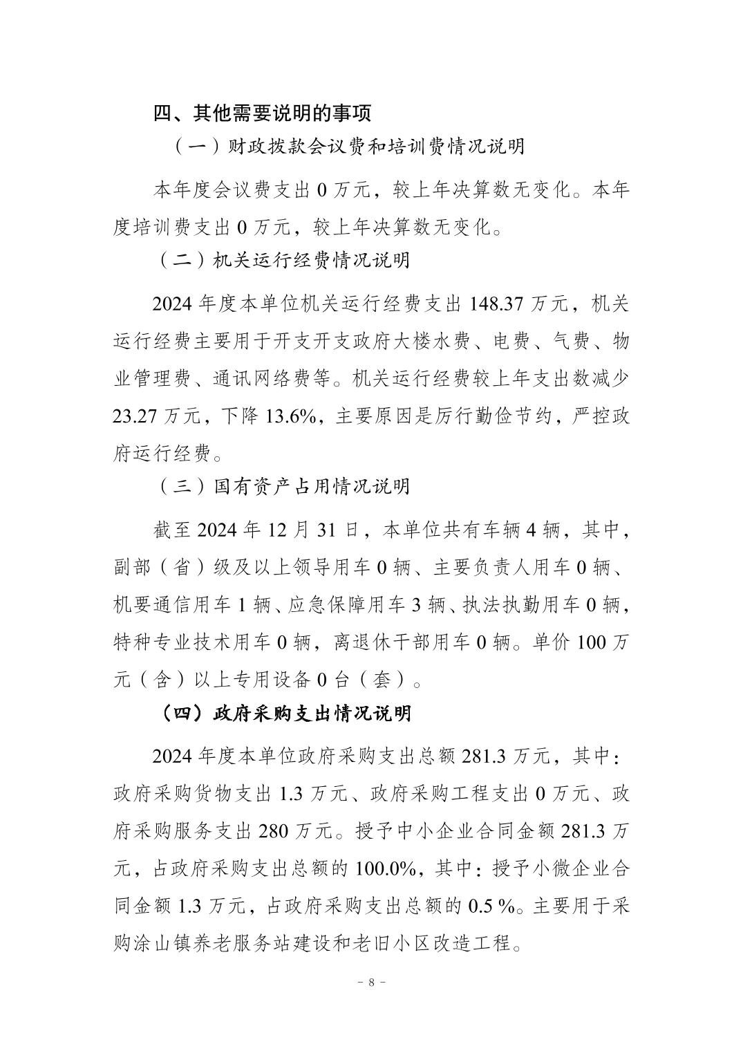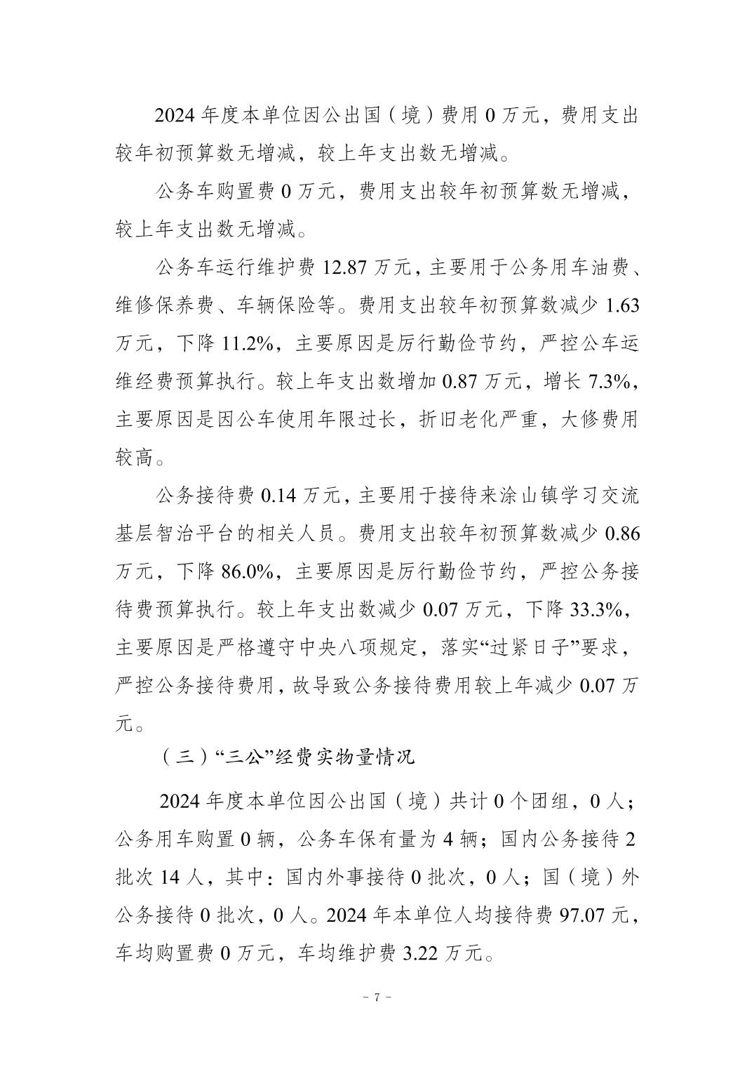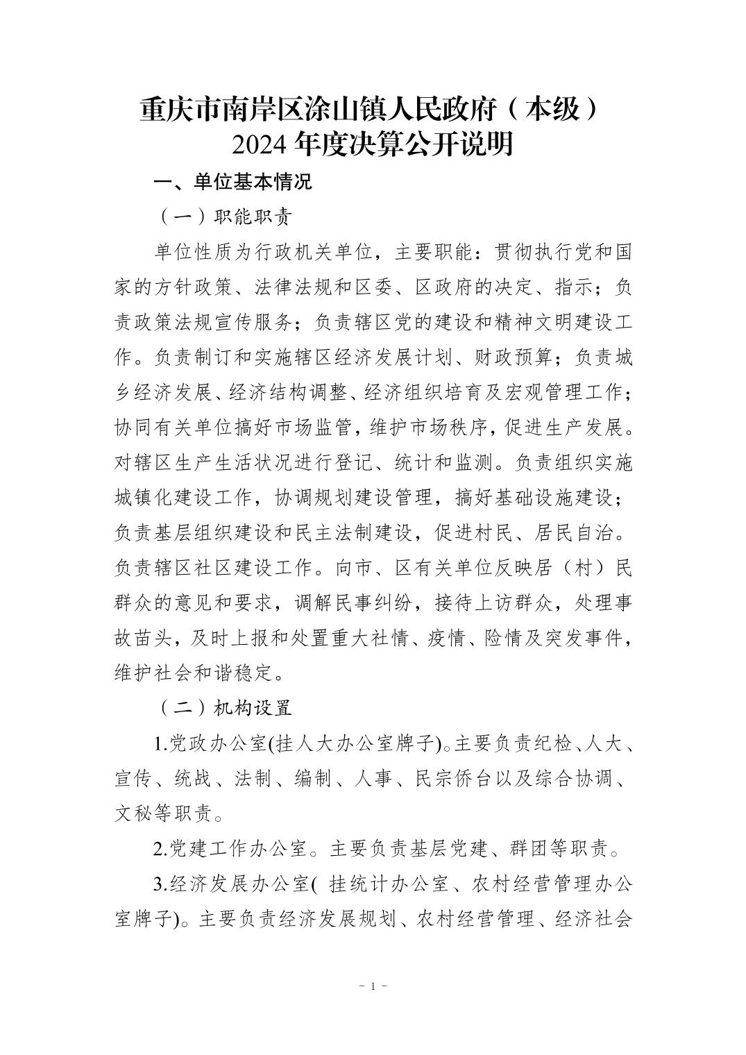 重庆市南岸区涂山镇人民政府(本级)2024年度决算公开说明