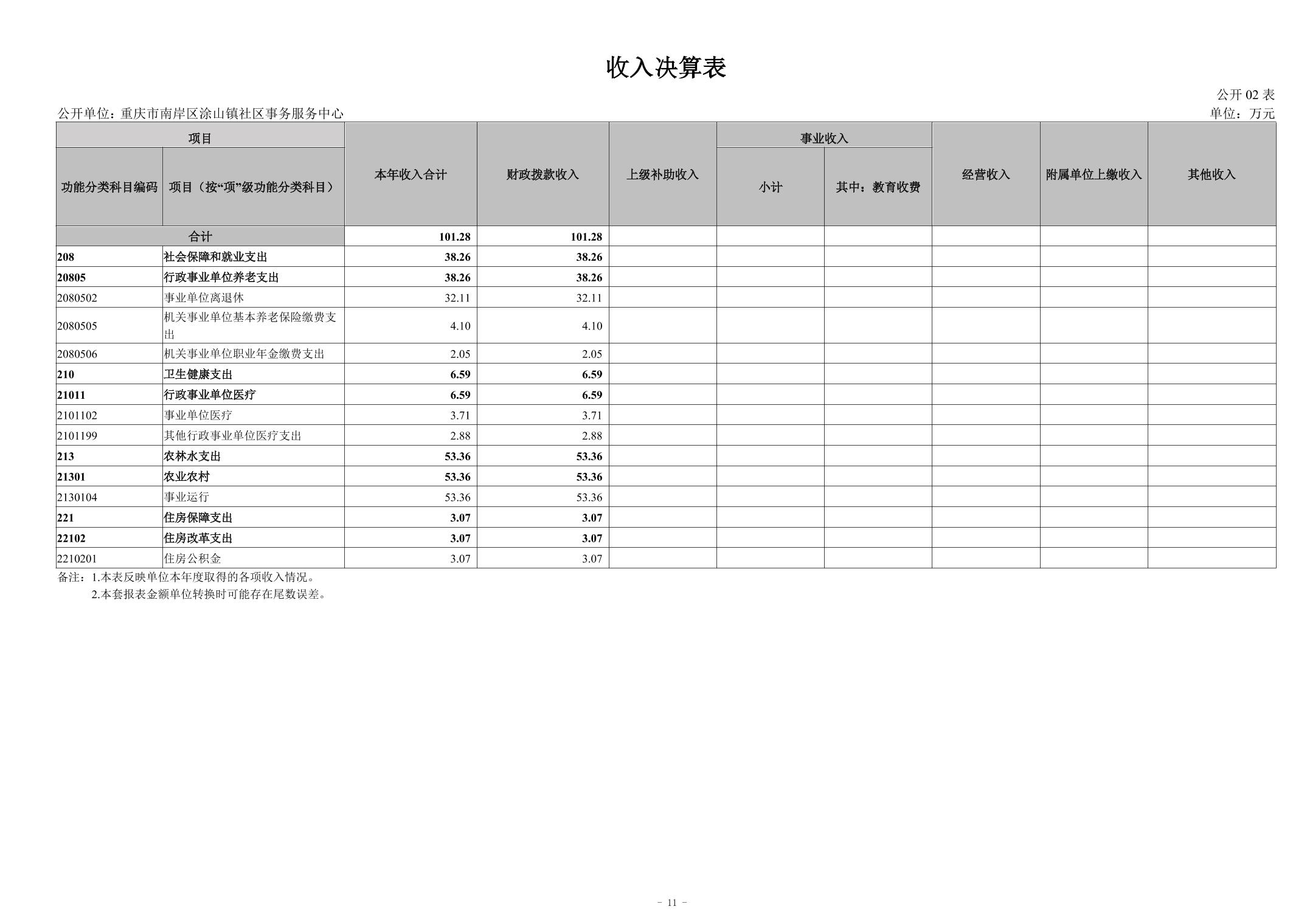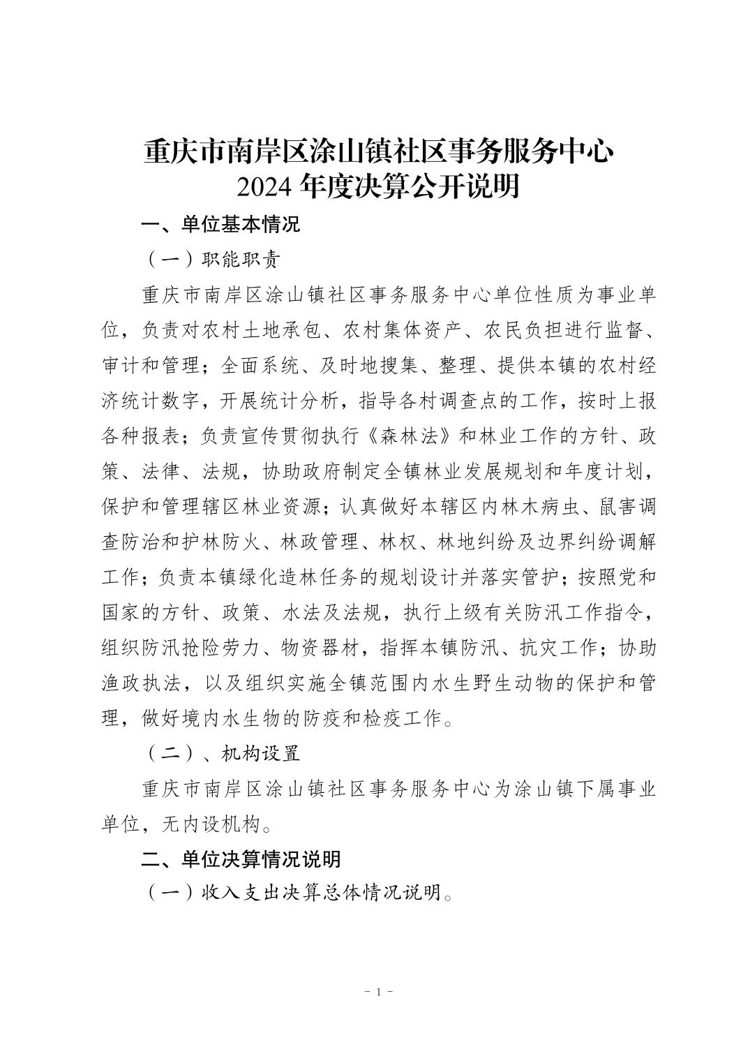 重庆市南岸区涂山镇社区事务服务中心2024 年度决算公开说明