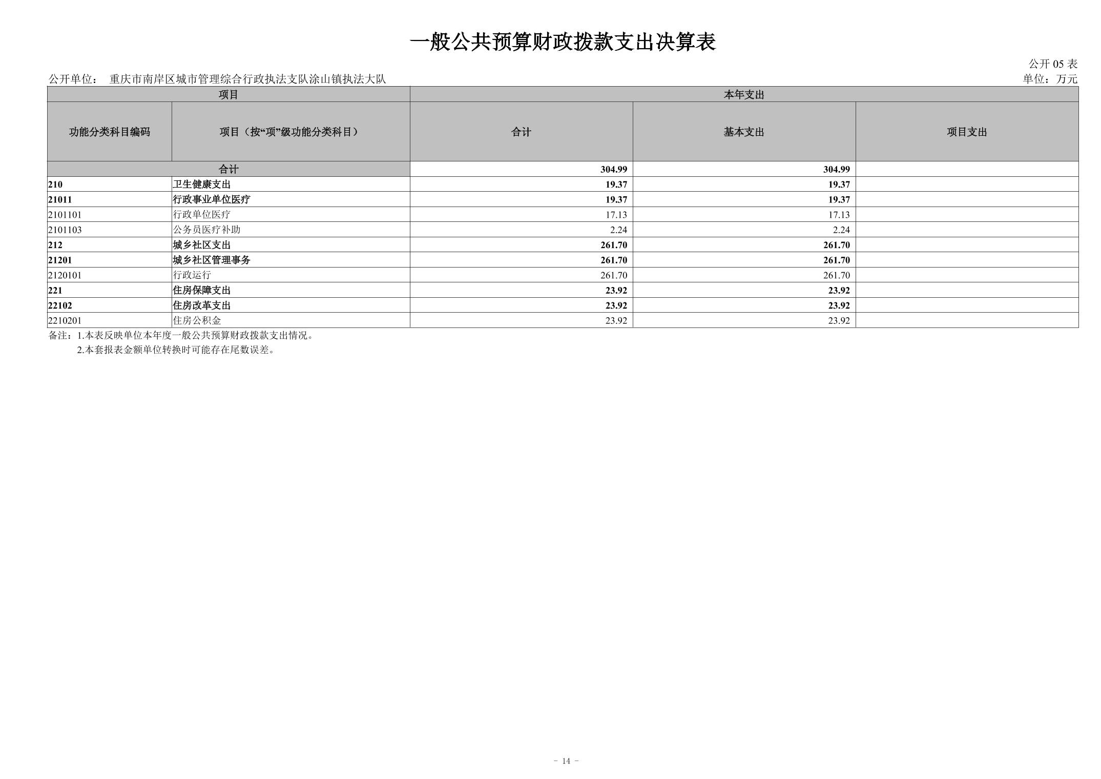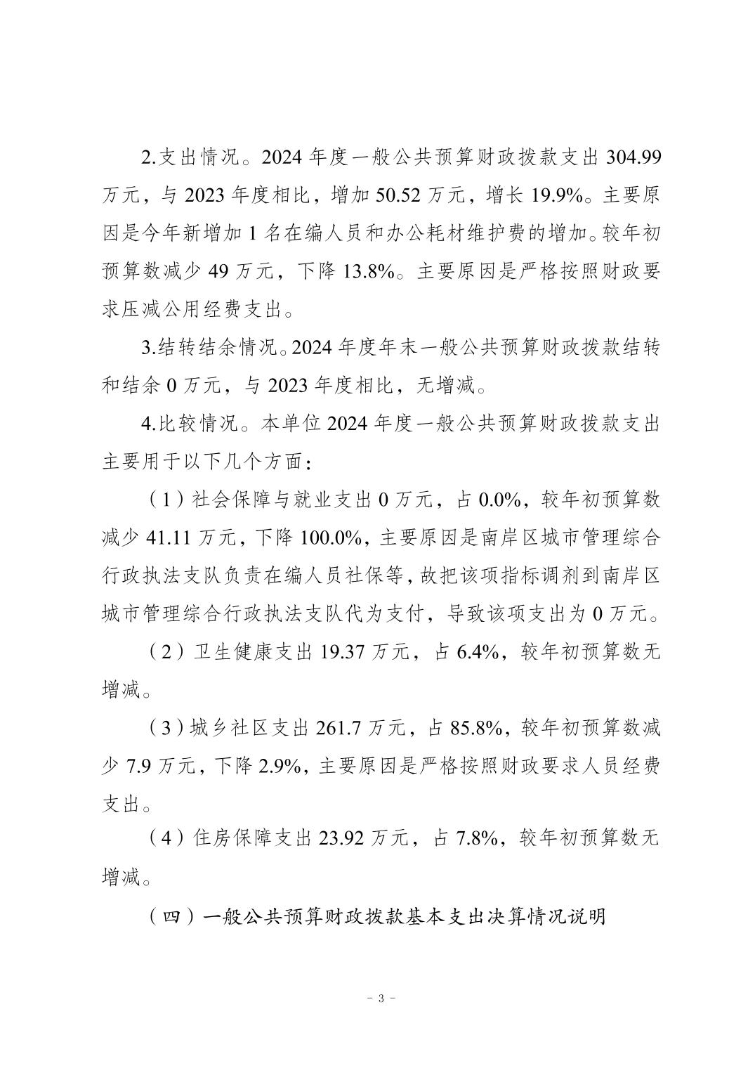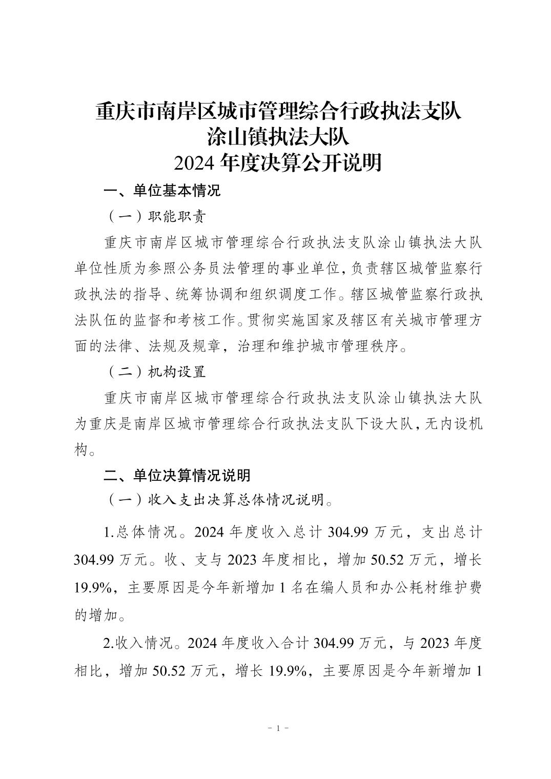 重庆市南岸区城市管理综合行政执法支队涂山镇执法大队2024 年度决算公开说明
