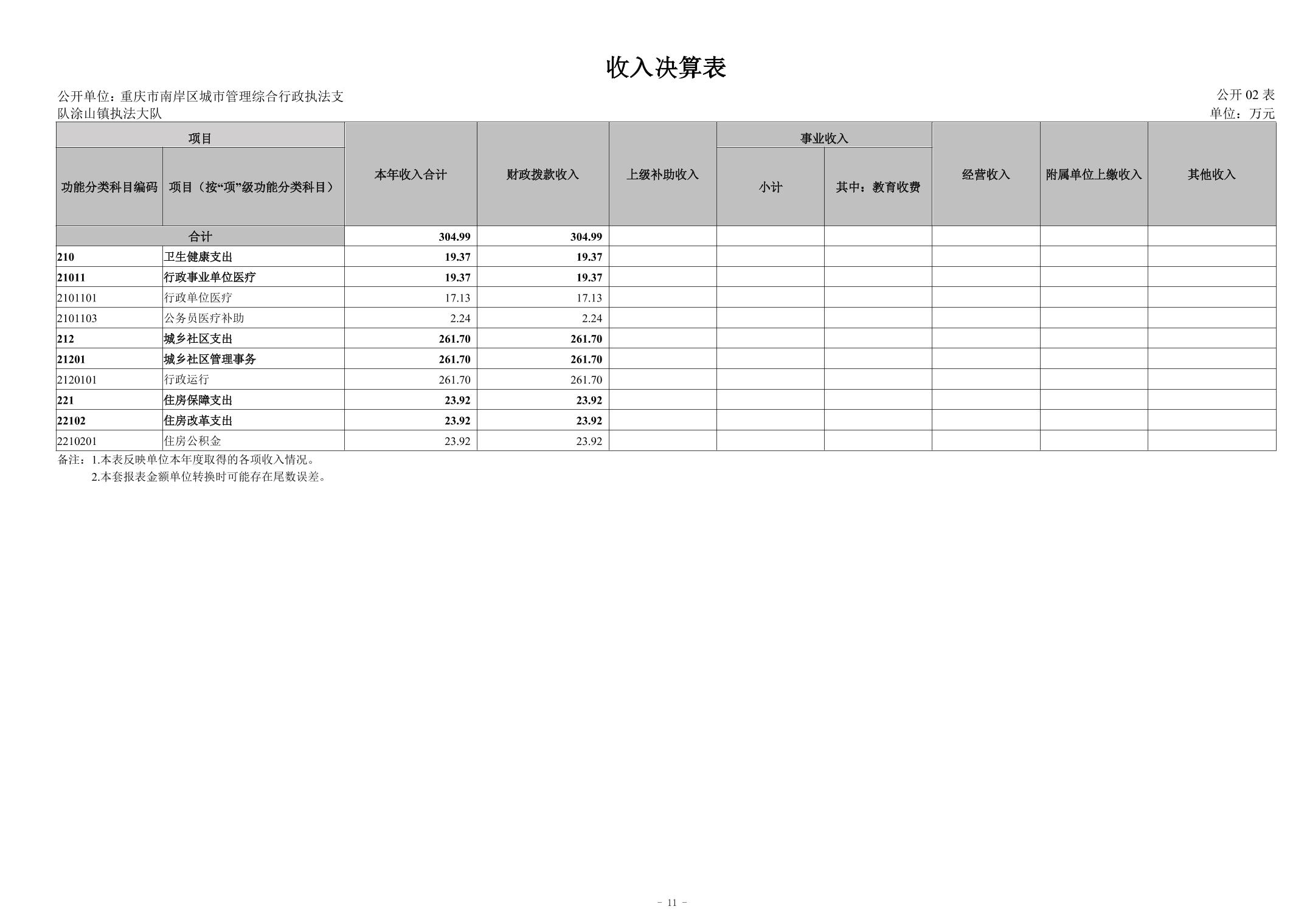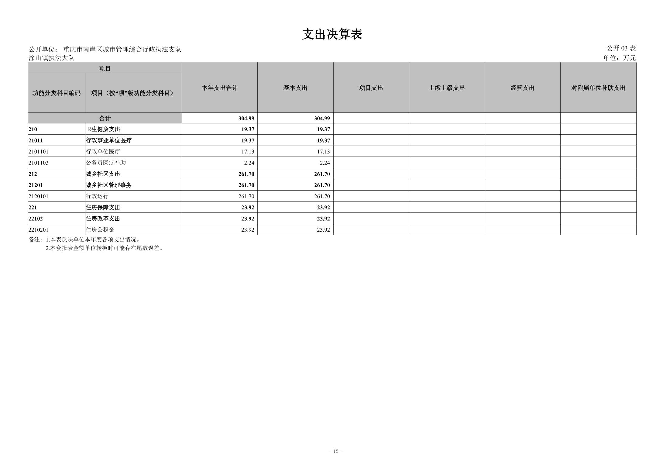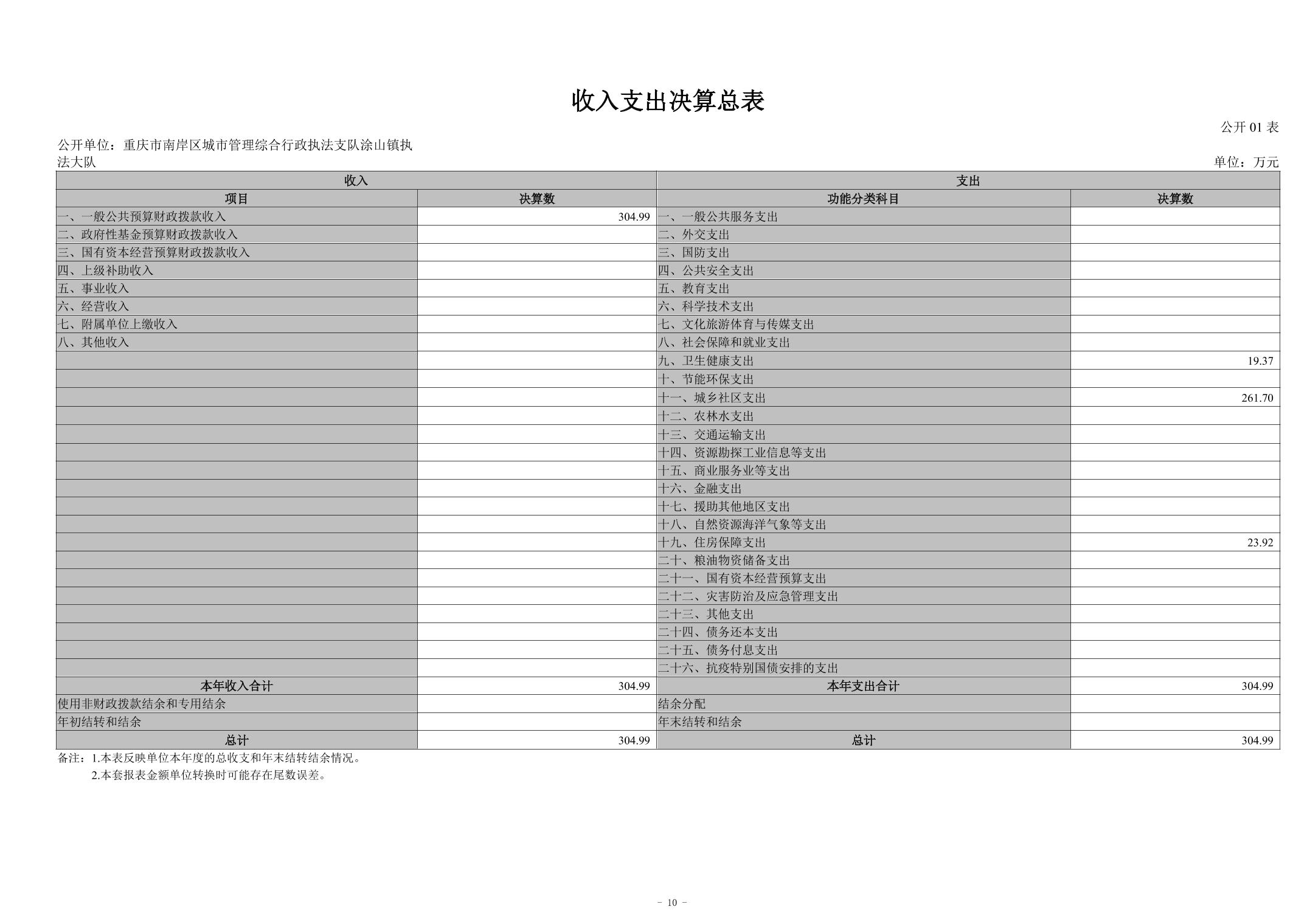 重庆市南岸区城市管理综合行政执法支队涂山镇执法大队2024 年度决算公开说明