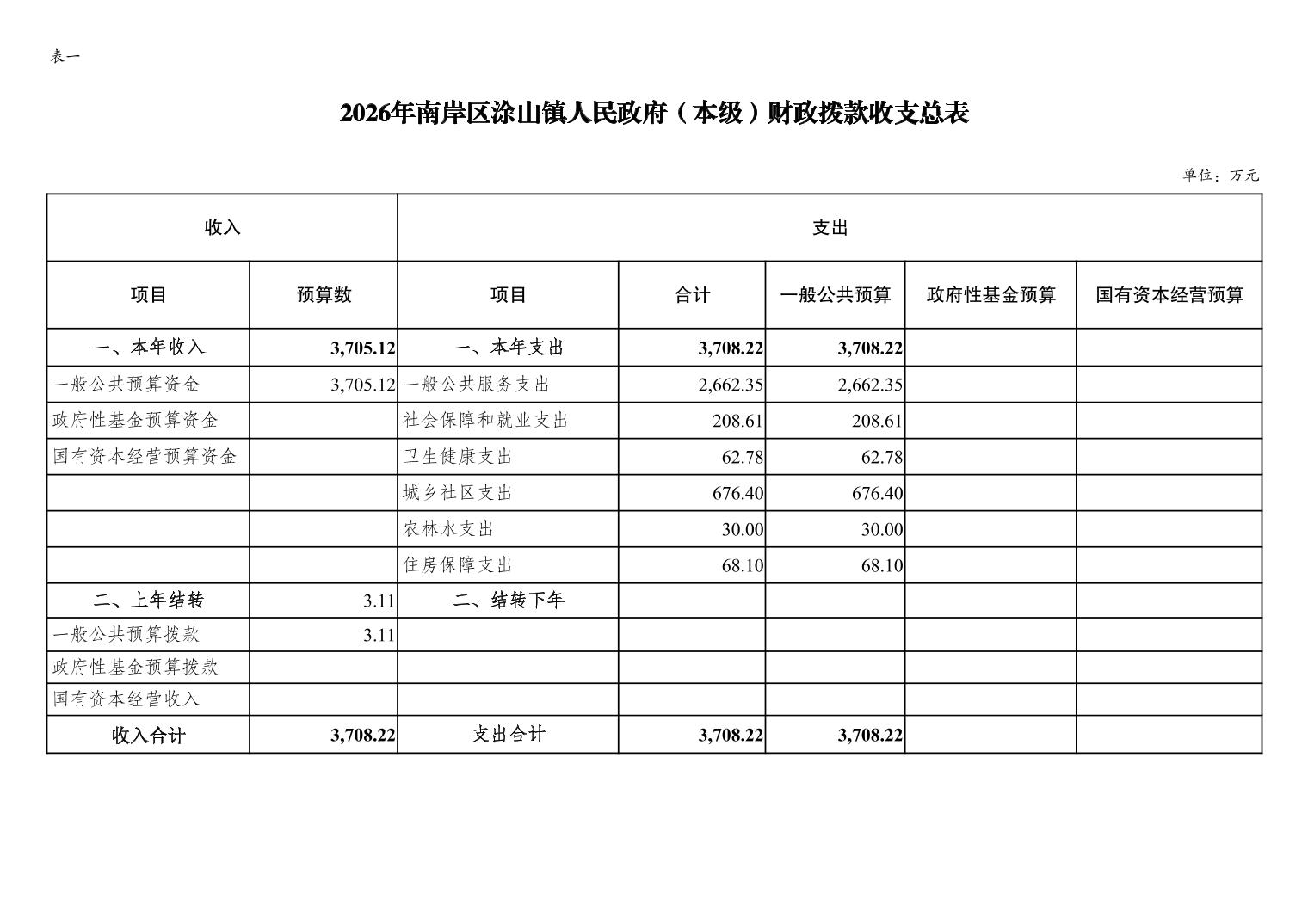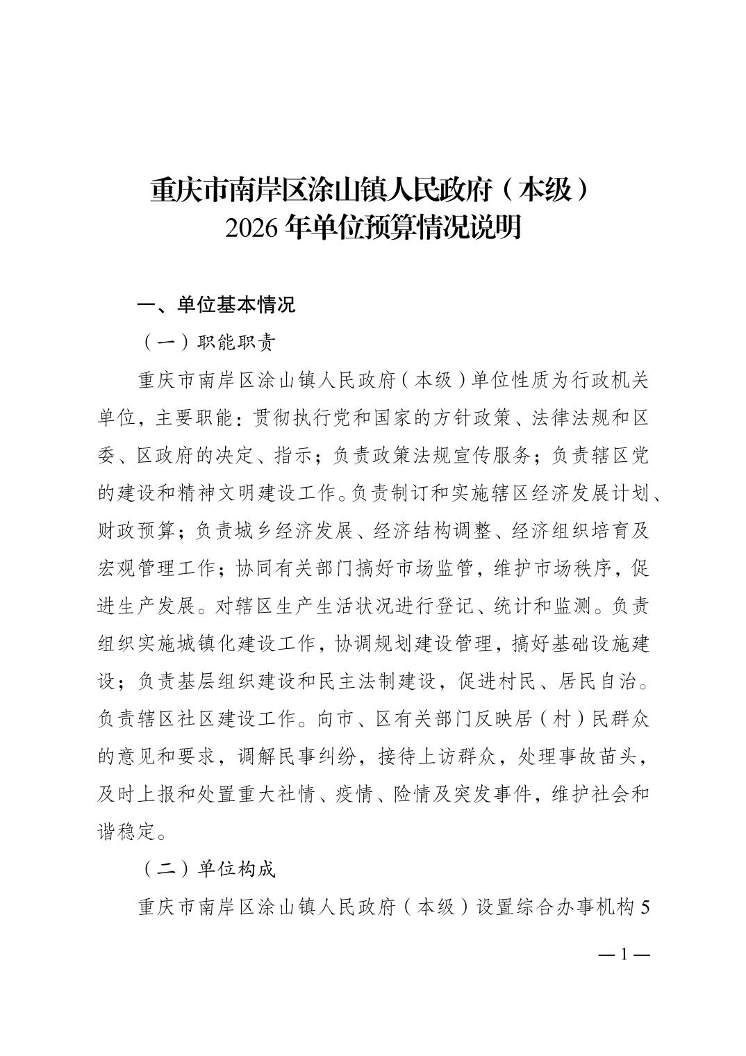 重庆市南岸区涂山镇人民政府(本级)2026年单位预算情况说明