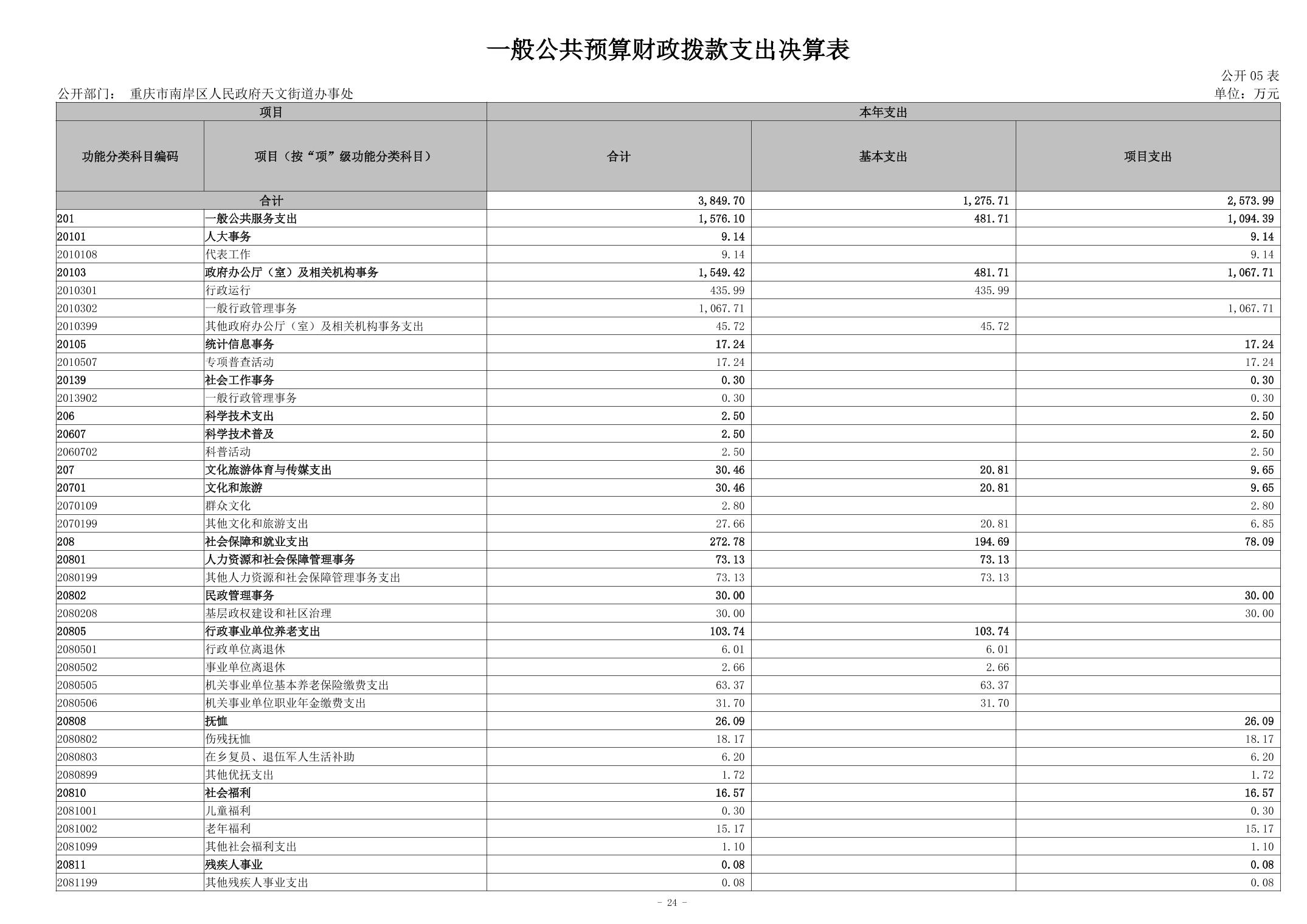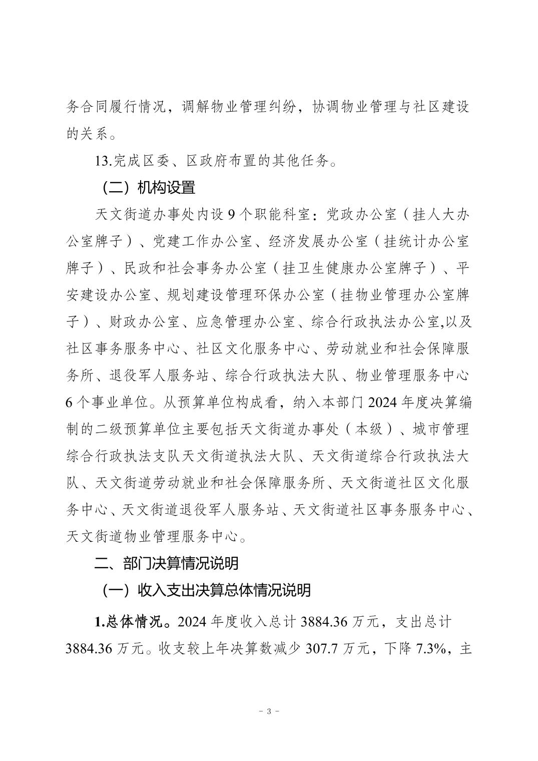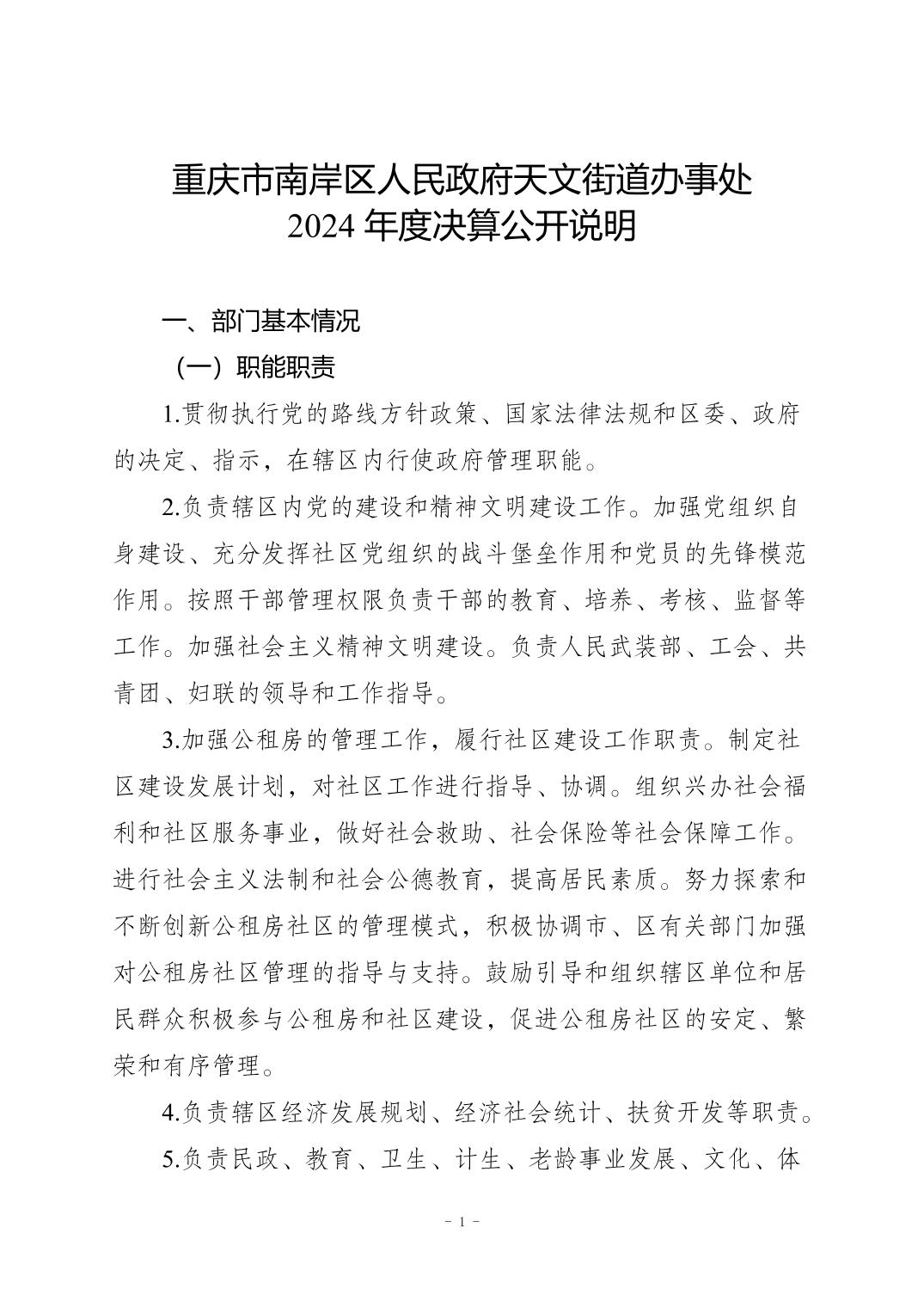 重庆市南岸区人民政府天文街道办事处2024年度决算公开说明