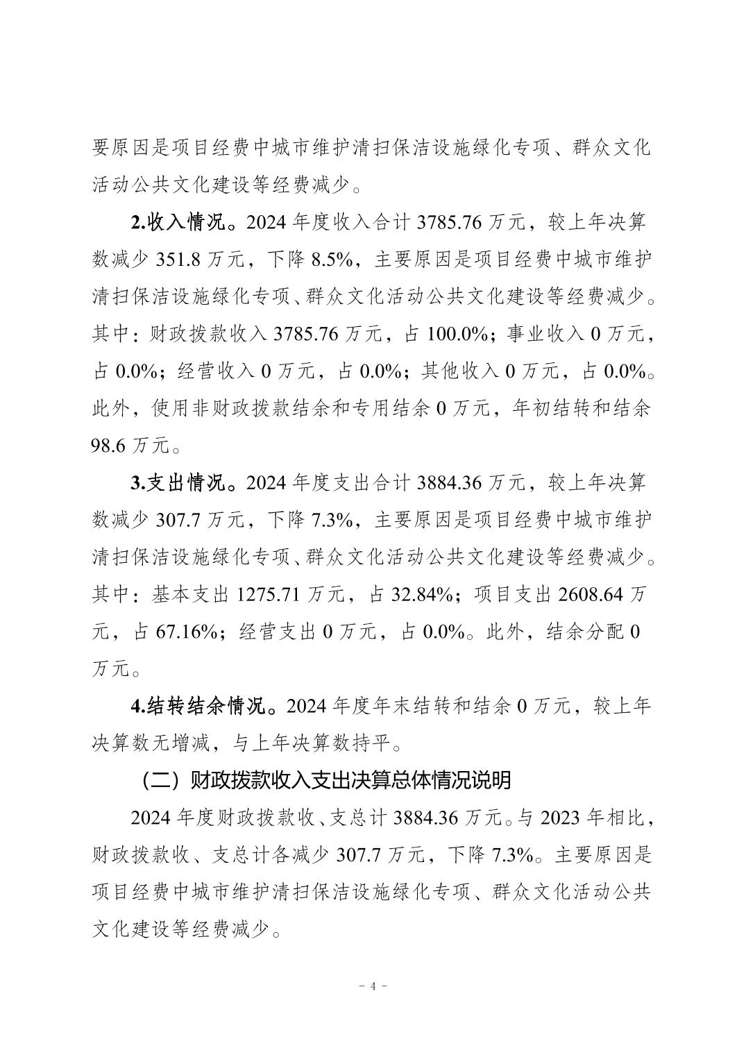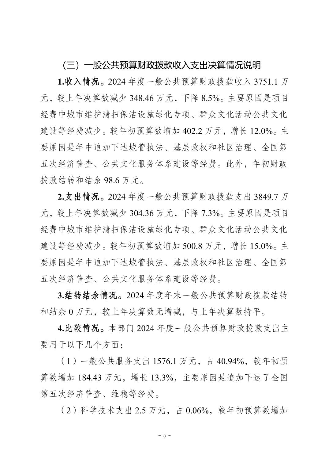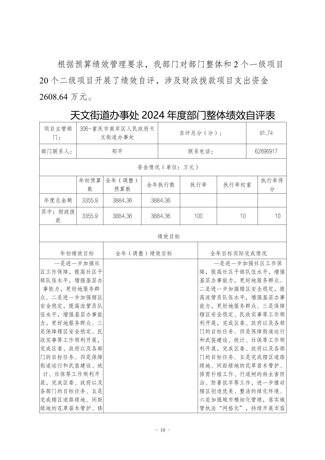 重庆市南岸区人民政府天文街道办事处2024年度决算公开说明