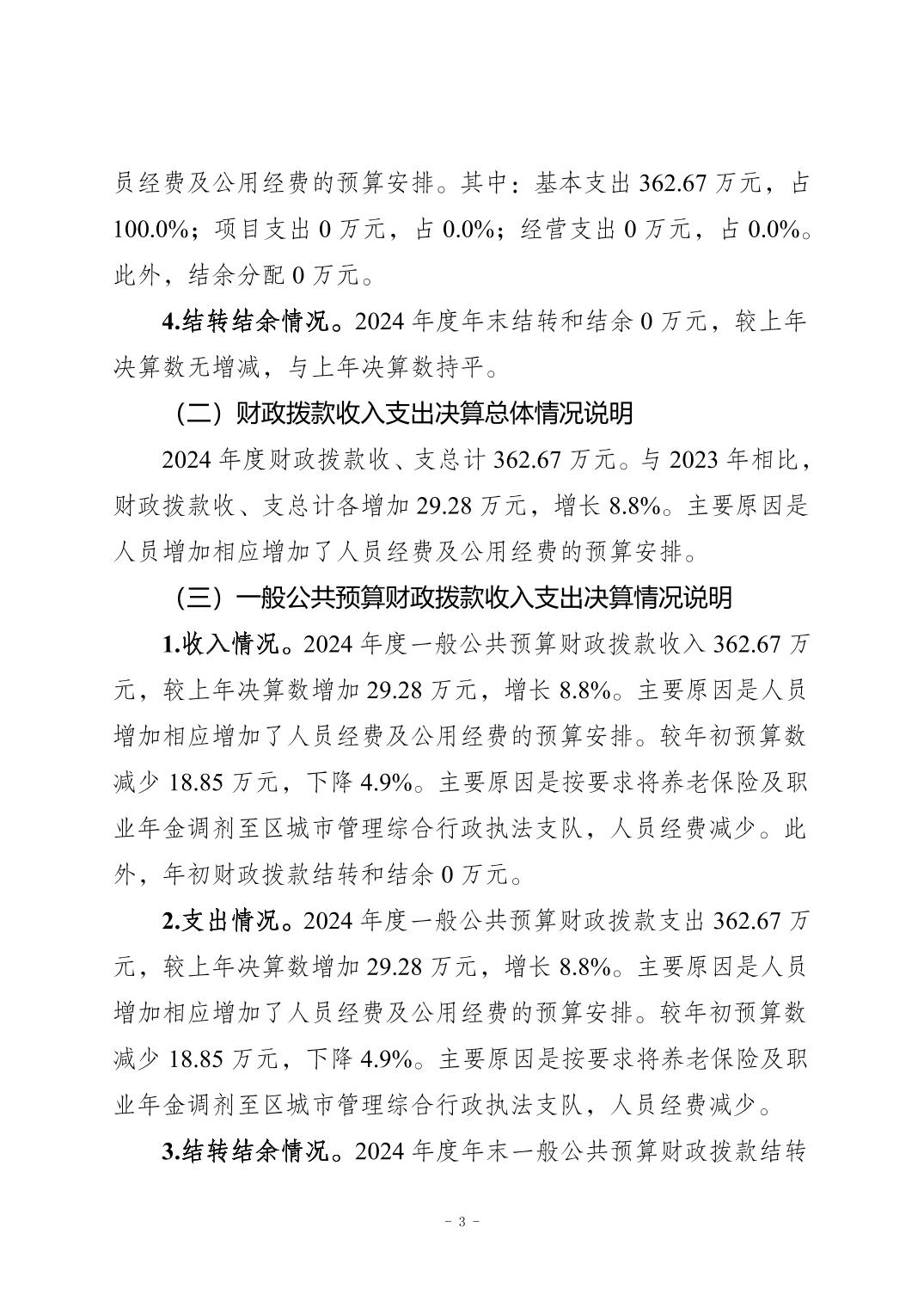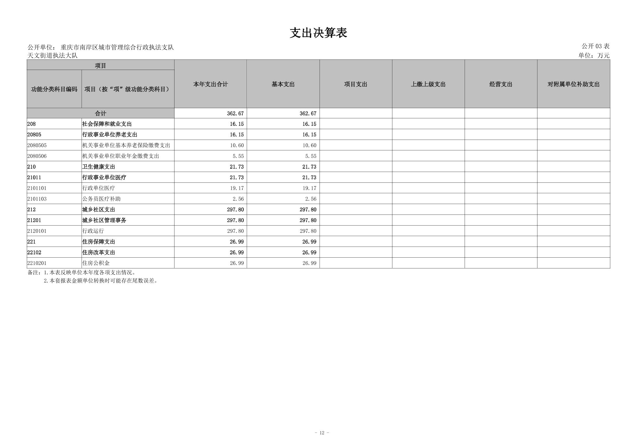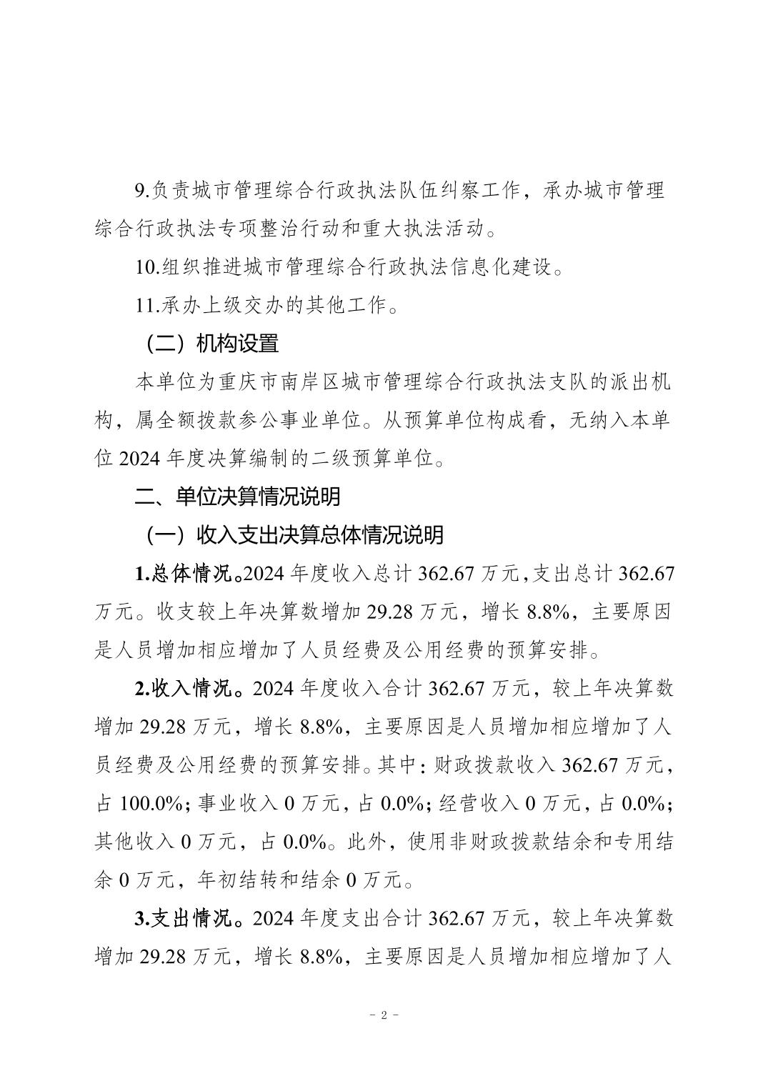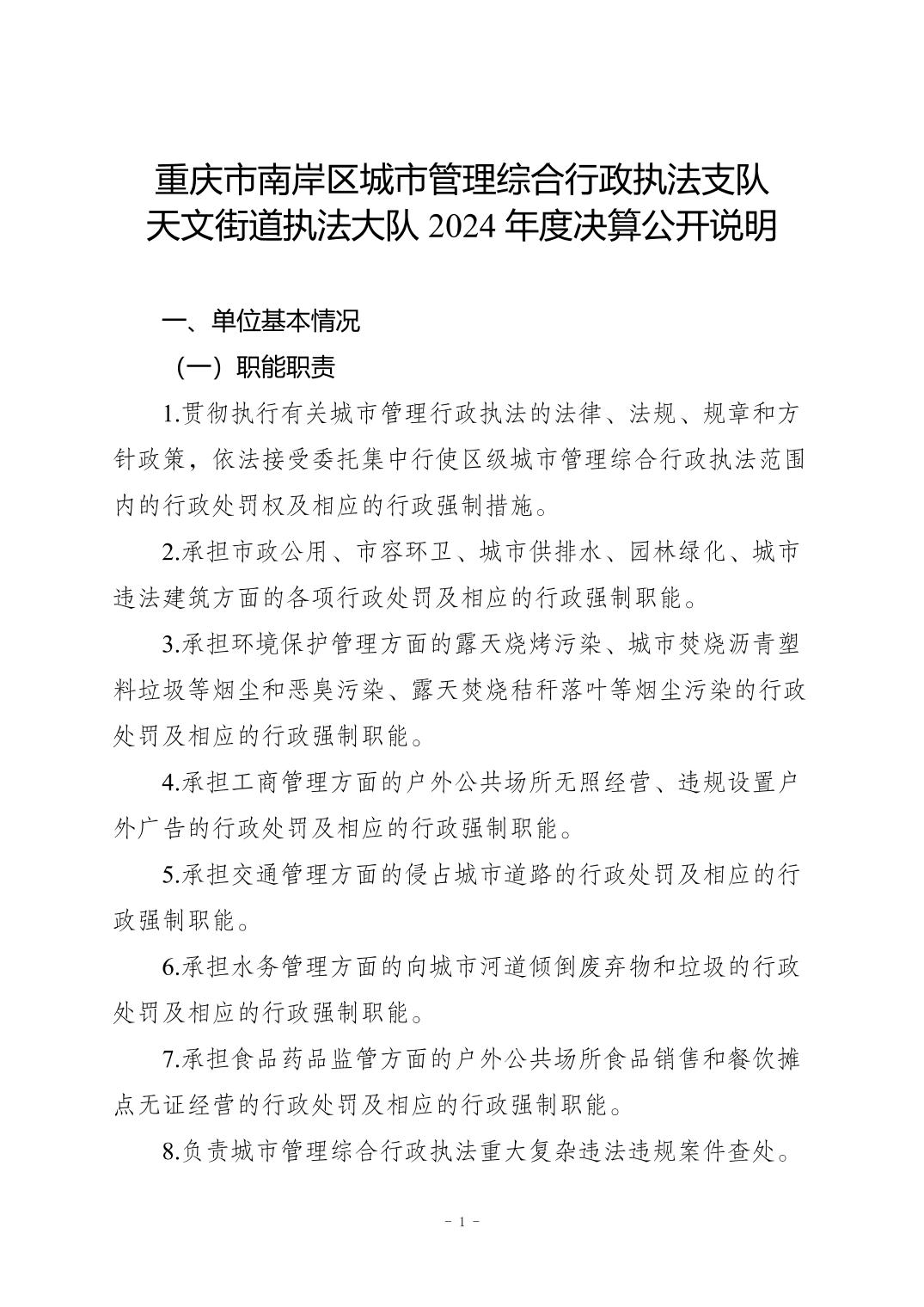 重庆市南岸区城市管理综合行政执法支队天文街道执法大队2024年度决算公开说明