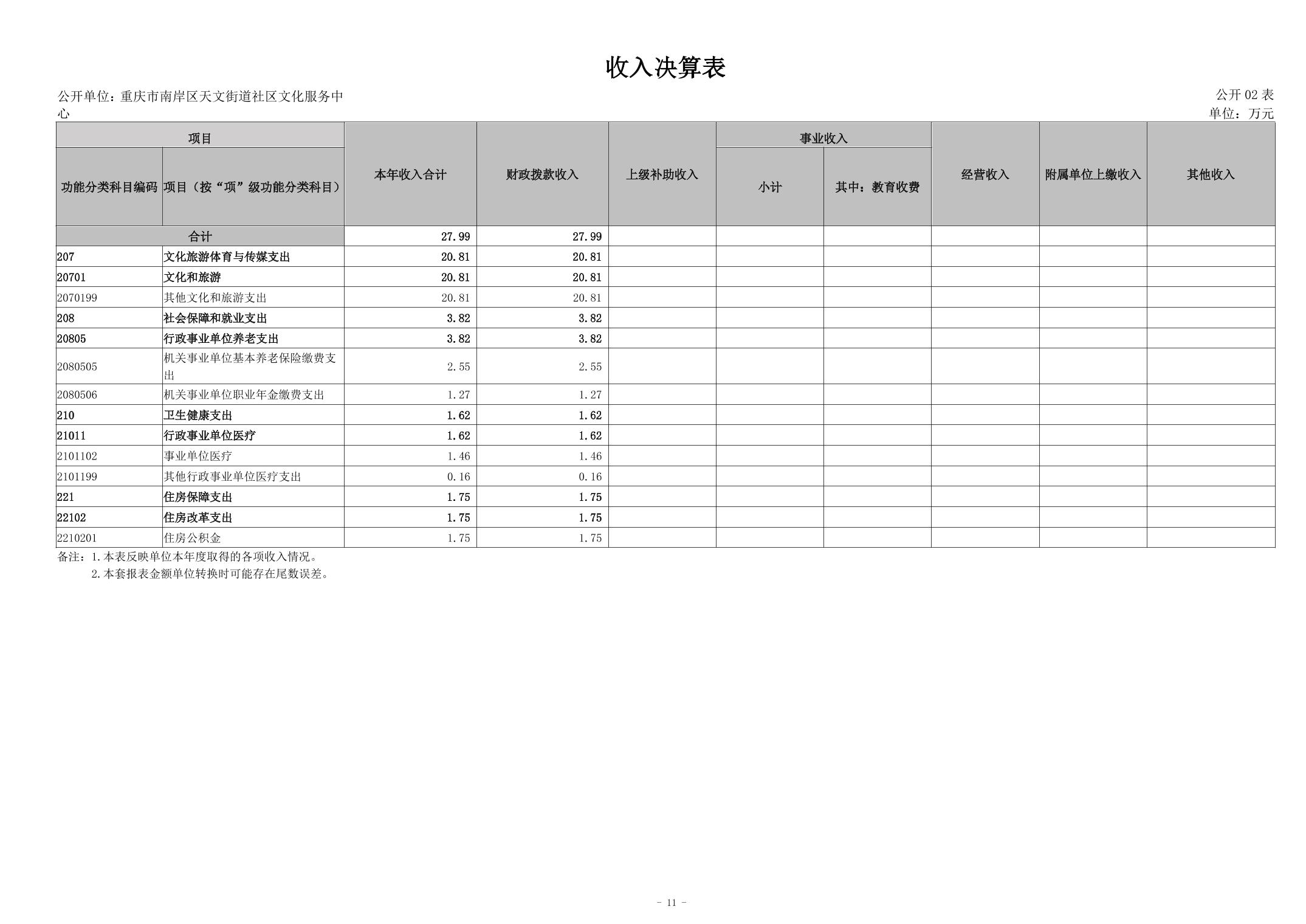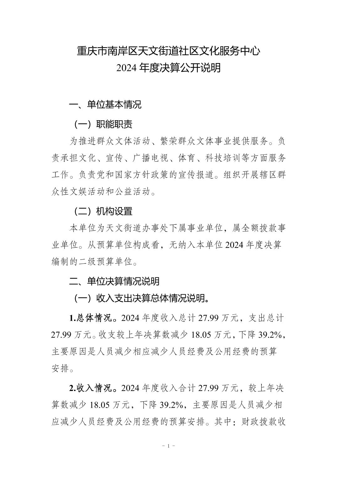 重庆市南岸区天文街道社区文化服务中心2024年度决算公开说明
