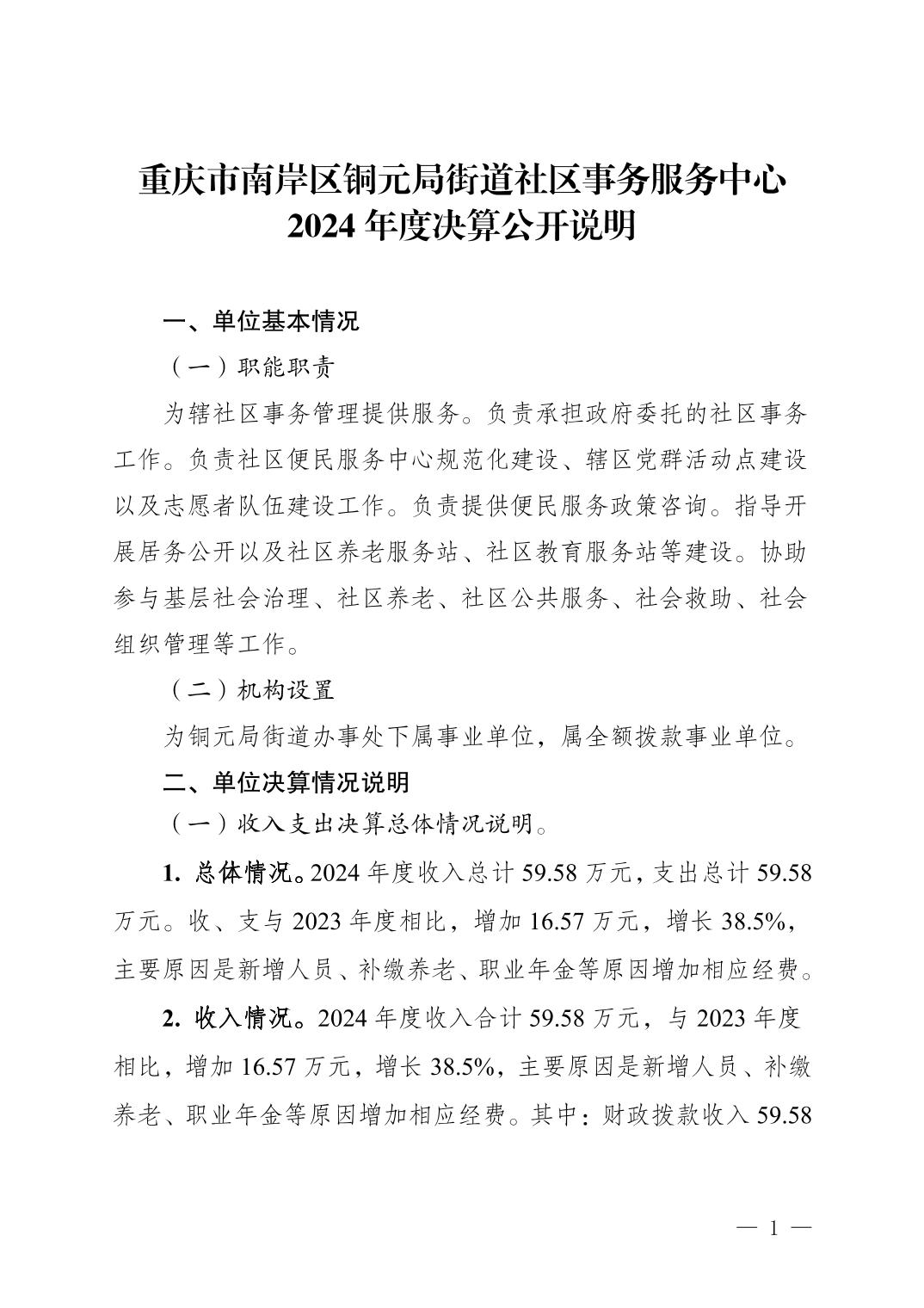 重庆市南岸区铜元局街道社区事务服务中心2024年度决算公开说明.pdf
