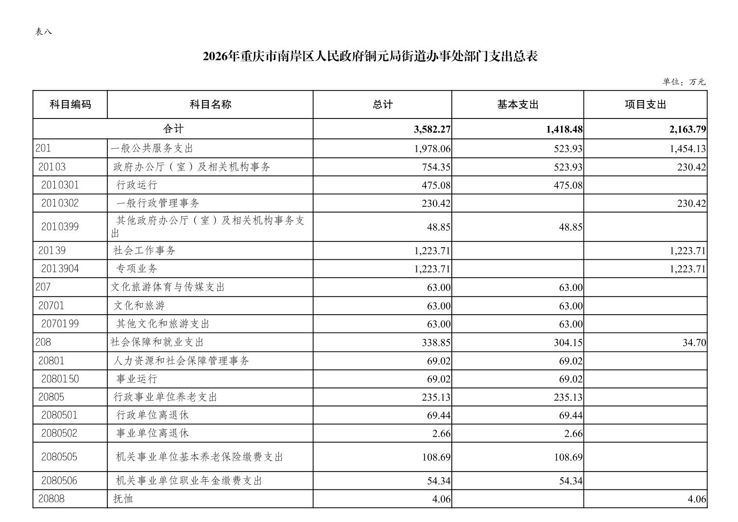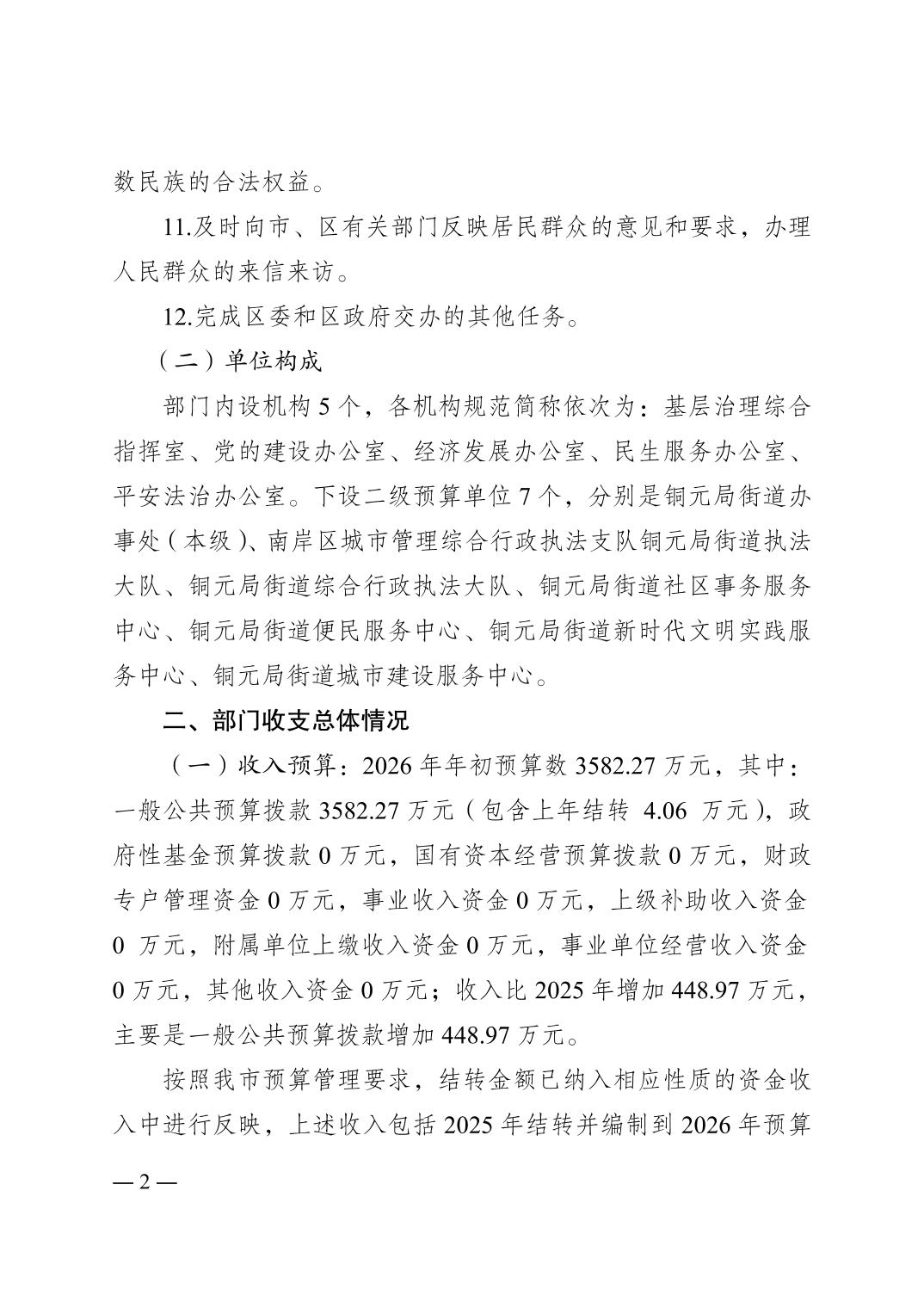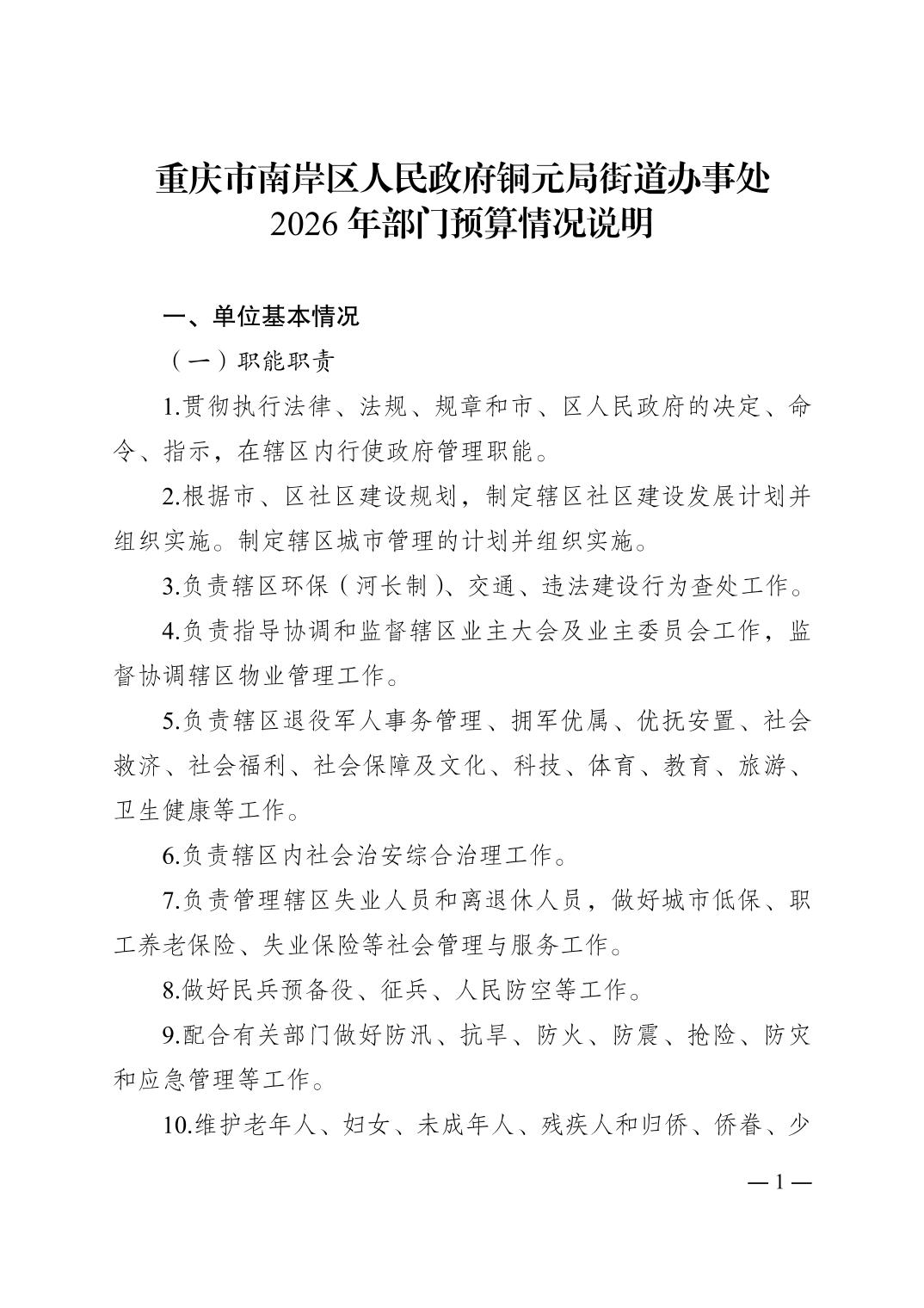 重庆市南岸区人民政府铜元局街道办事处2026年部门预算情况说明