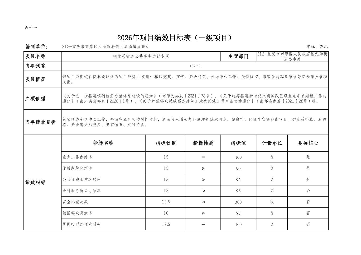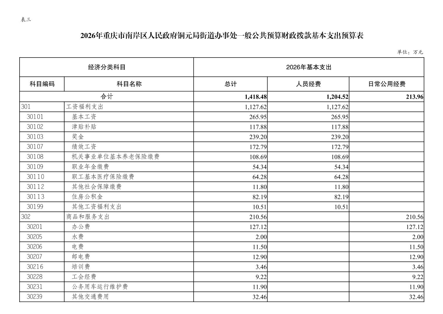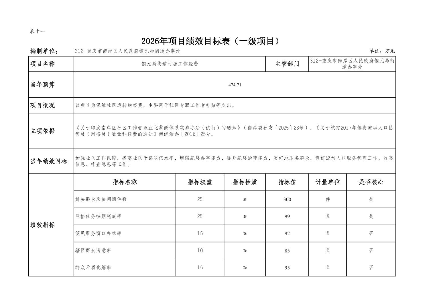 重庆市南岸区人民政府铜元局街道办事处2026年部门预算情况说明