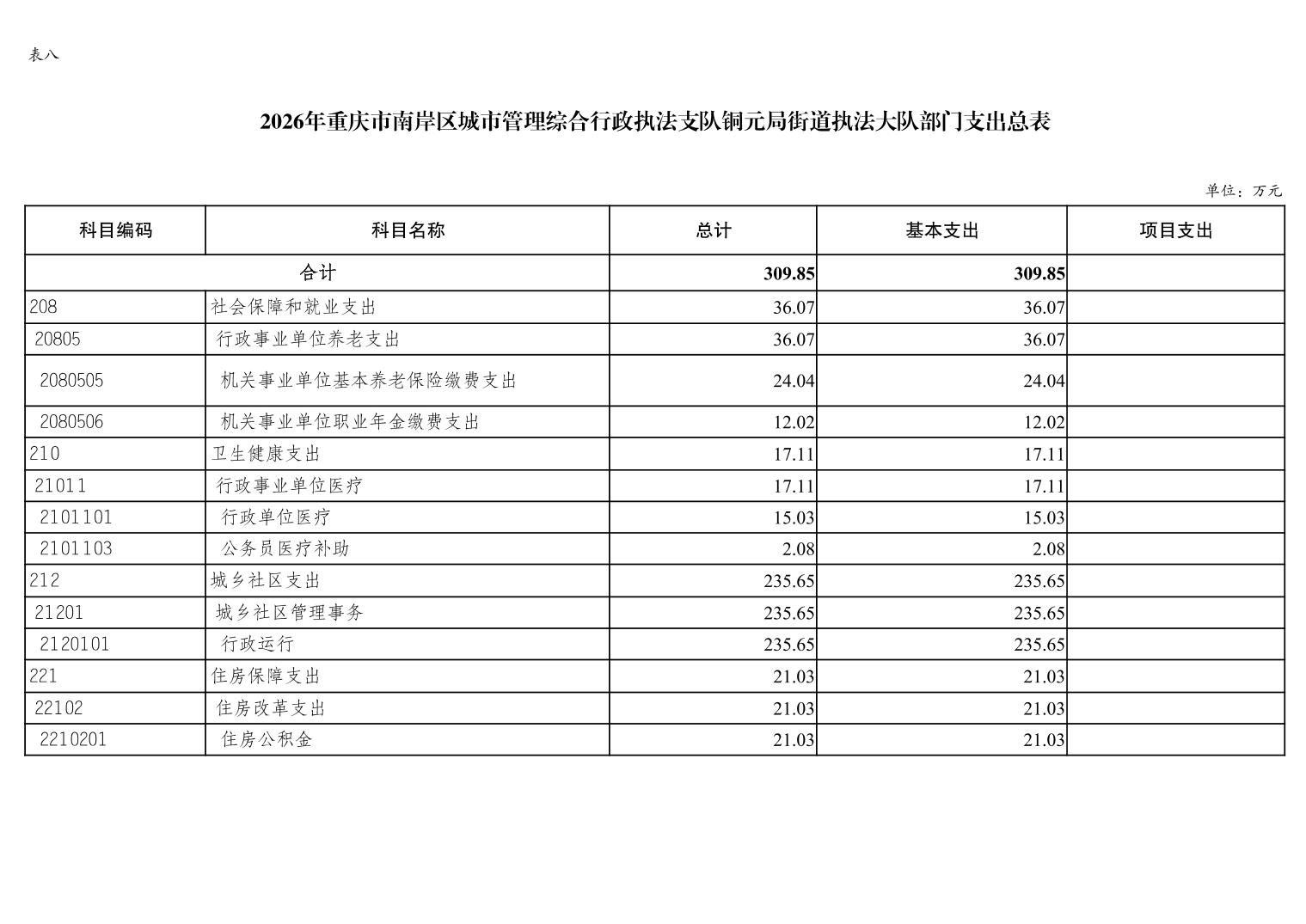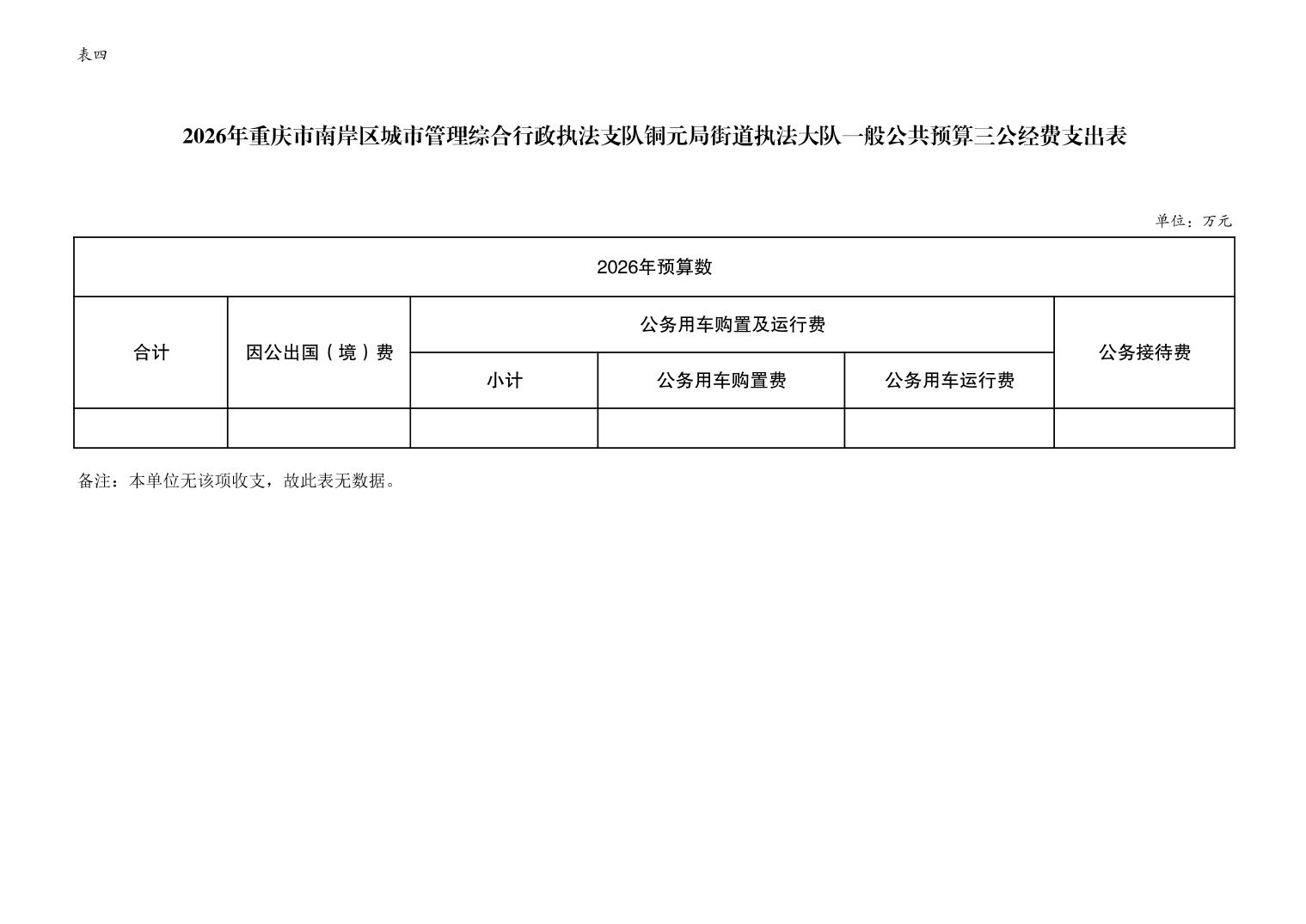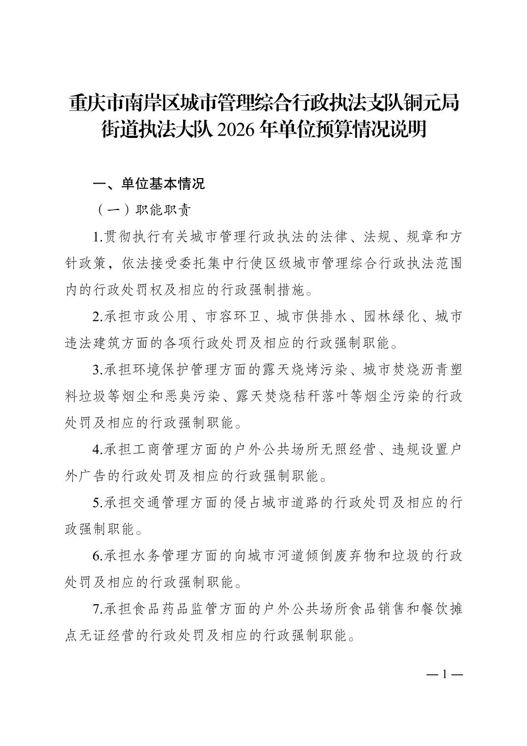 重庆市南岸区城市管理综合行政执法支队铜元局街道执法大队2026年单位预算情况说明